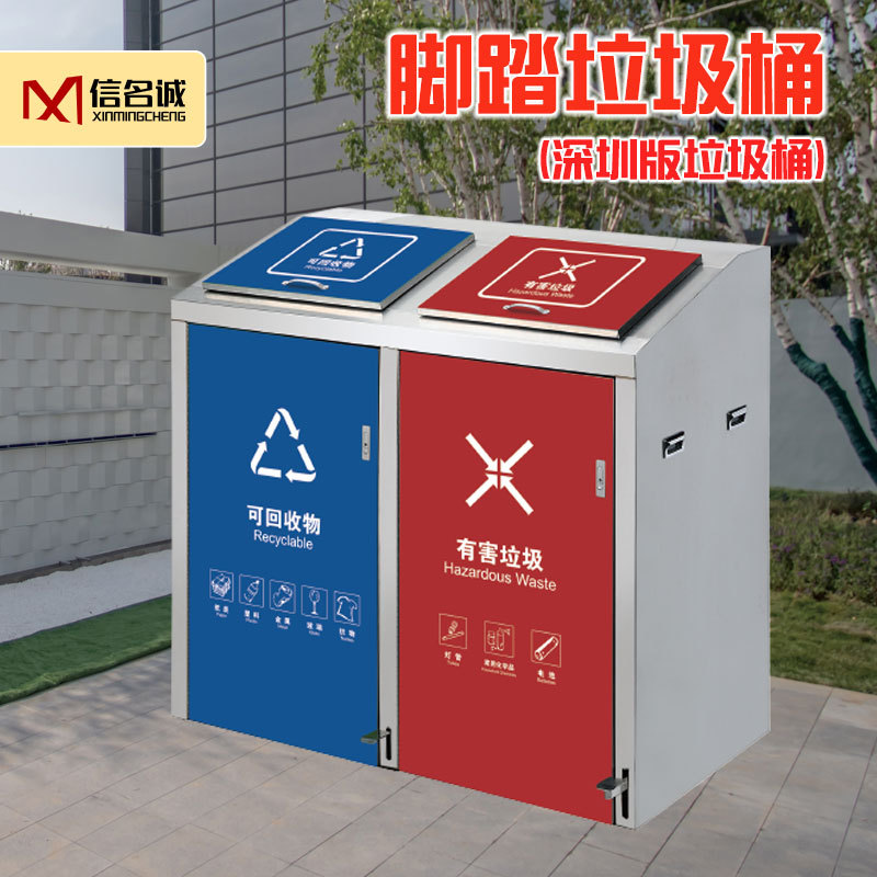 厂家直销北京大容量脚踏式不锈钢分类环保垃圾桶商用干湿分离双桶