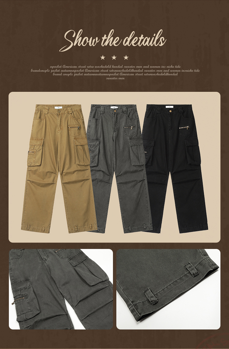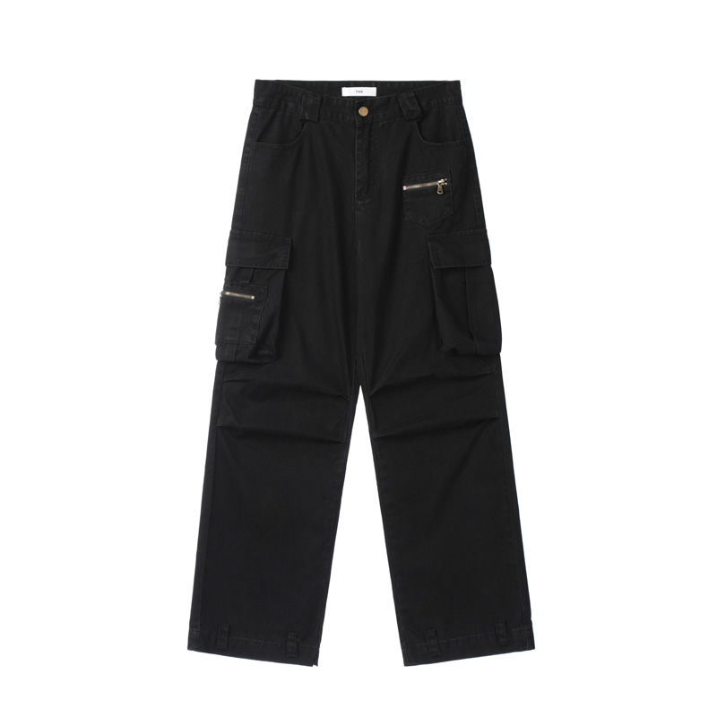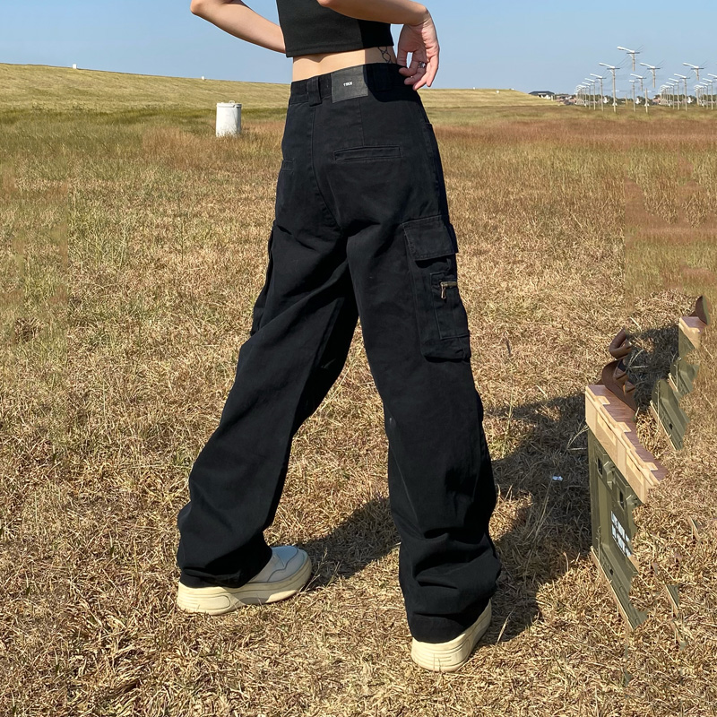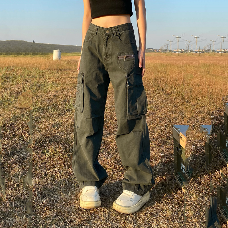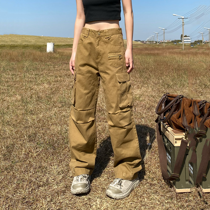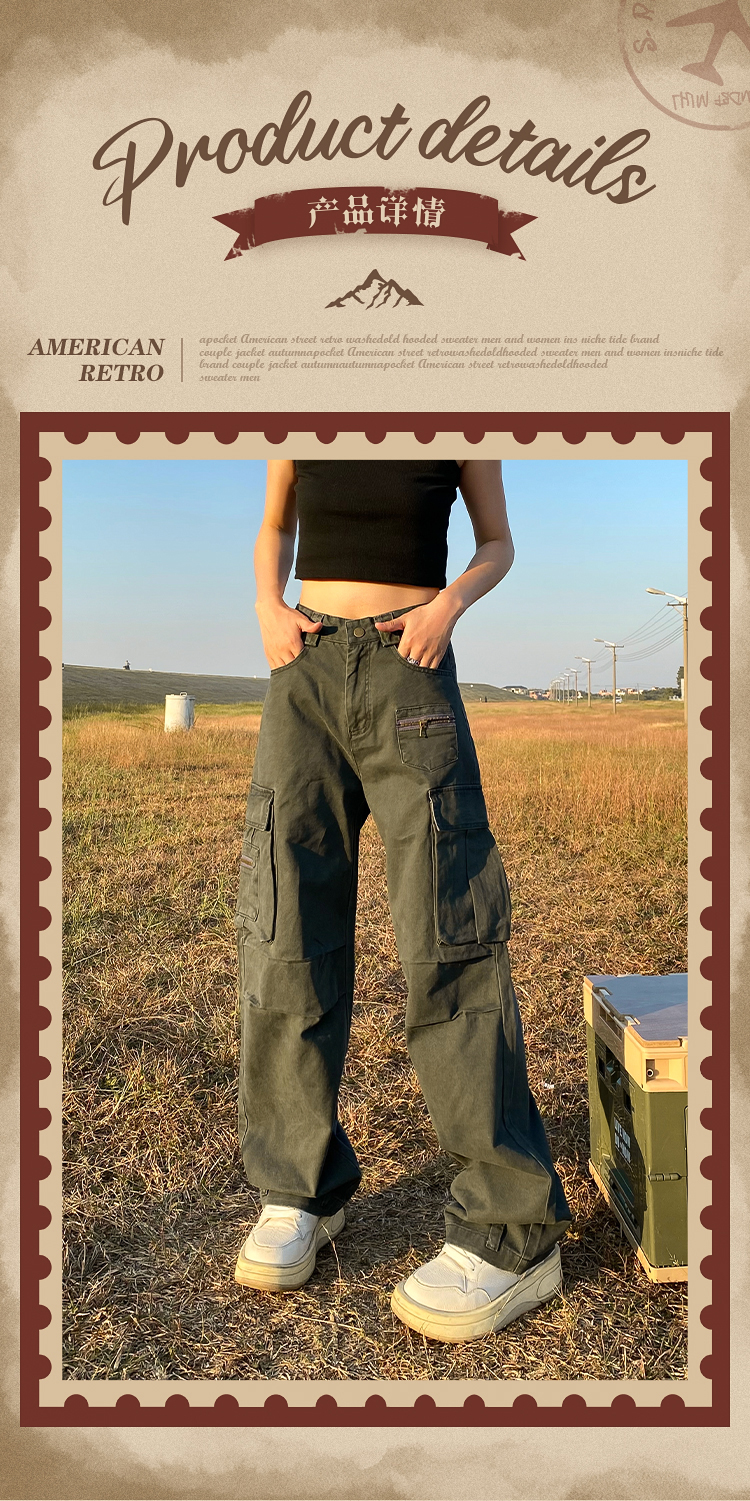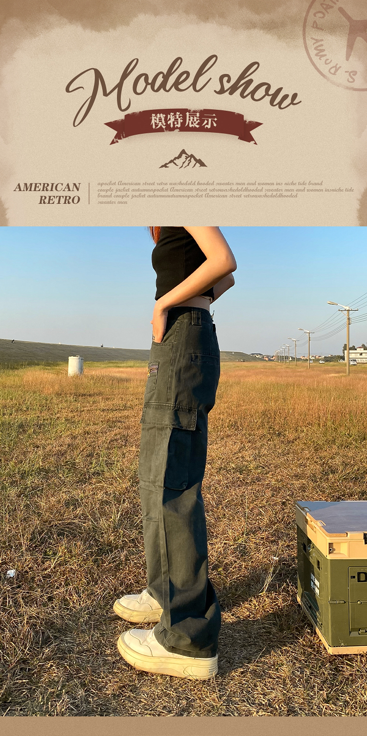 apocket美式復古直筒vibe工裝褲女歐美高街設計感寬鬆多口袋褲子