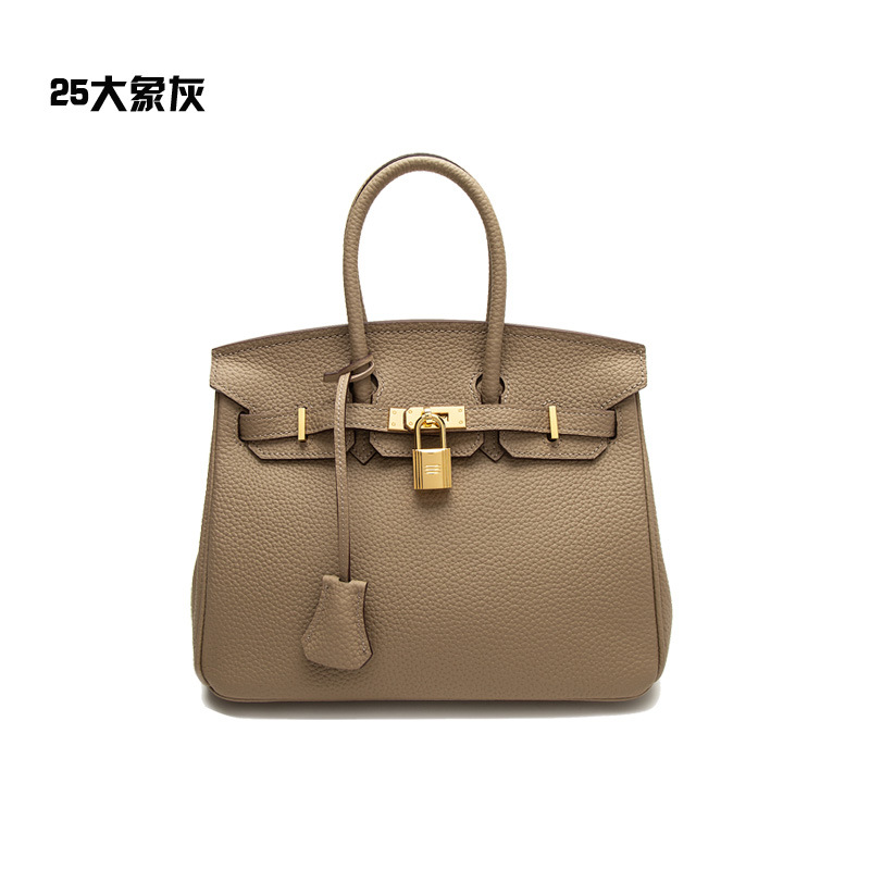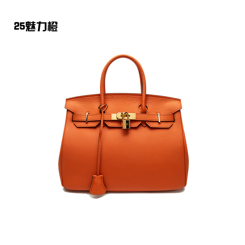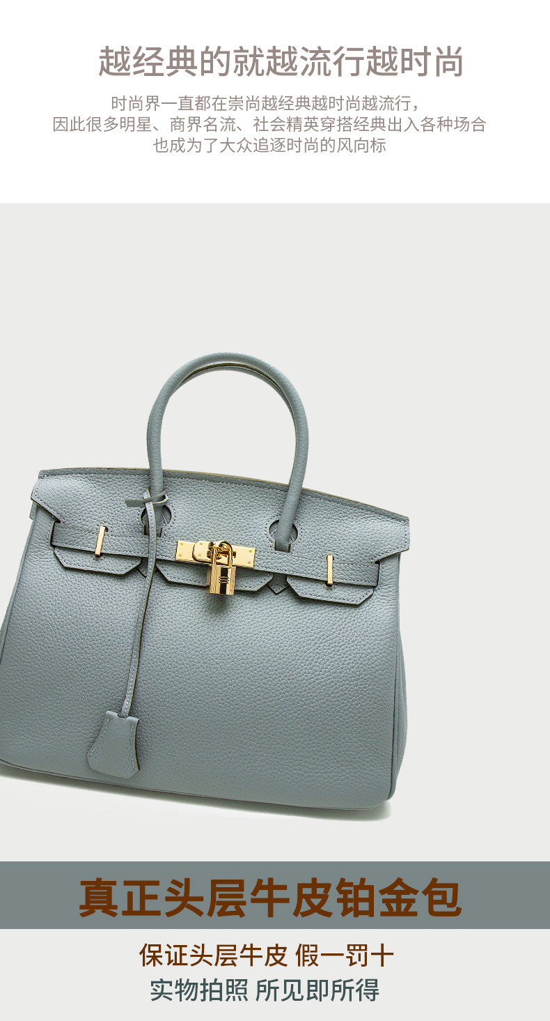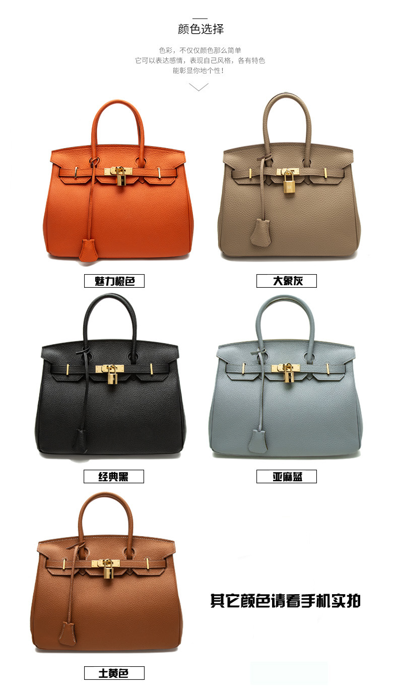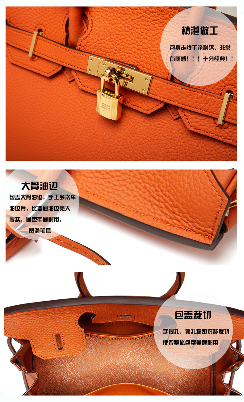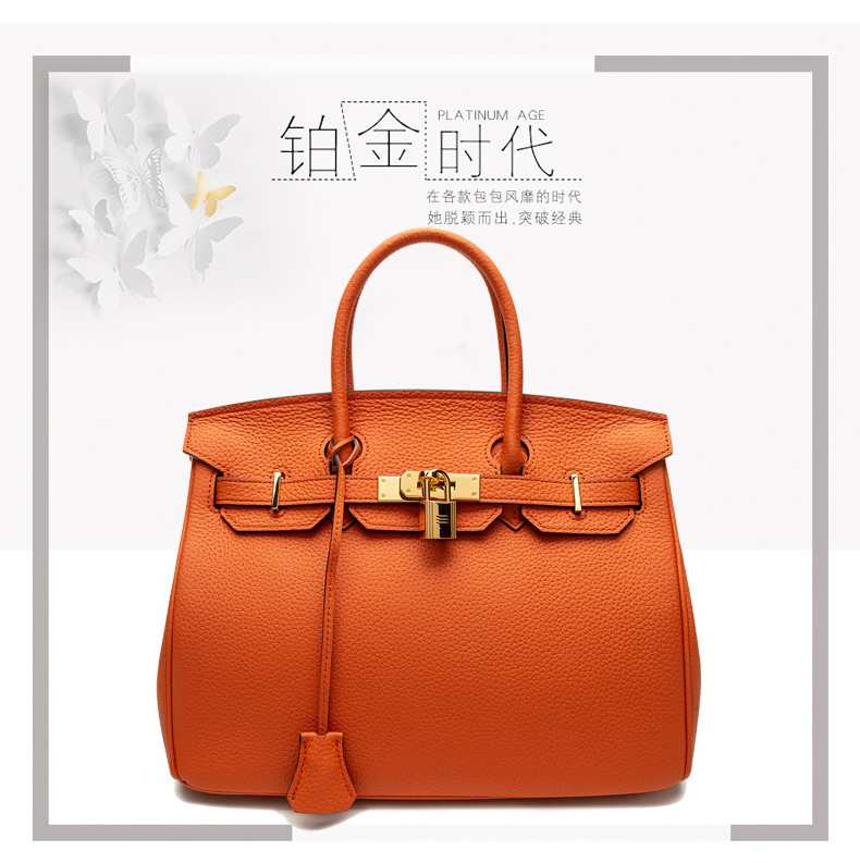 2024欧美新款真皮女包头层牛皮时尚荔枝纹铂金包女士手提包单肩包