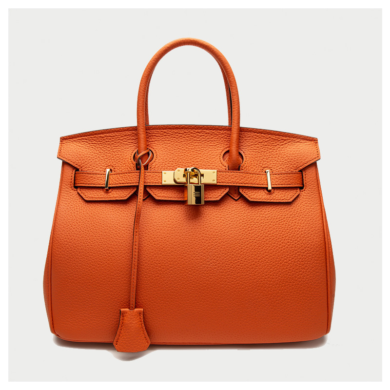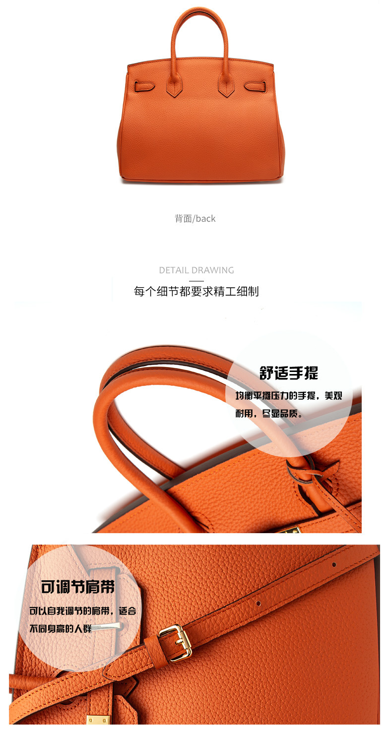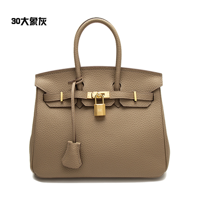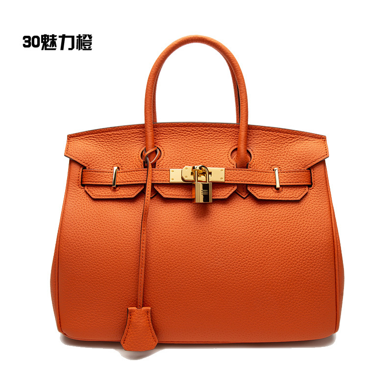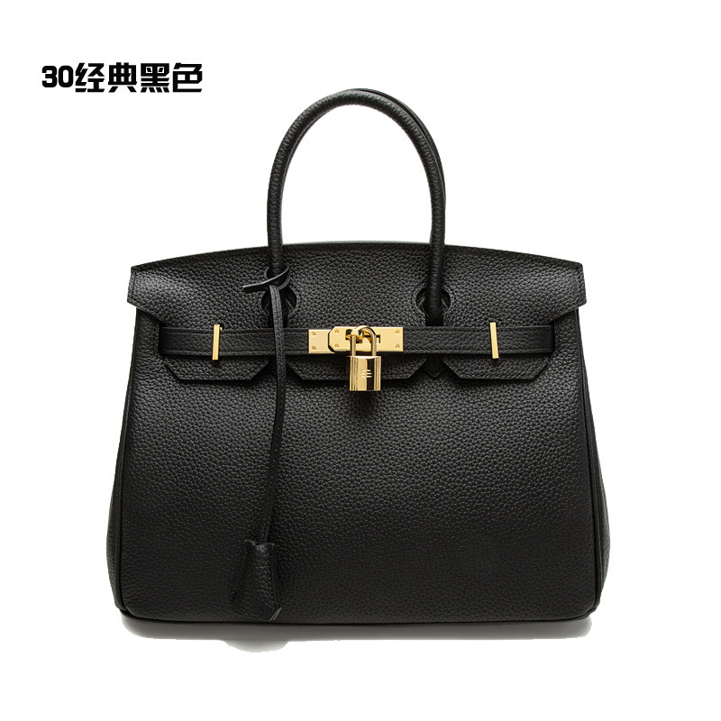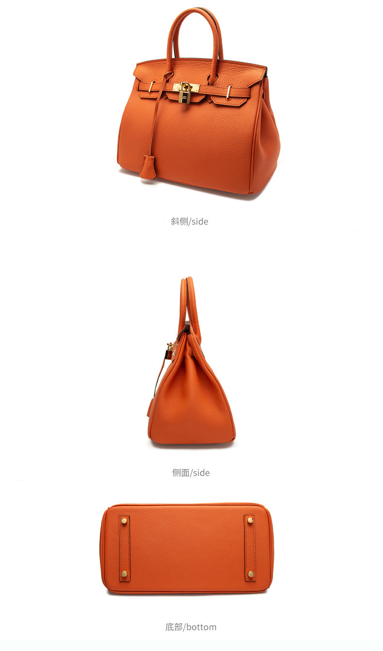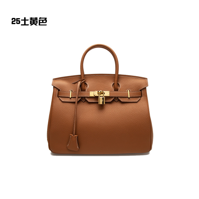 2024欧美新款真皮女包头层牛皮时尚荔枝纹铂金包女士手提包单肩包