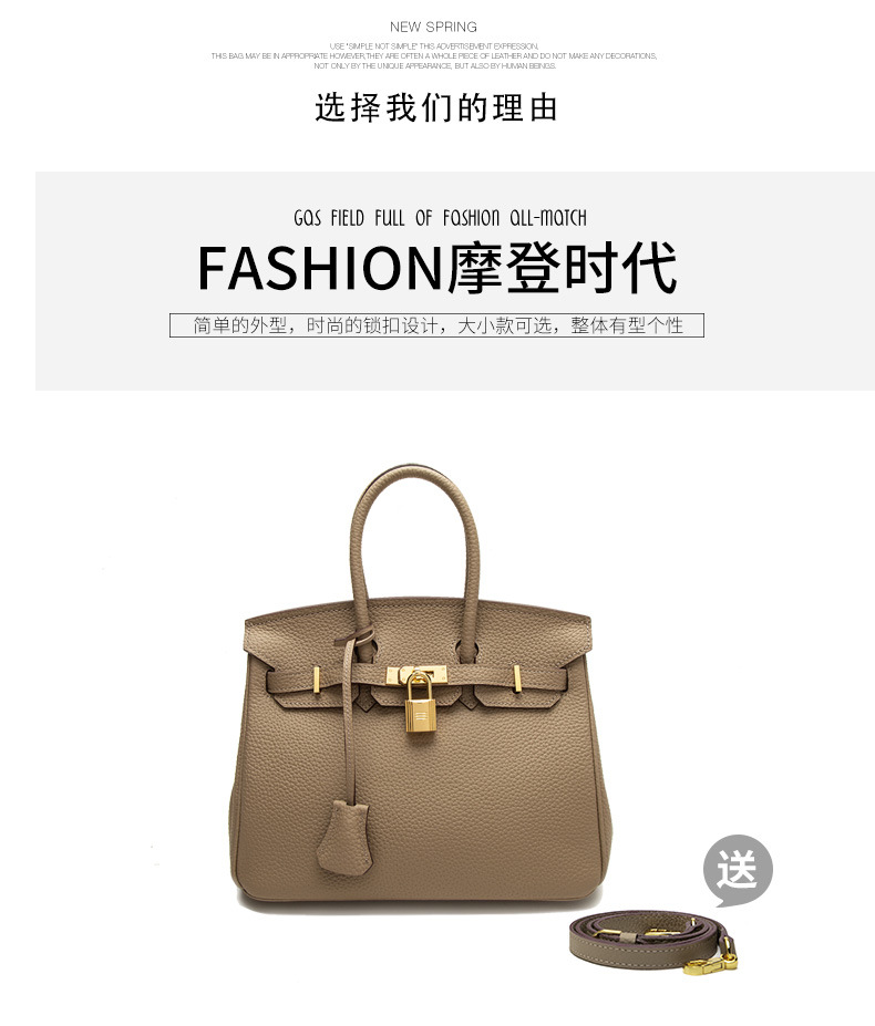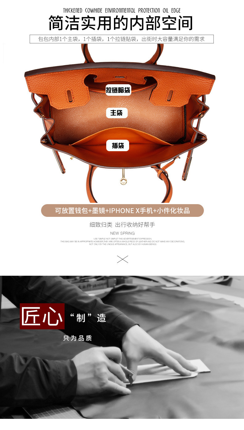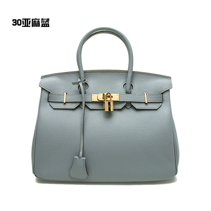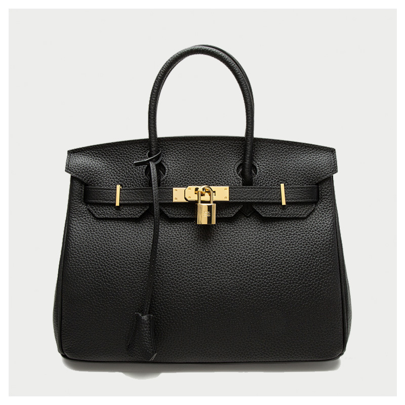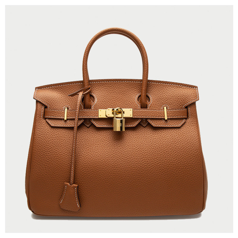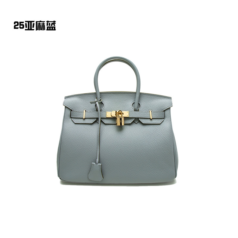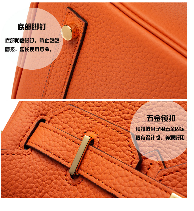 2024欧美新款真皮女包头层牛皮时尚荔枝纹铂金包女士手提包单肩包