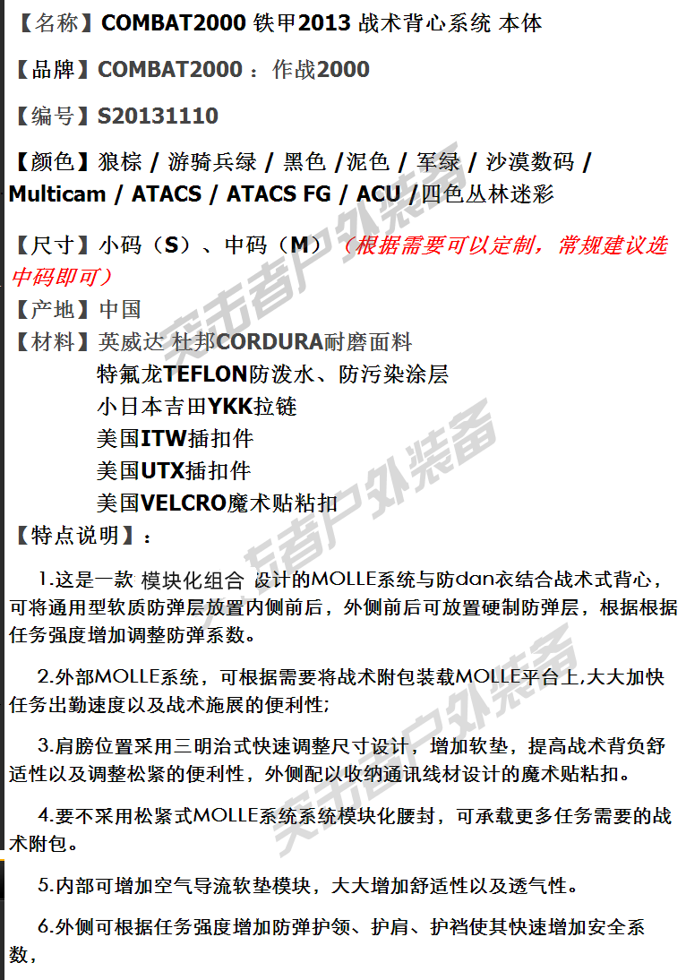 【突擊者戶外】COMBAT2000鐵甲2013戰術背心可加護頸護肩護襠全防