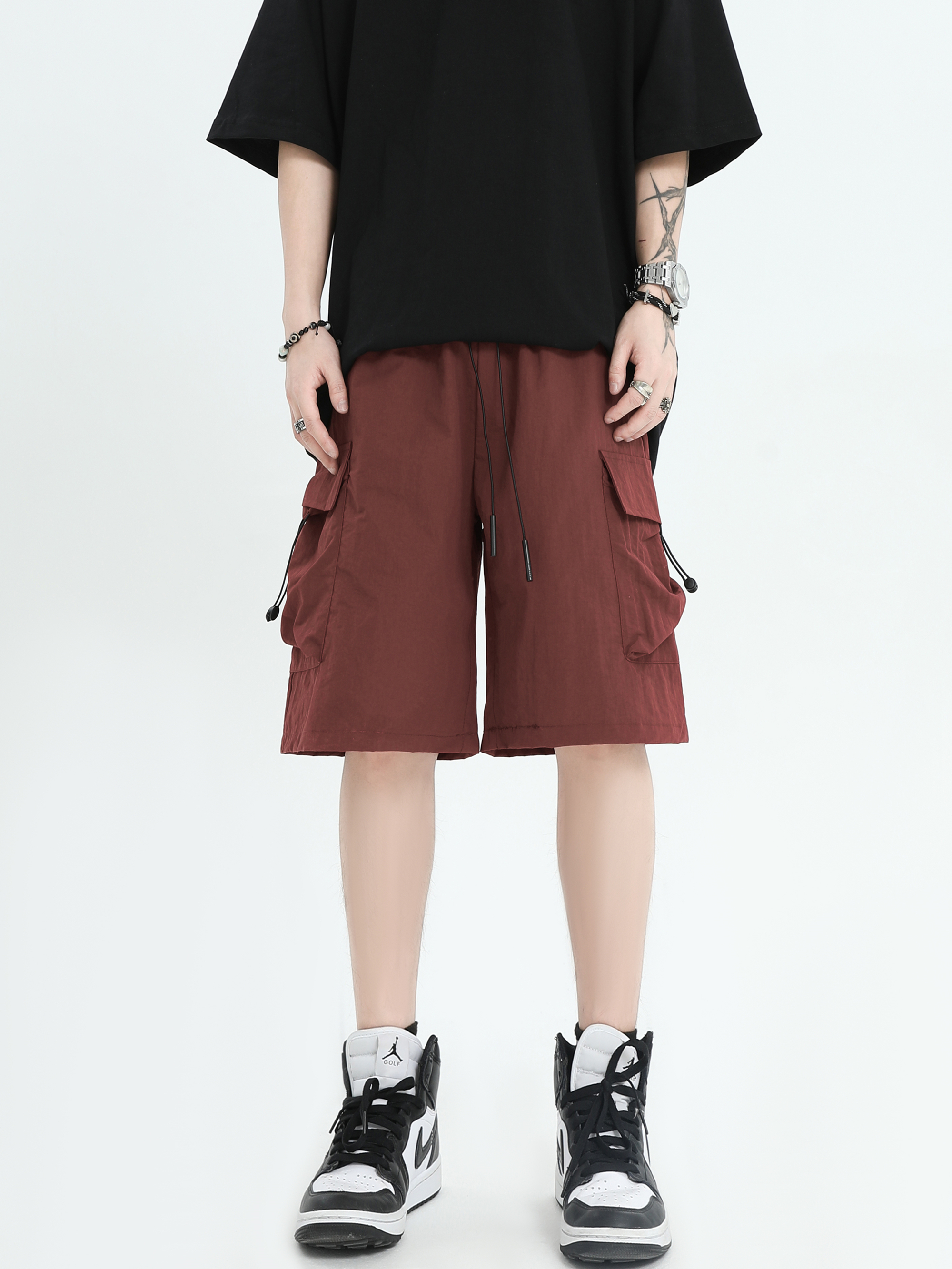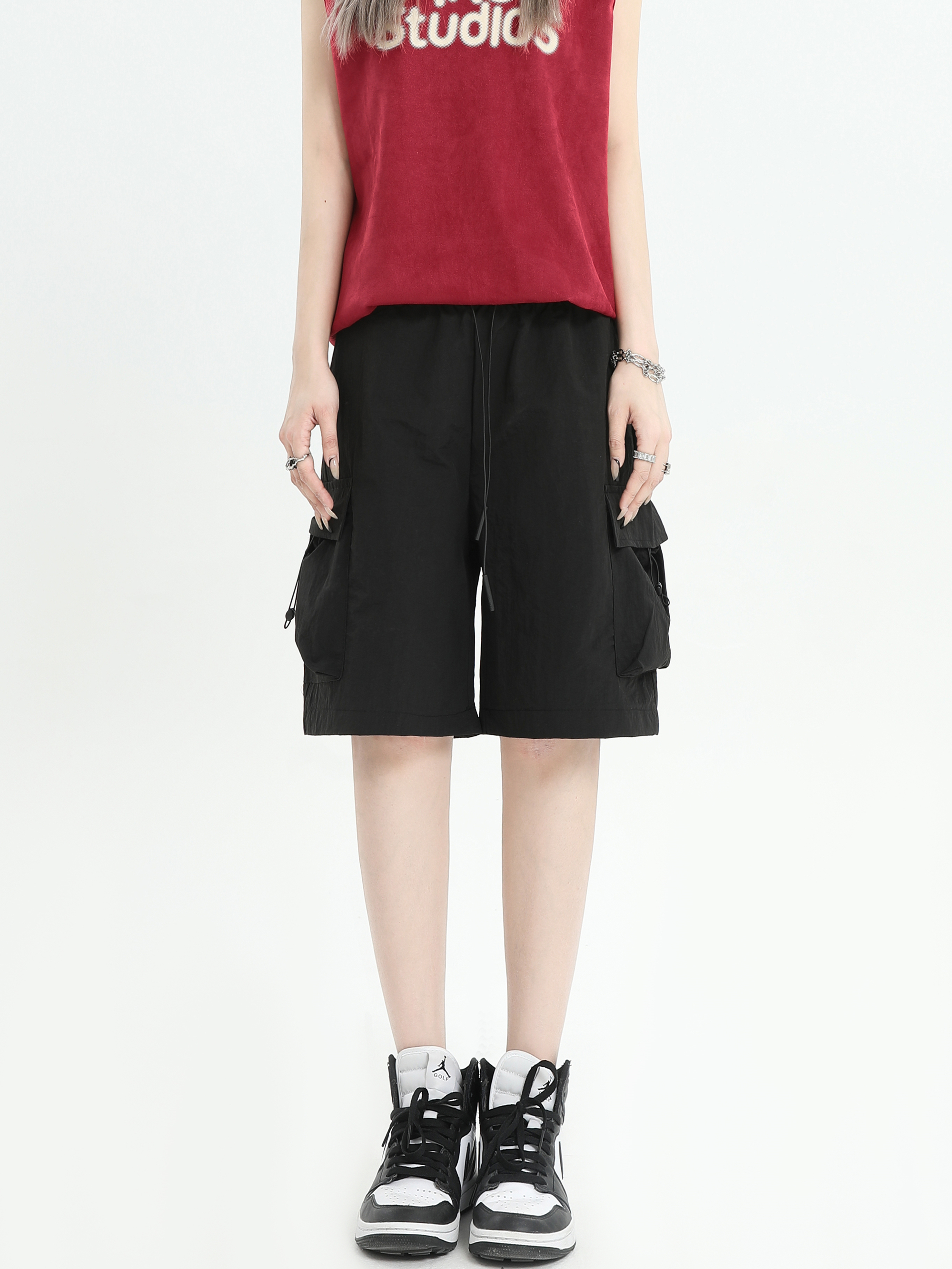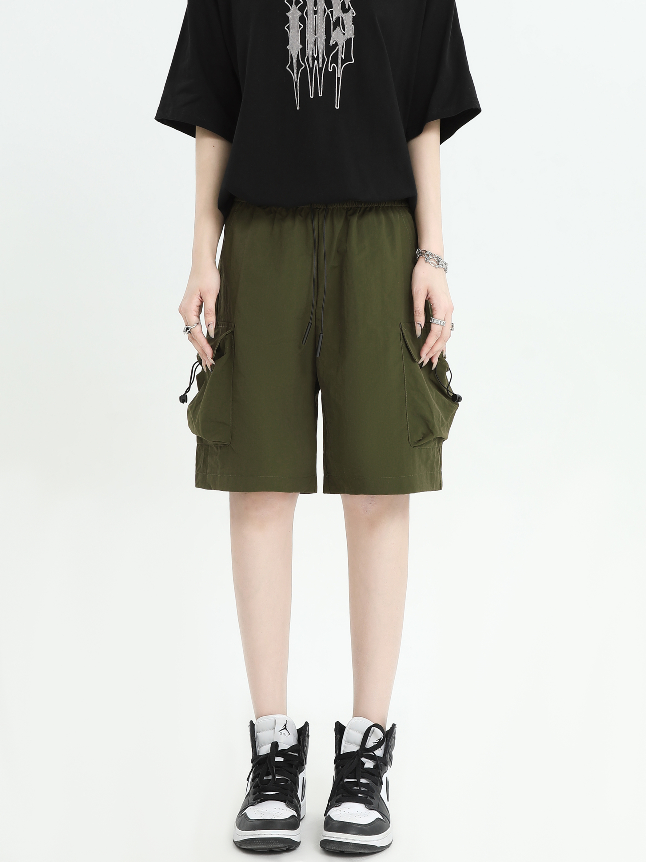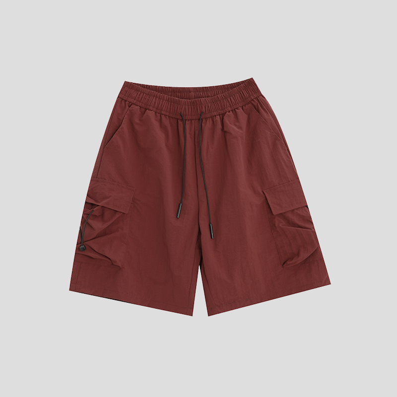 INSstudios 國潮牌情侶美式抽繩褶皺工裝短褲寬鬆直筒休閒五分褲
