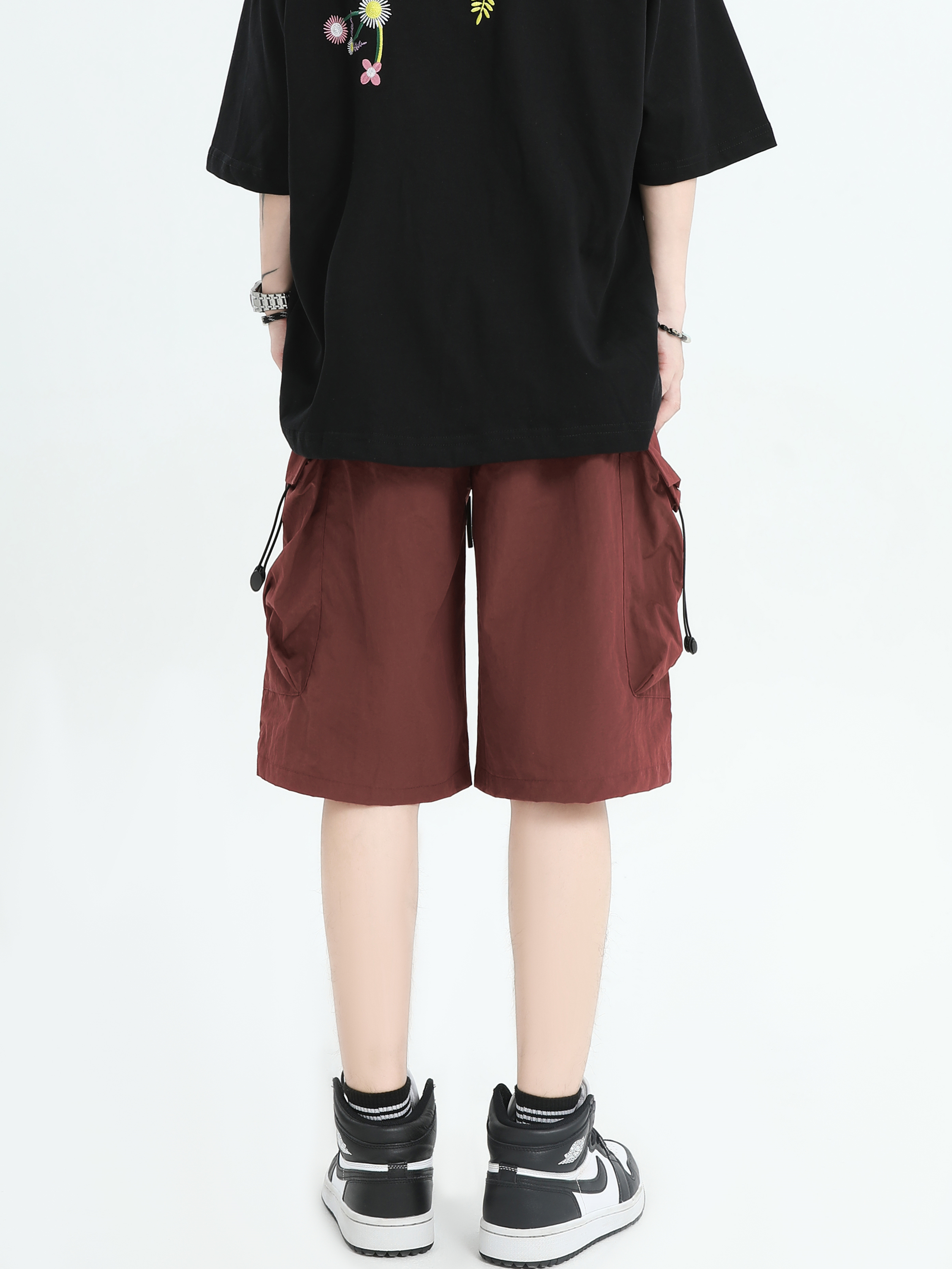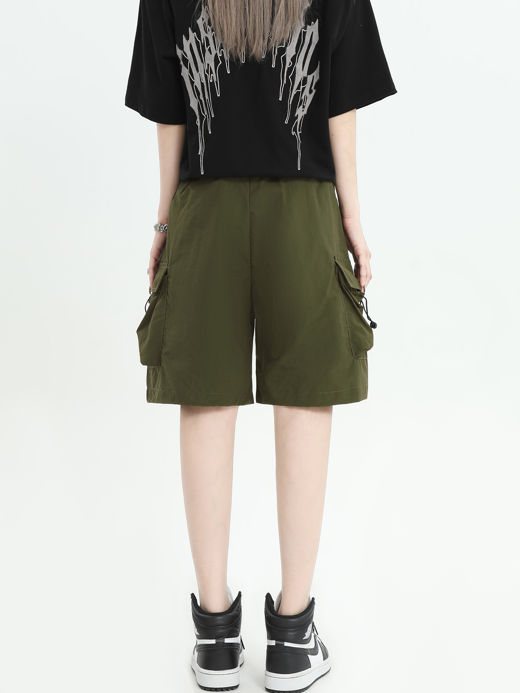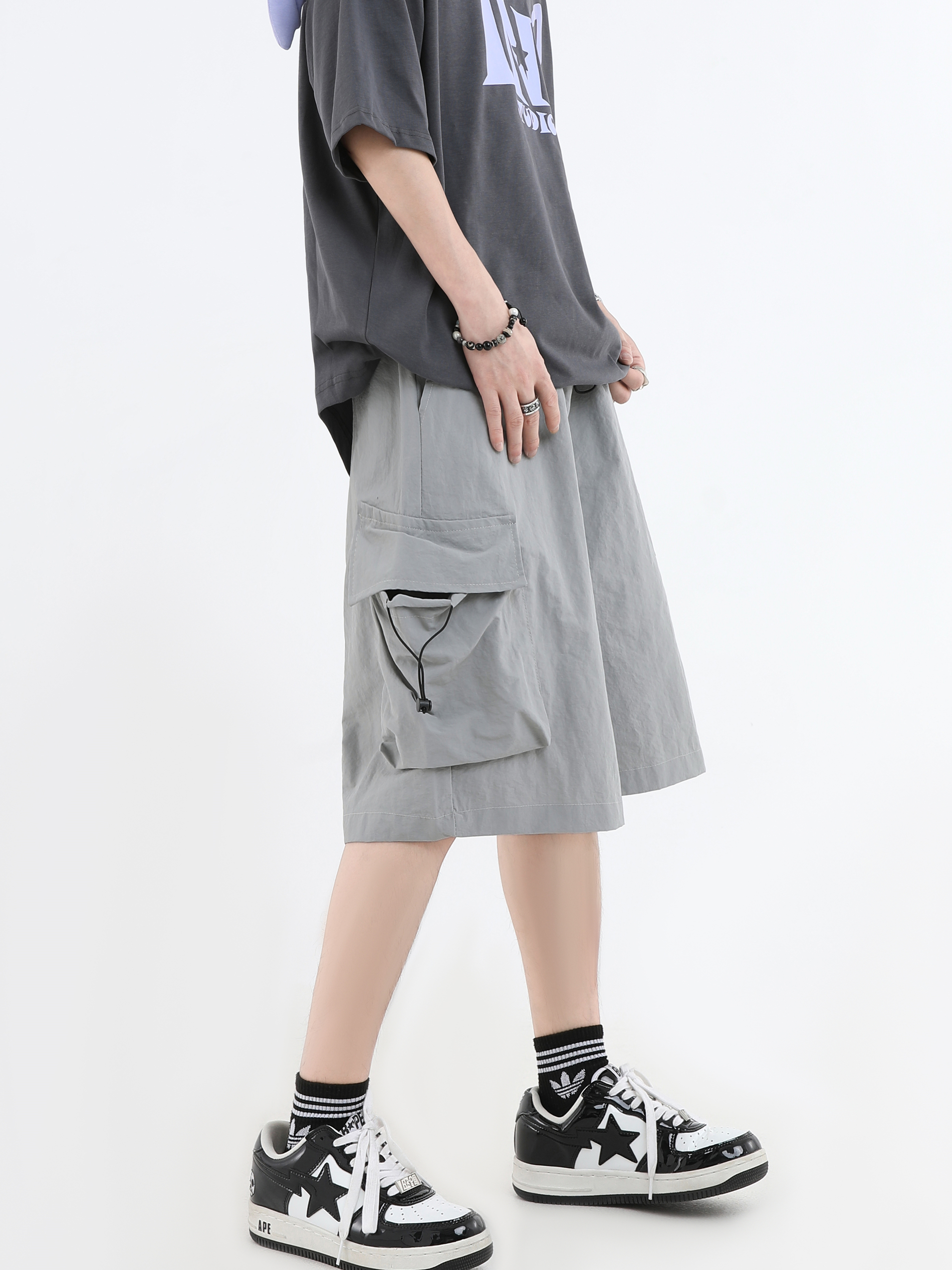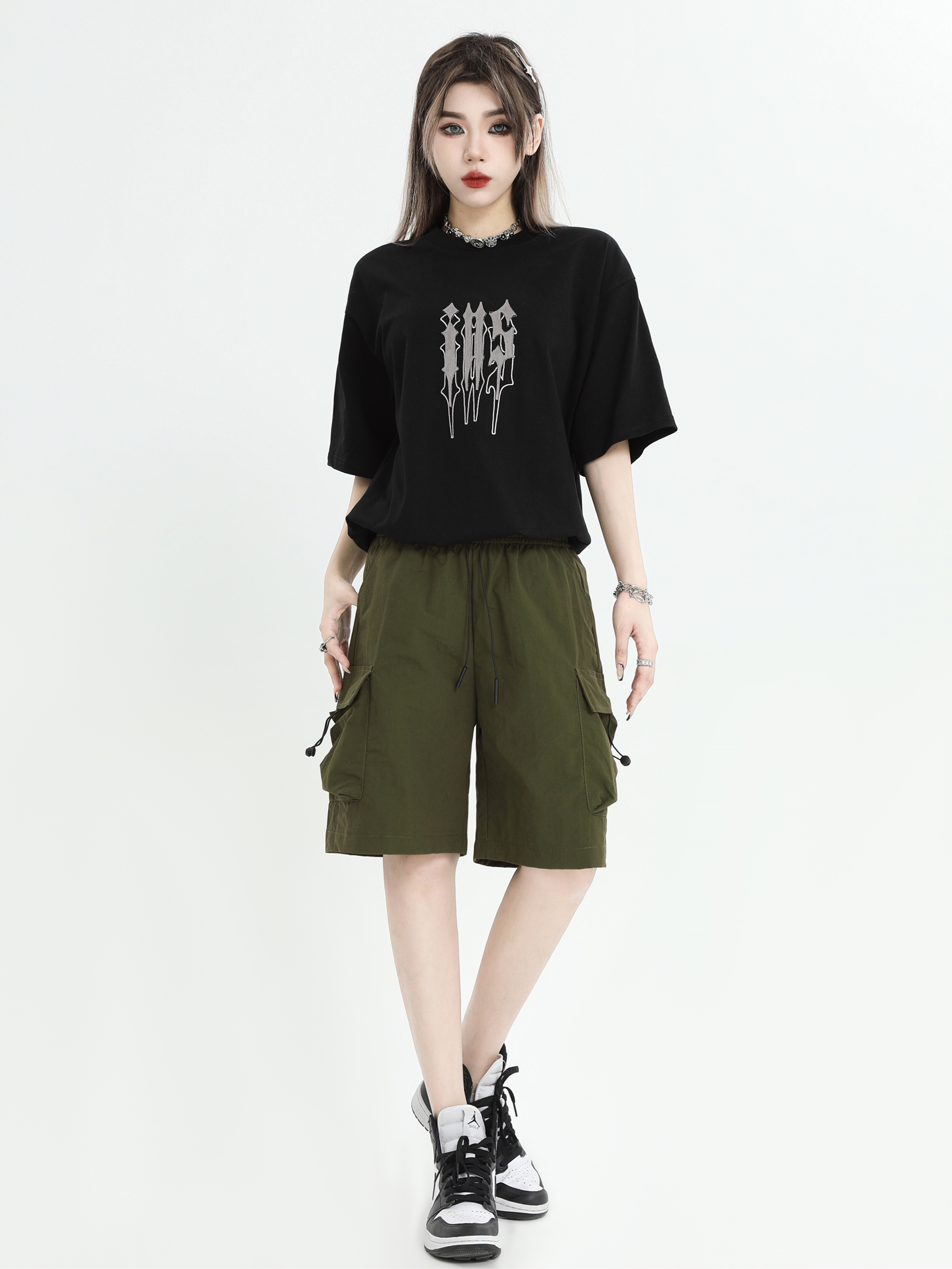 INSstudios 國潮牌情侶美式抽繩褶皺工裝短褲寬鬆直筒休閒五分褲