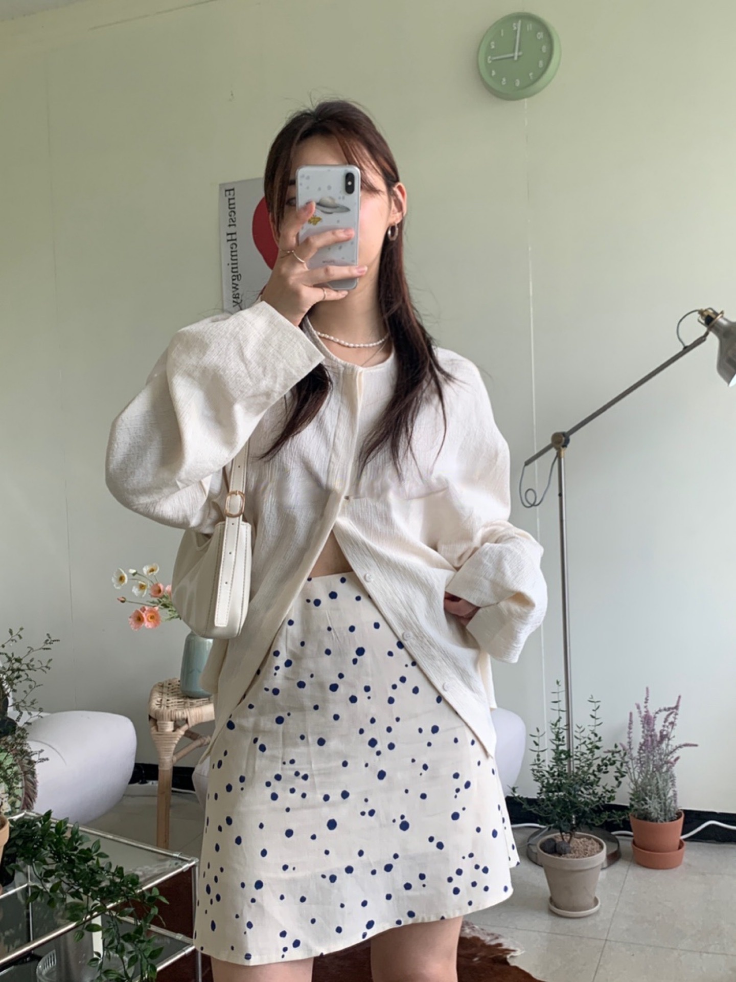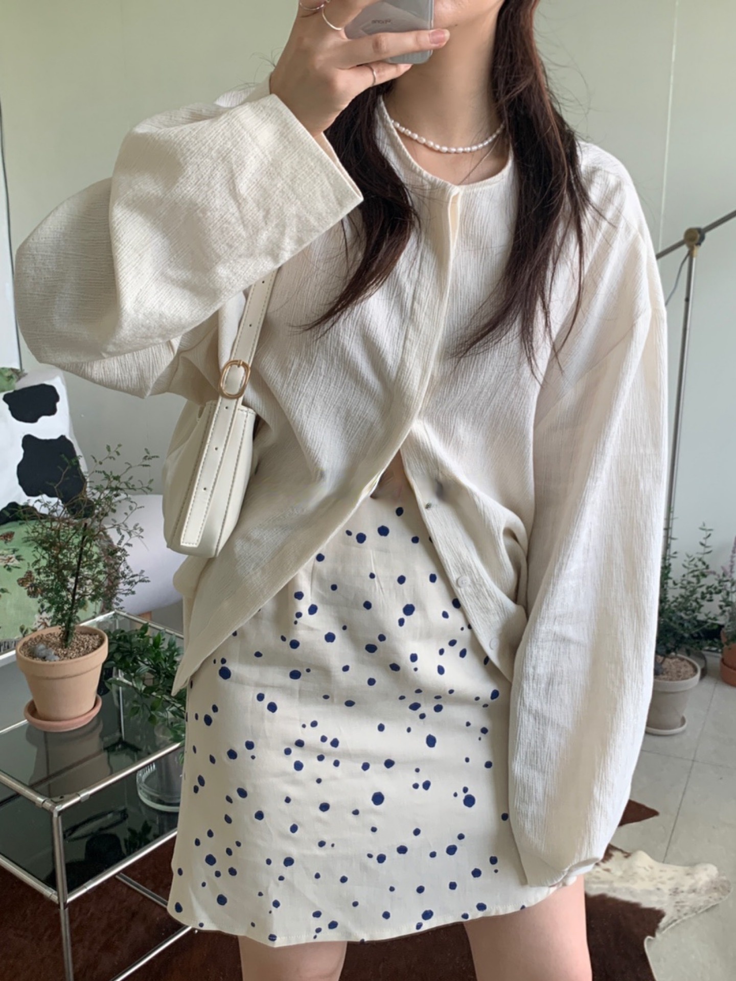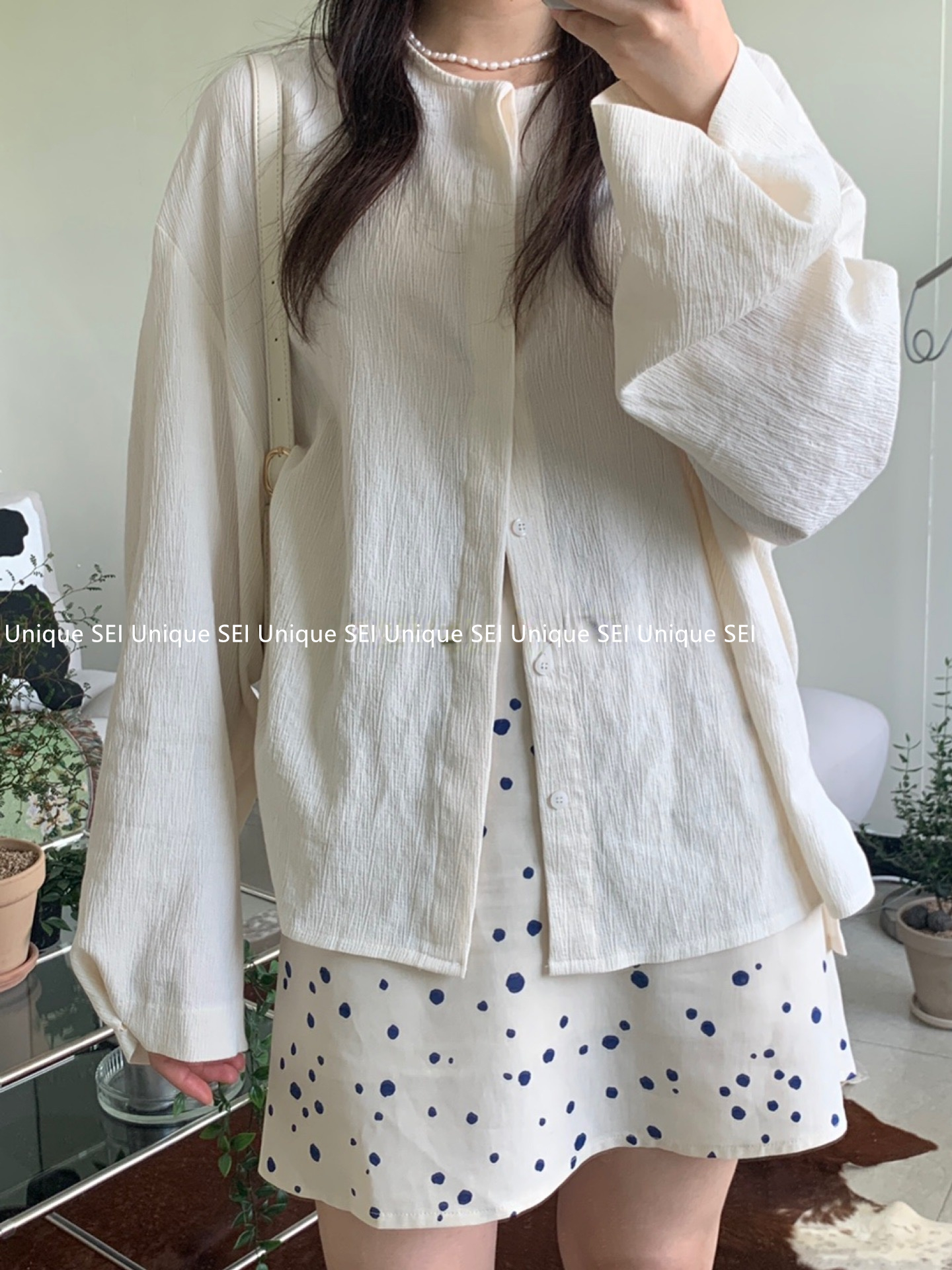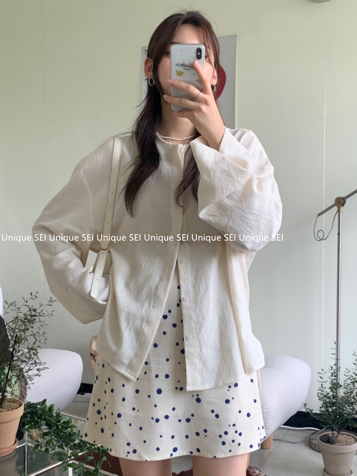 Unique SEI韓國小眾設計簡約夏季象牙白肌理亞麻防曬休閒外套襯衫