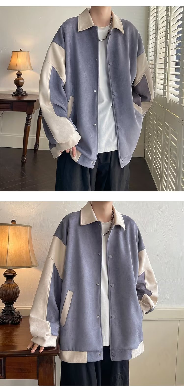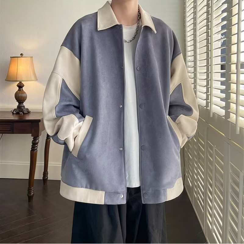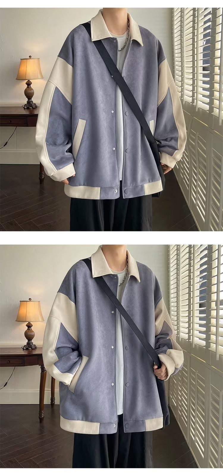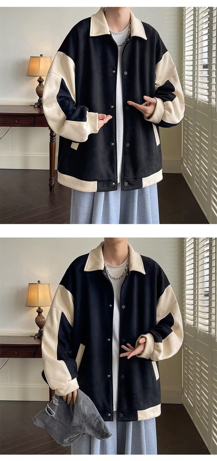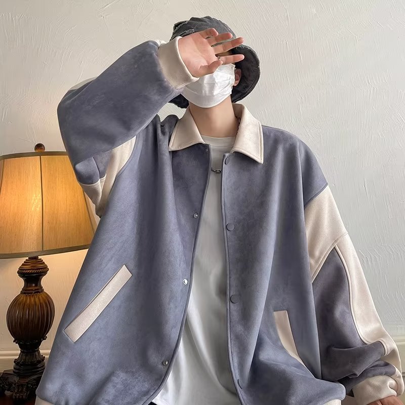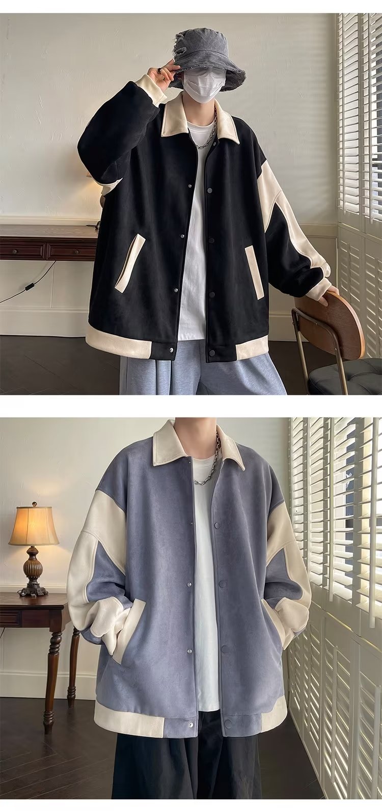高級感外套男生秋冬季加厚款寬鬆美式麂皮絨痞帥潮小香風拼色夾克