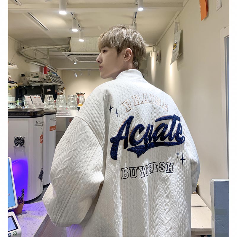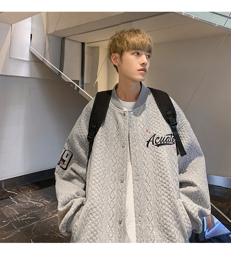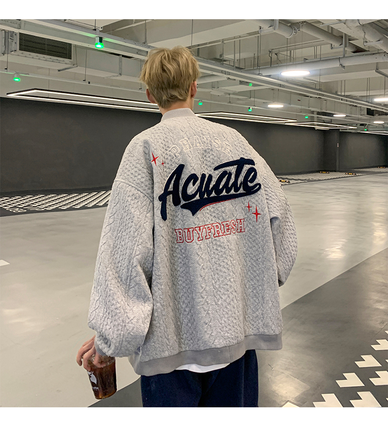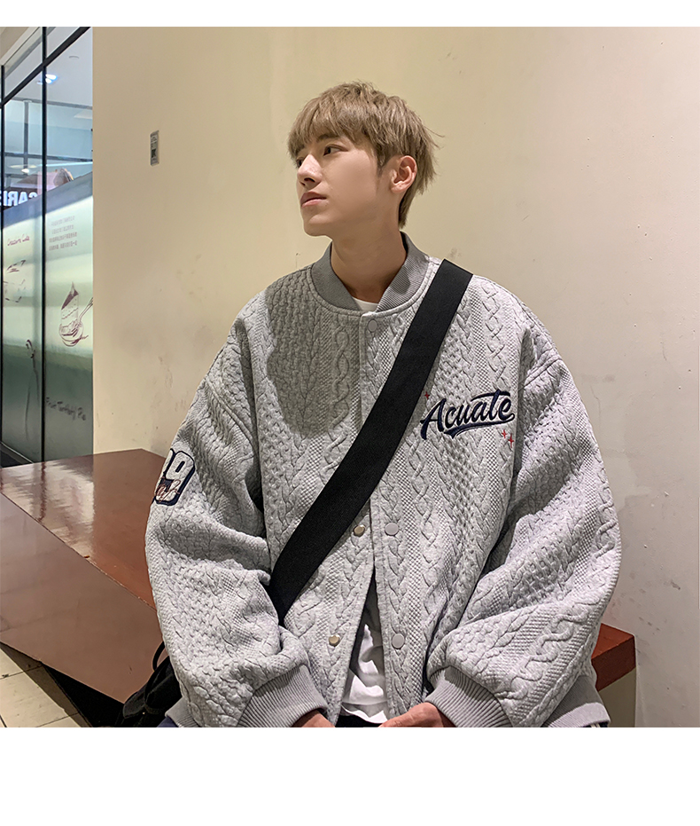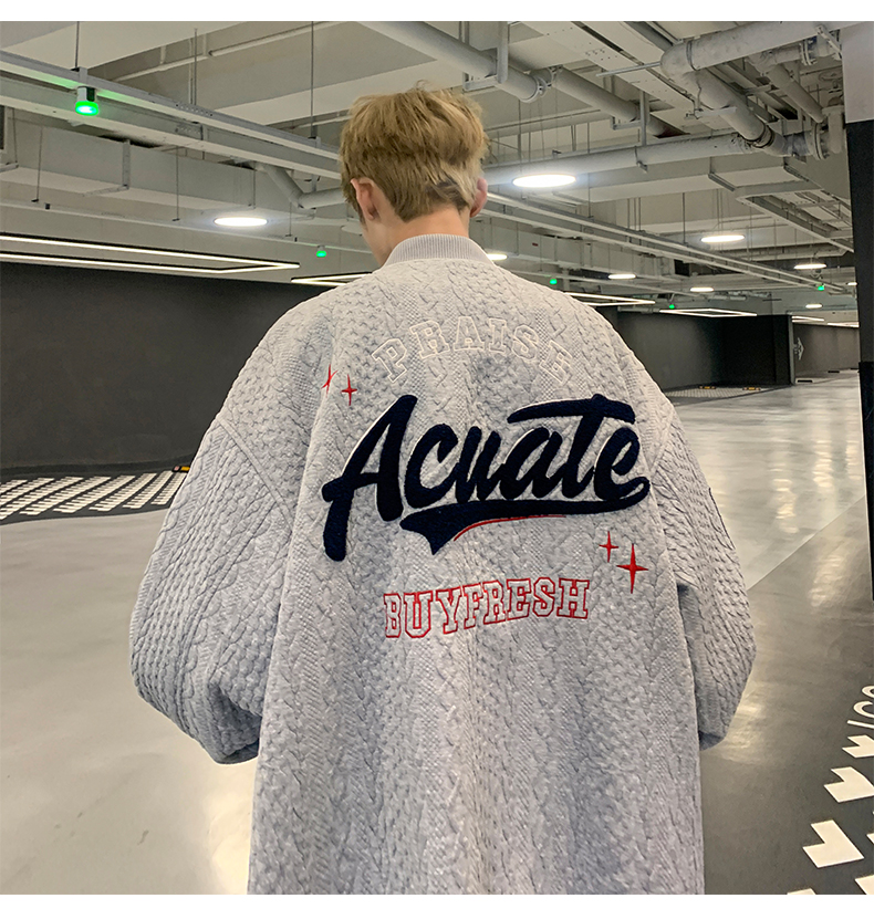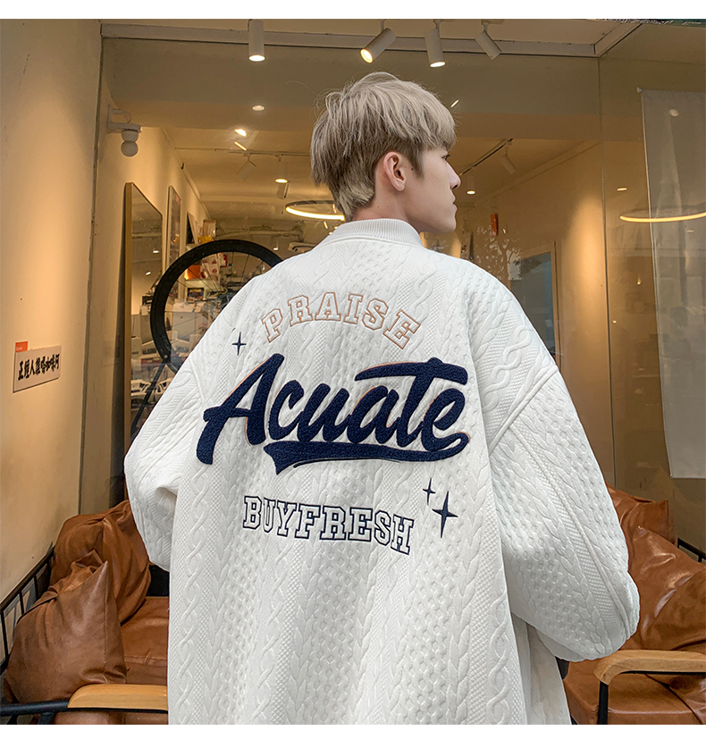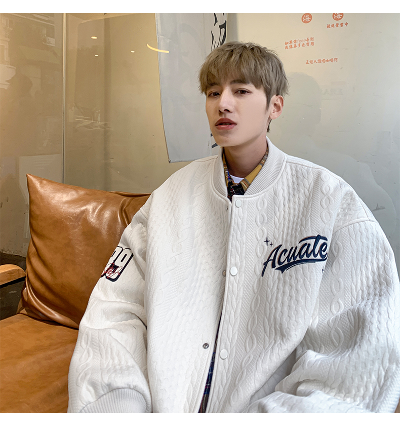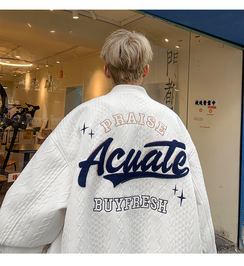 高級感炸街外套vintage棒球服麻花紋刺繡夾克男歐美風高級感穿搭