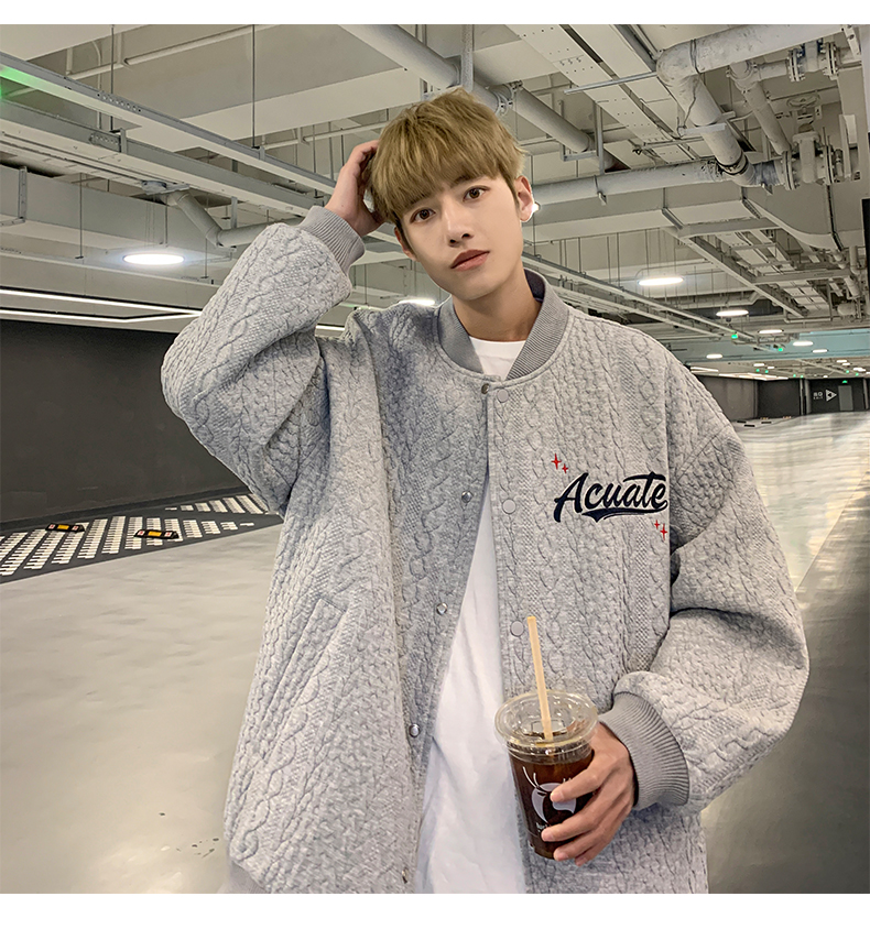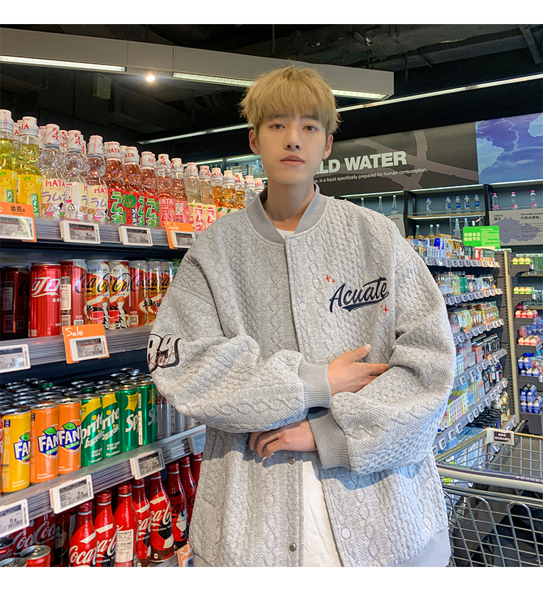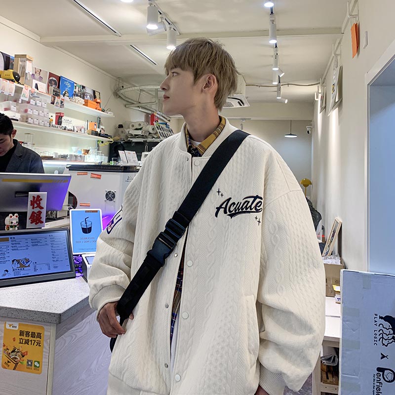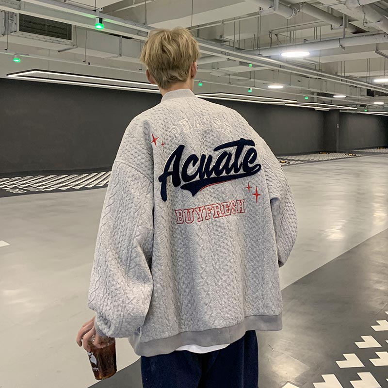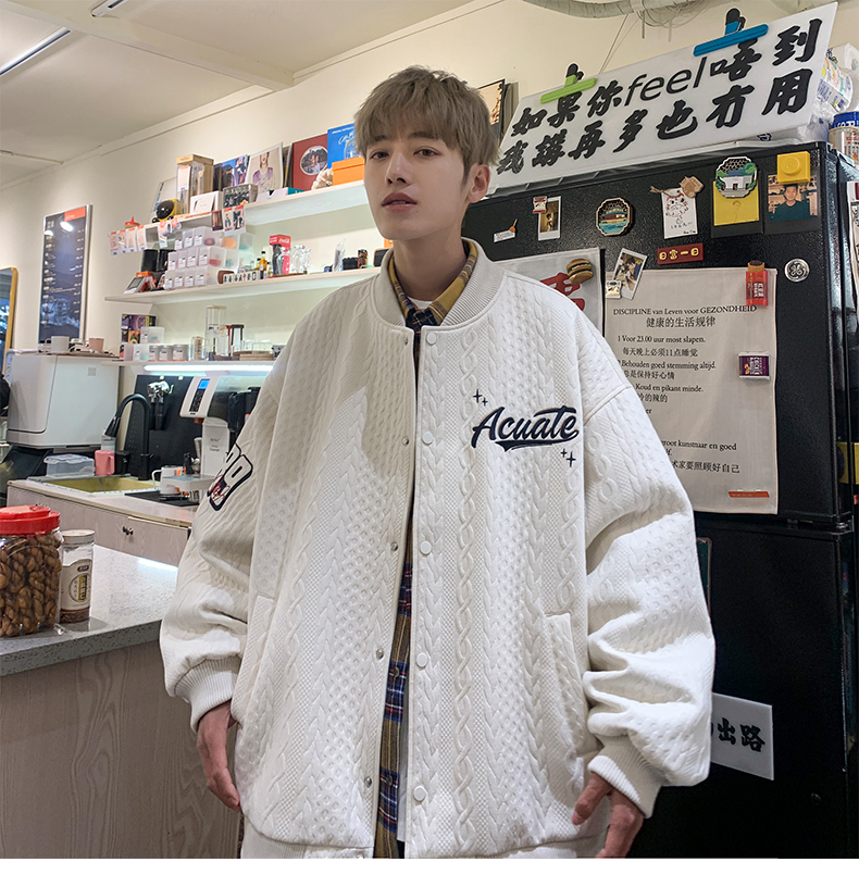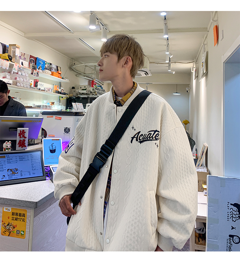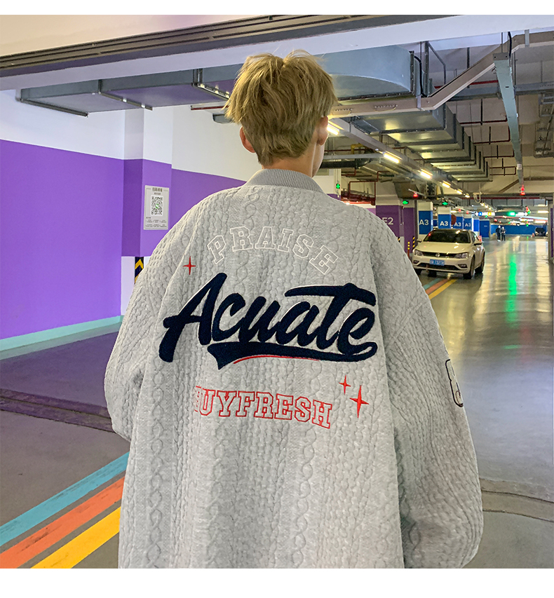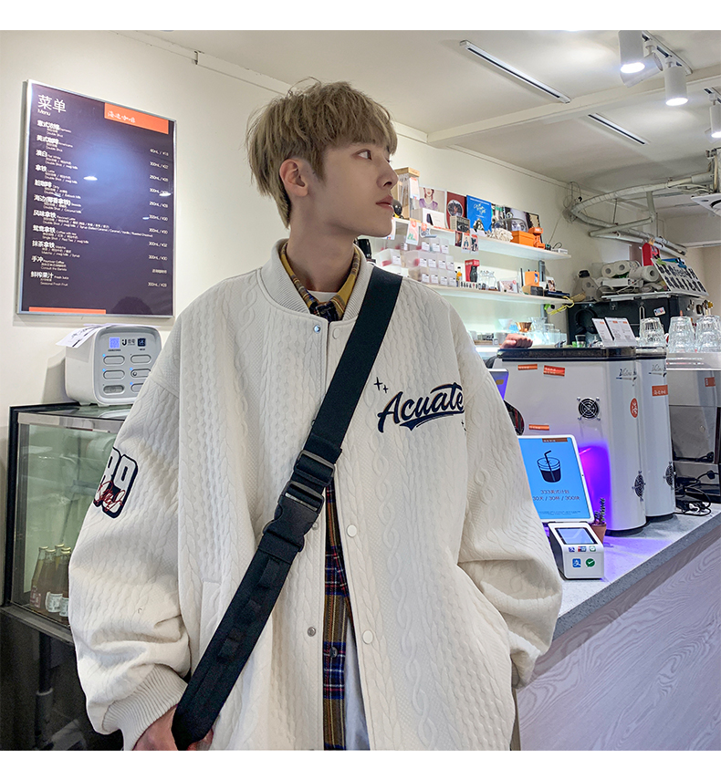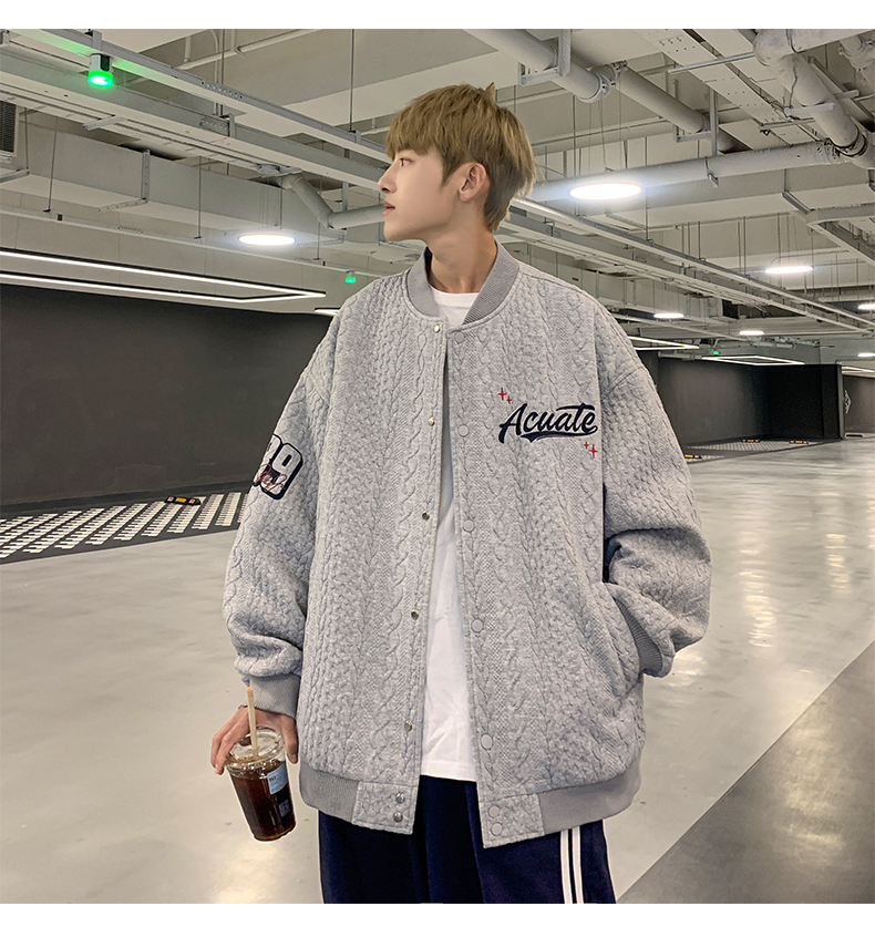 高級感炸街外套vintage棒球服麻花紋刺繡夾克男歐美風高級感穿搭