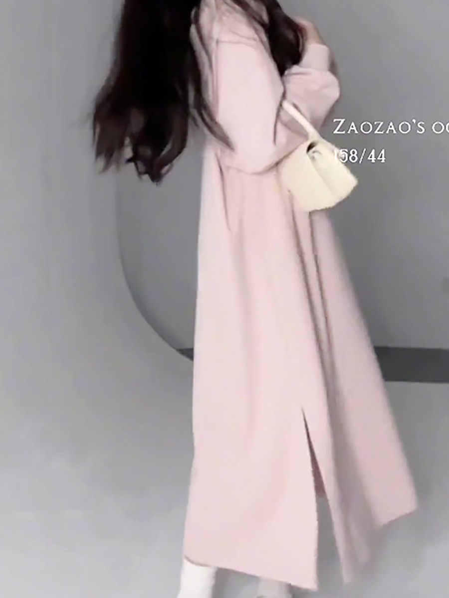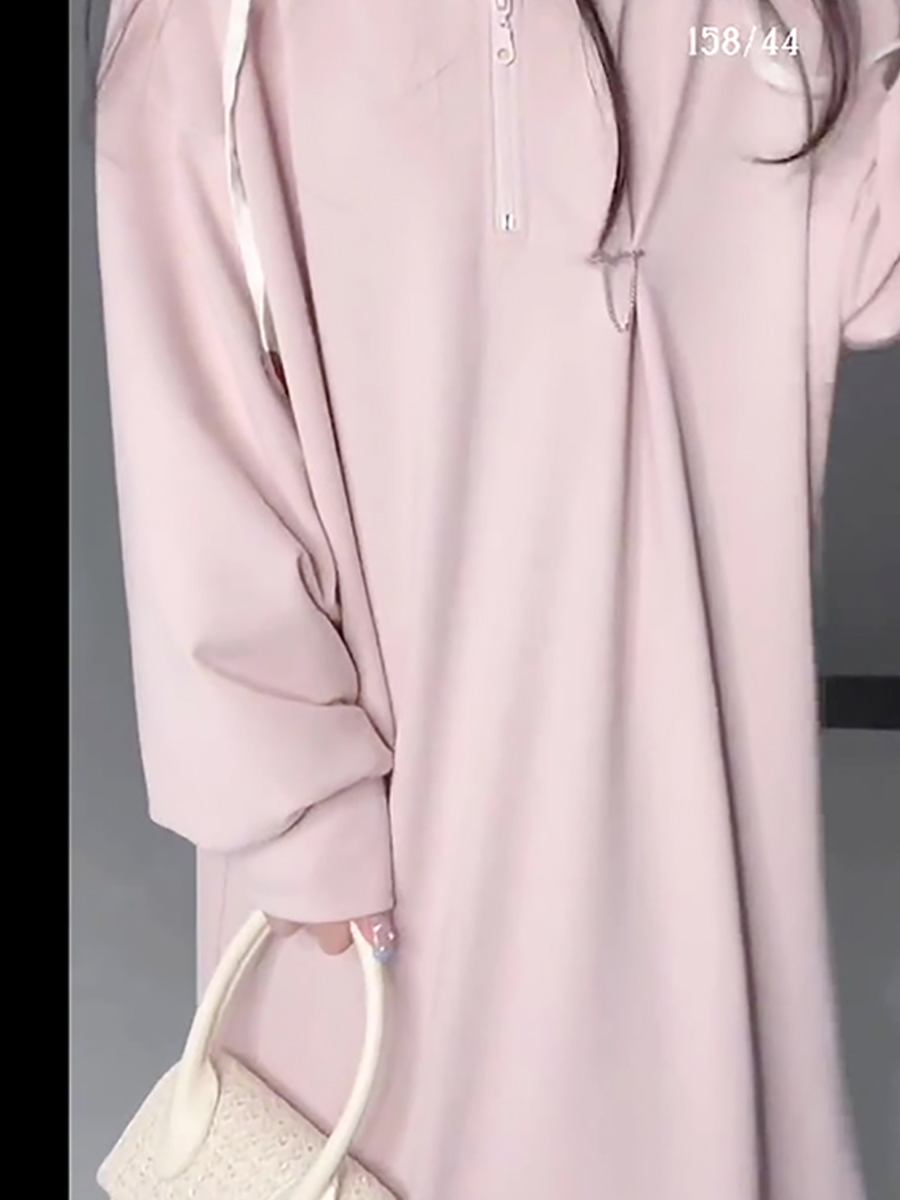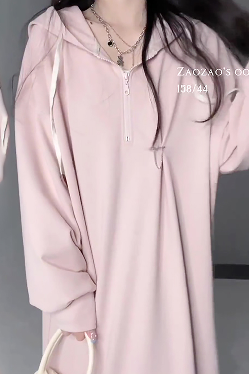 乾枯玫瑰連帽運動衫裙女春季中長版慵懶顯瘦長裙氣質休閒寬鬆洋裝