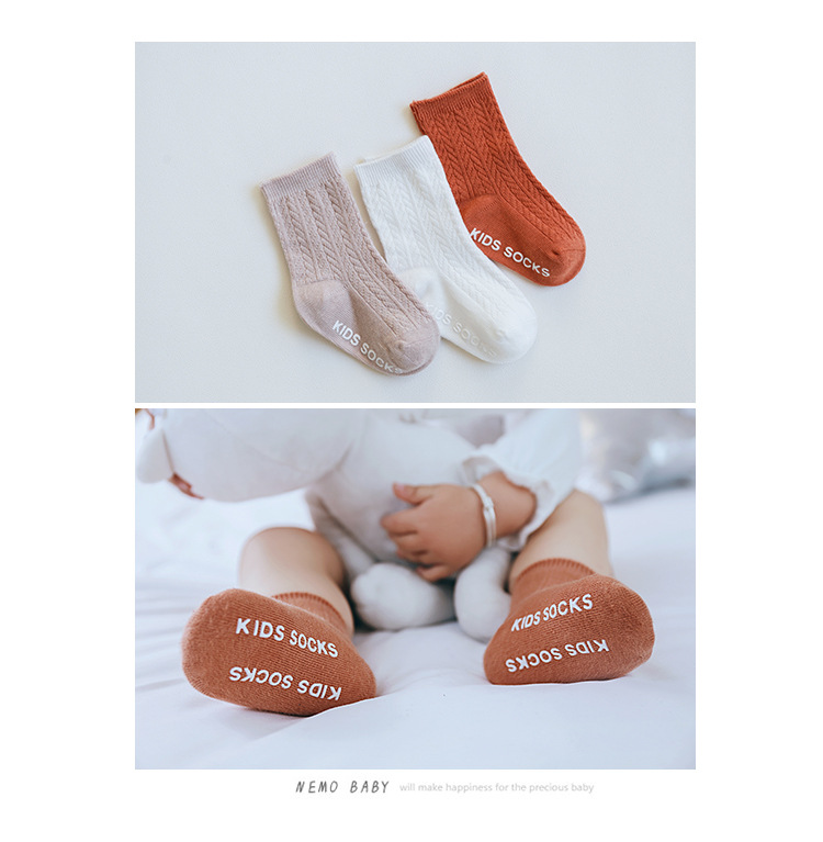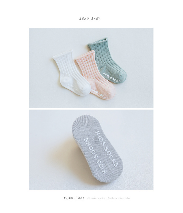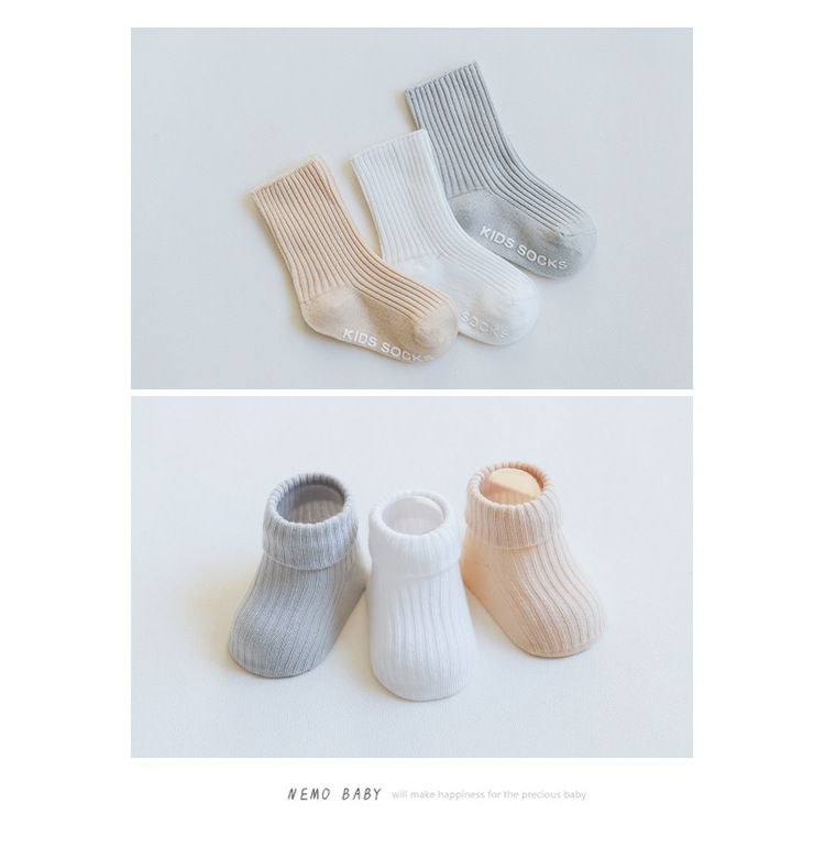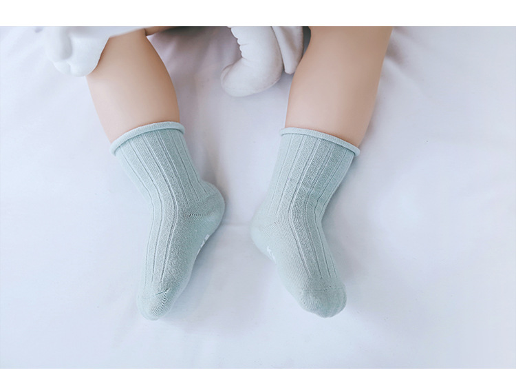 春秋季新款婴儿袜子点胶防滑宝宝袜双针松口素色中小童儿童袜批发