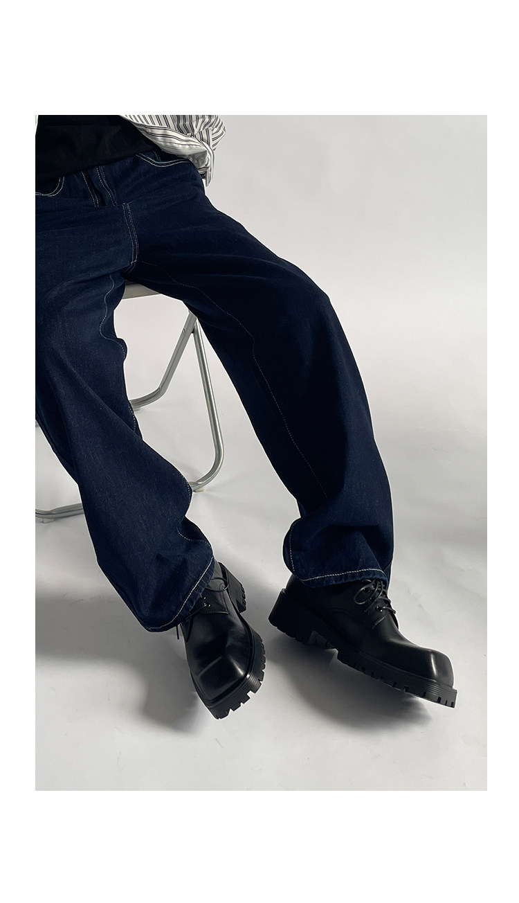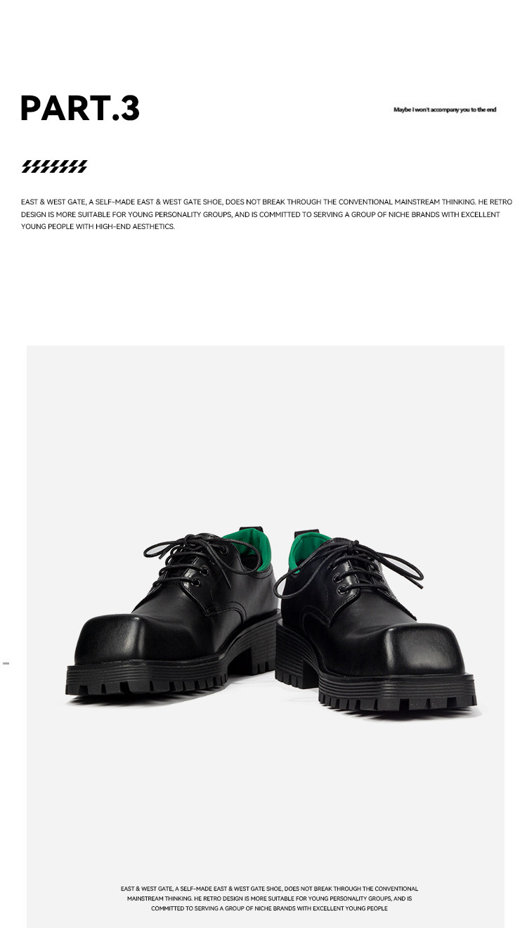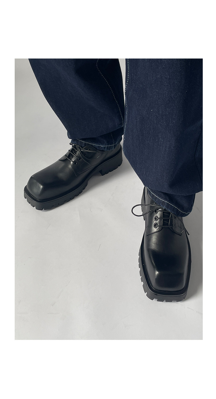東西門 異型系列 新款大頭方頭皮鞋潮男厚底個性休閒德比鞋男真皮