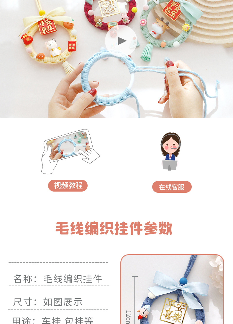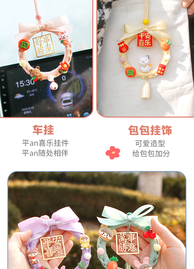 平安符手工編織汽車掛件自制毛線刺繡diy材料包網紅情侶創意女生禮物