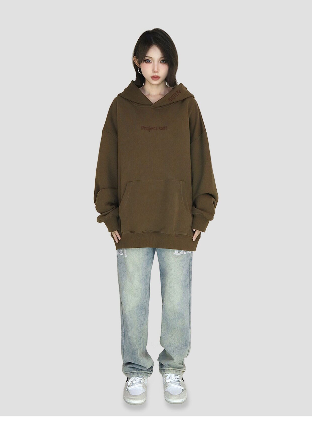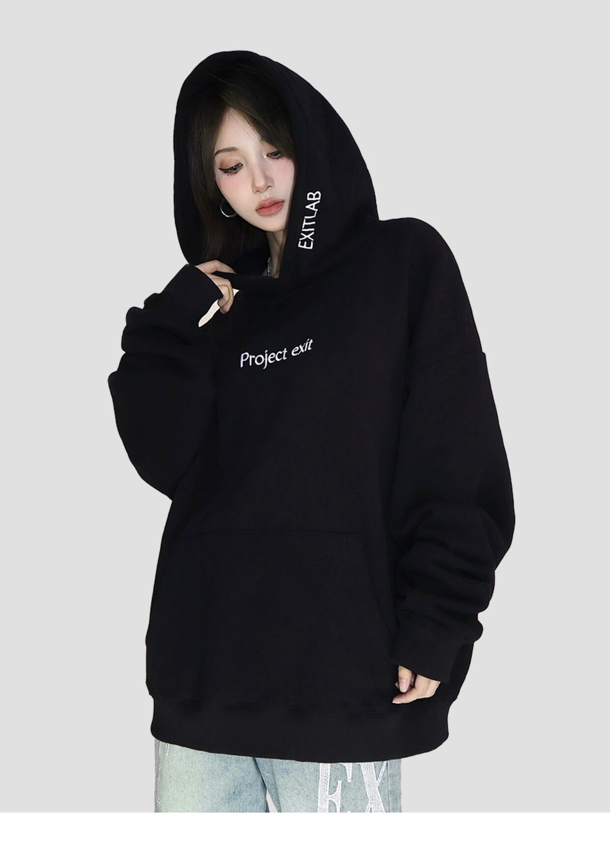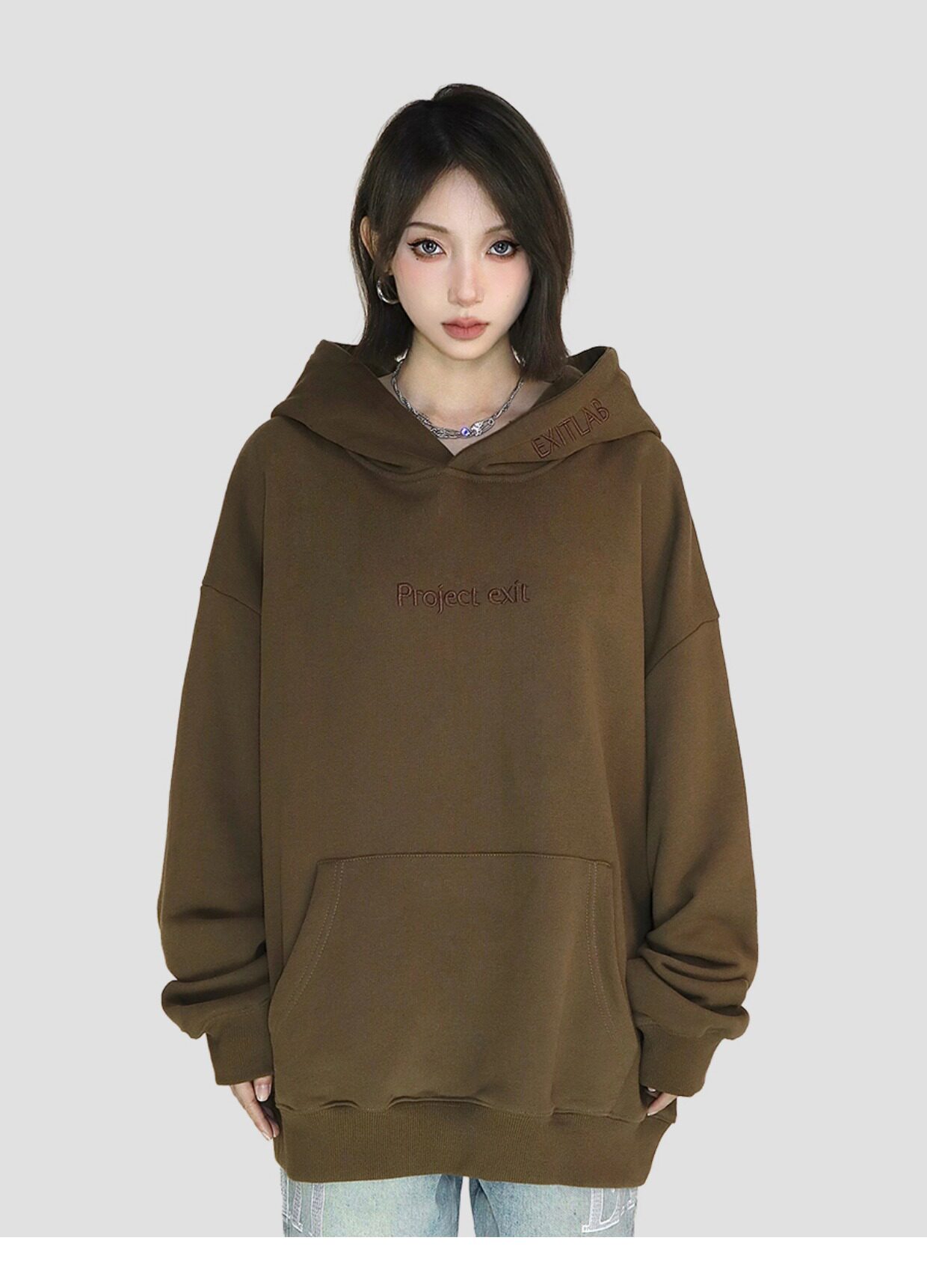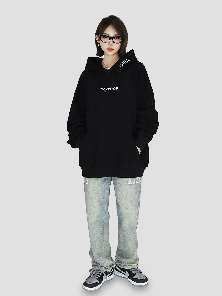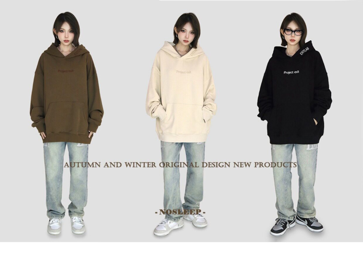 FCURVE 高級感刺繡簡約字母高街帽衫寬鬆連帽運動衫加絨國潮情侶男