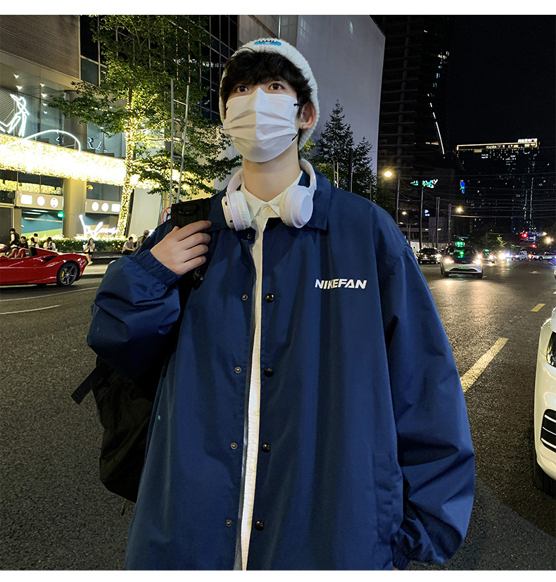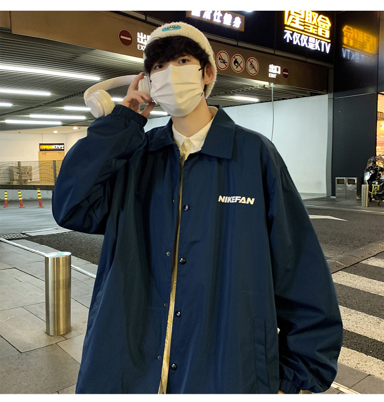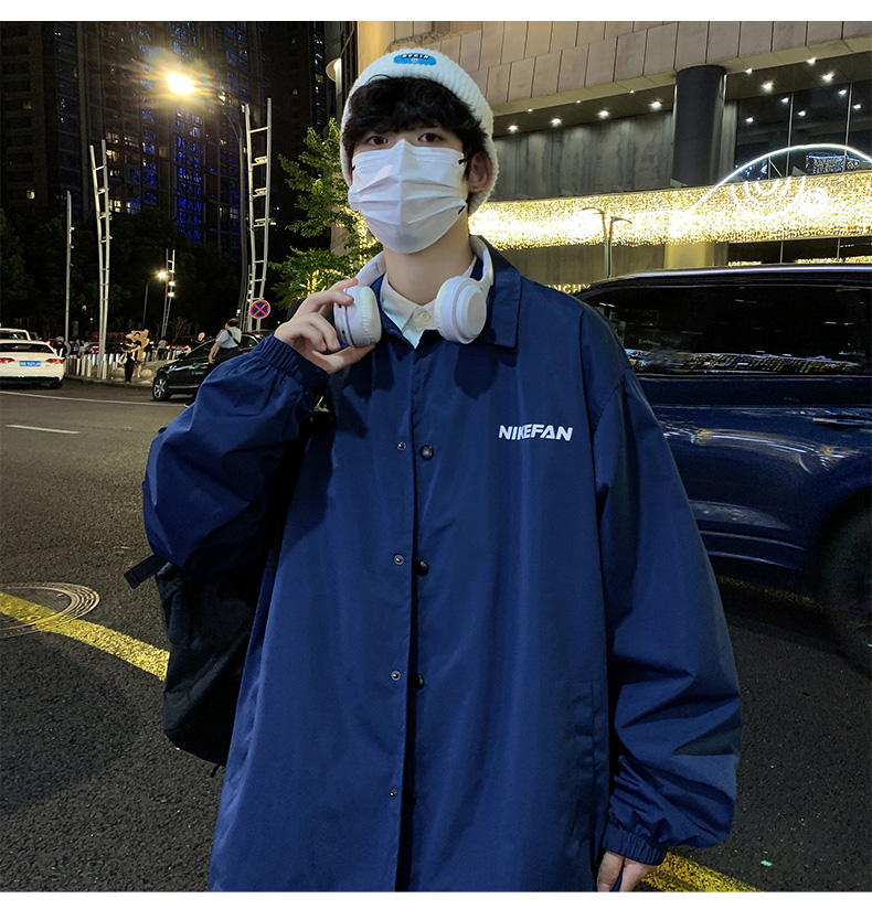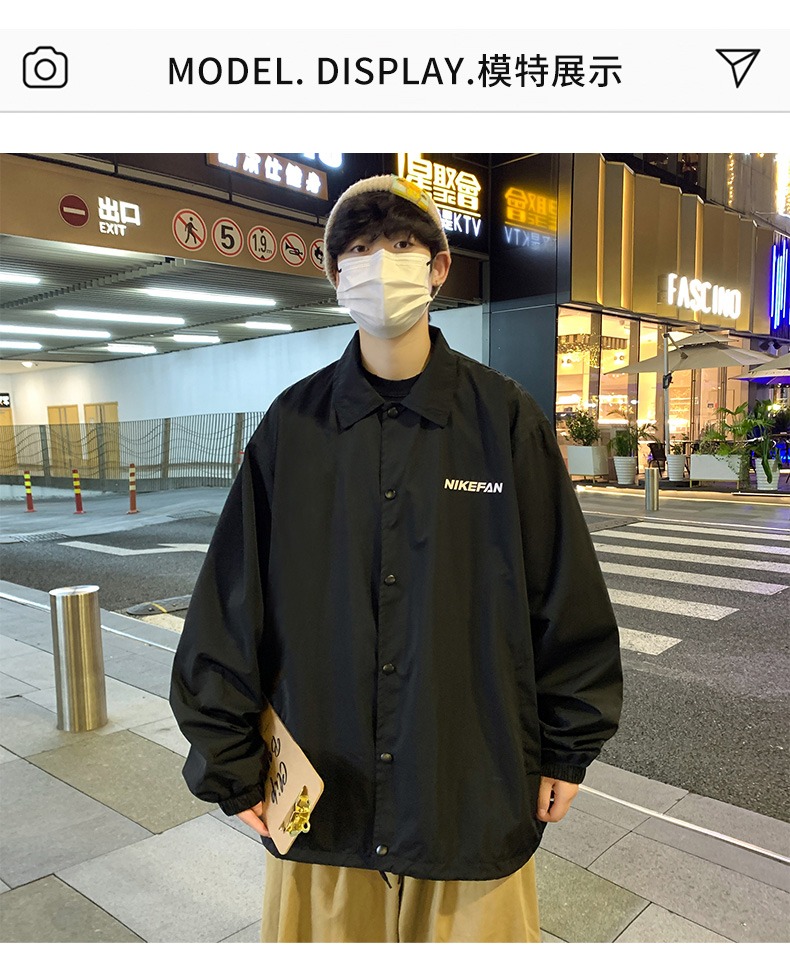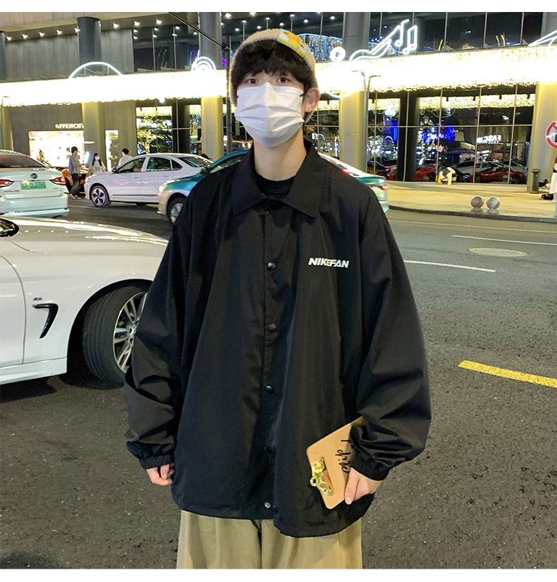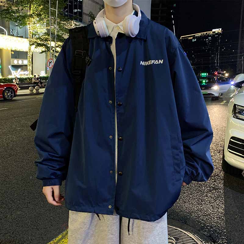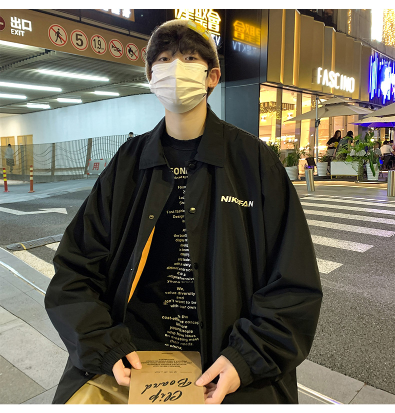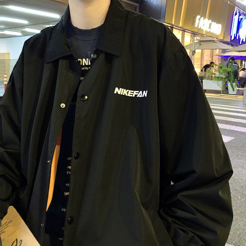 陽光乾淨男生穿搭字母印花設計感小眾上衣oversize慵懶風夾克外套