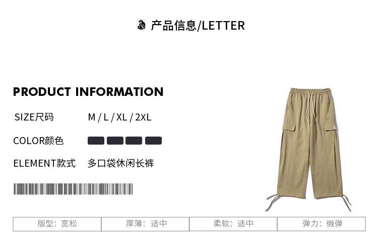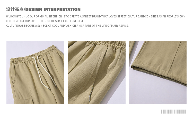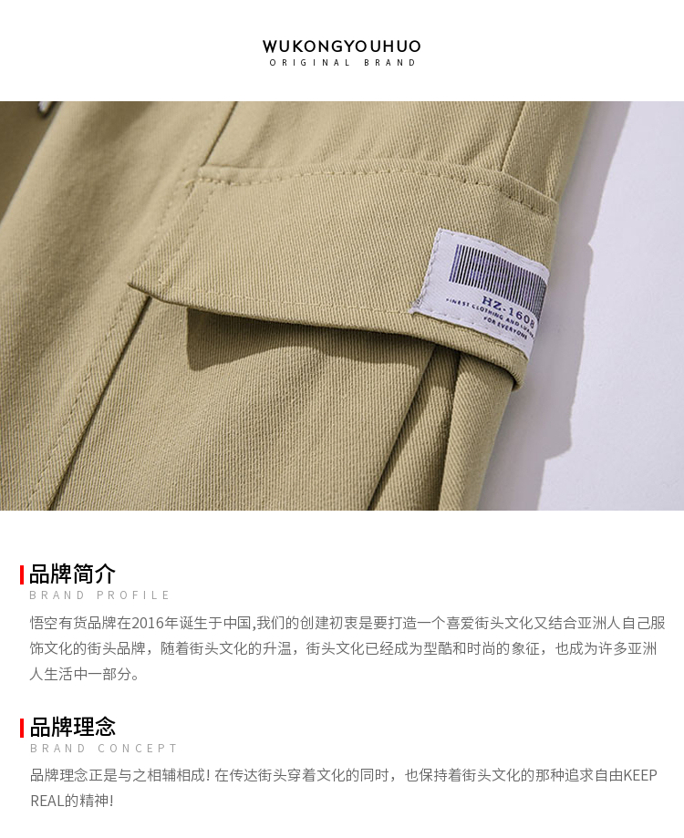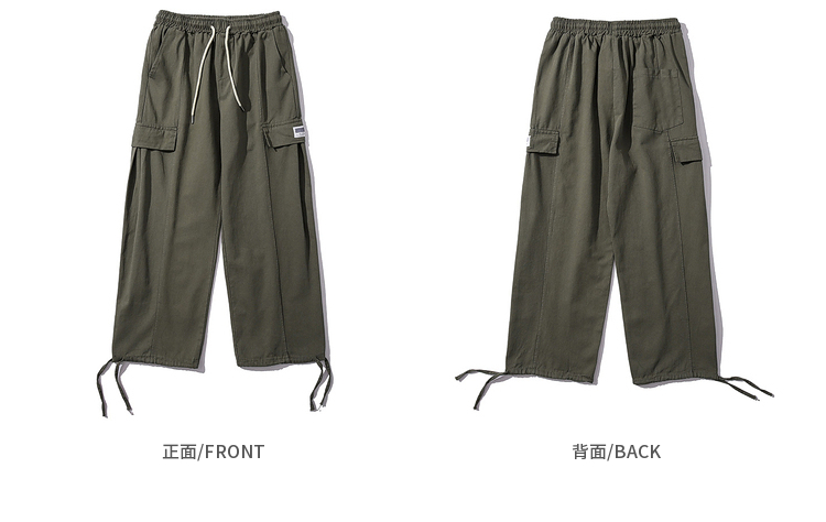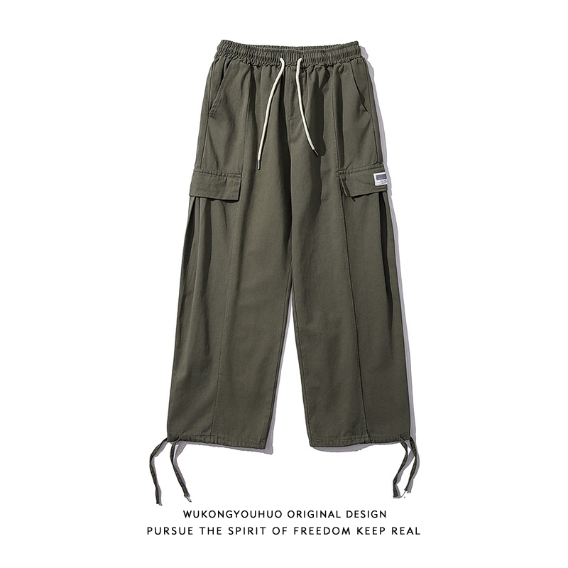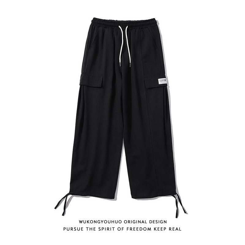 悟空有貨日系街頭多口袋闊腿工裝褲男潮牌寬鬆百搭抽繩束腳休閒褲