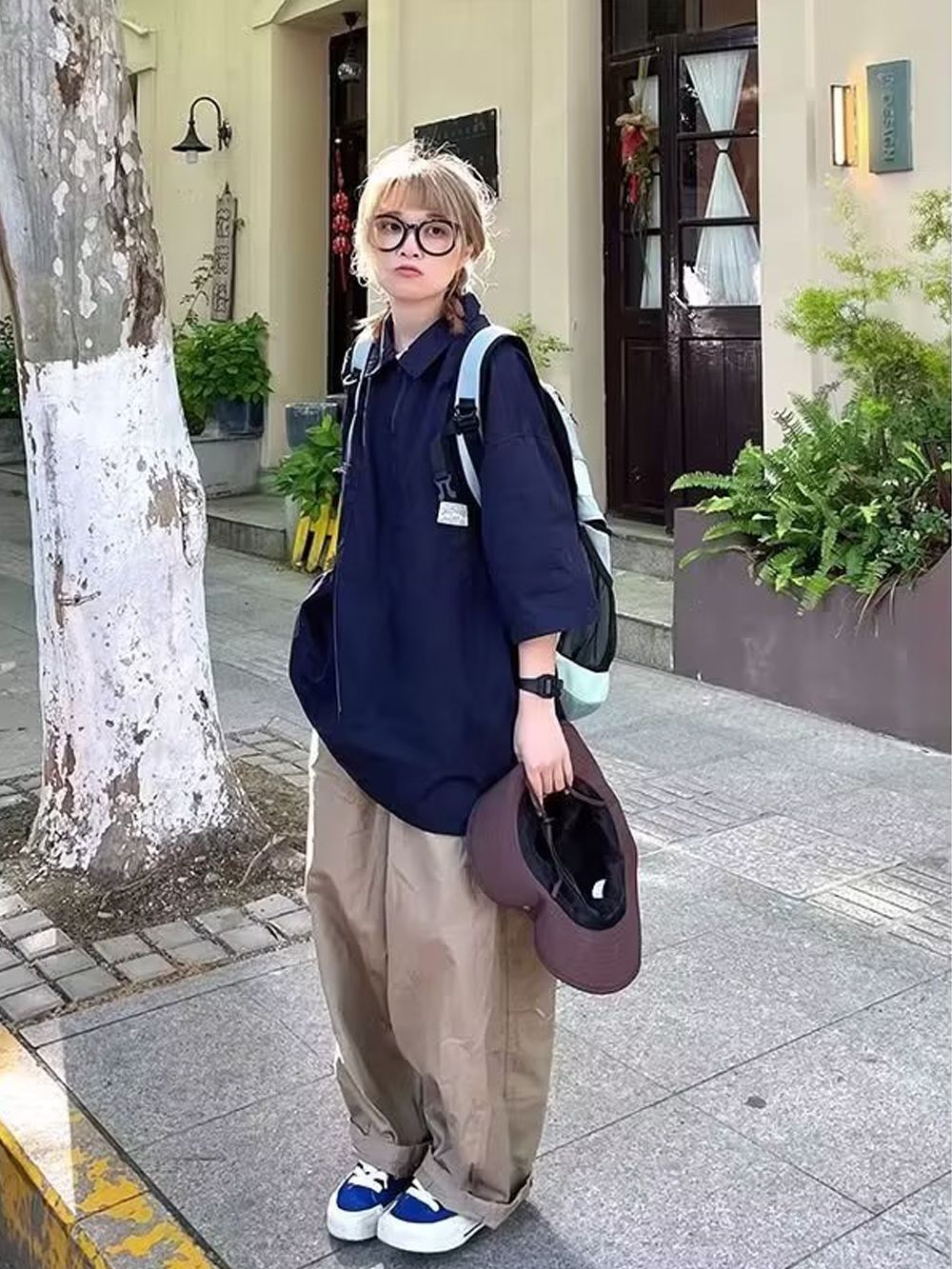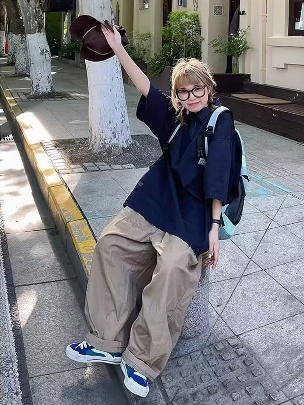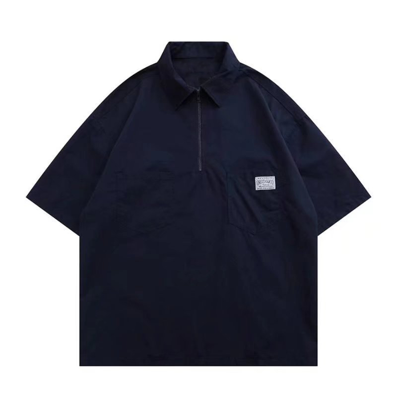 日系復古寬鬆POLO衫男女中性風格cityboy慵懶工裝休閒短袖T恤上衣