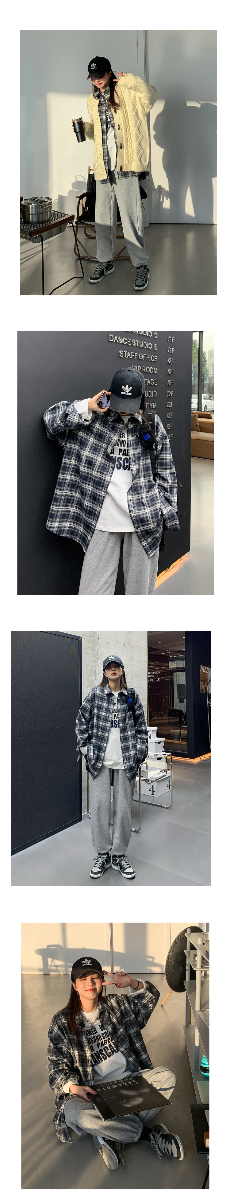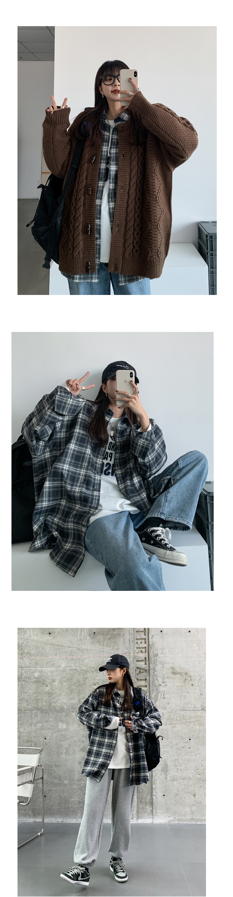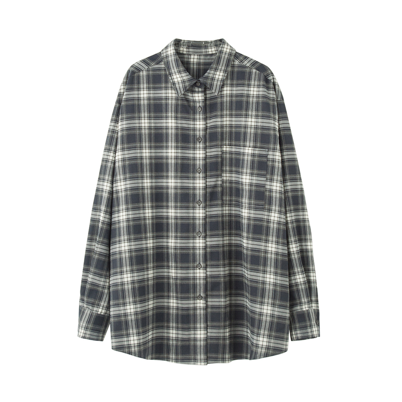 SIXI四喜家春秋 復古疊穿/格子襯衫女寬鬆長袖中長版開衫外套
