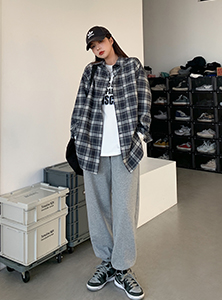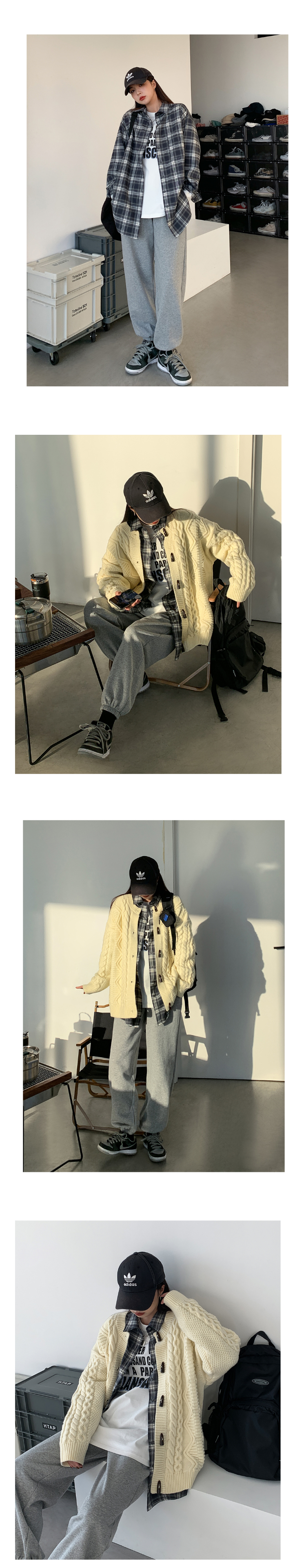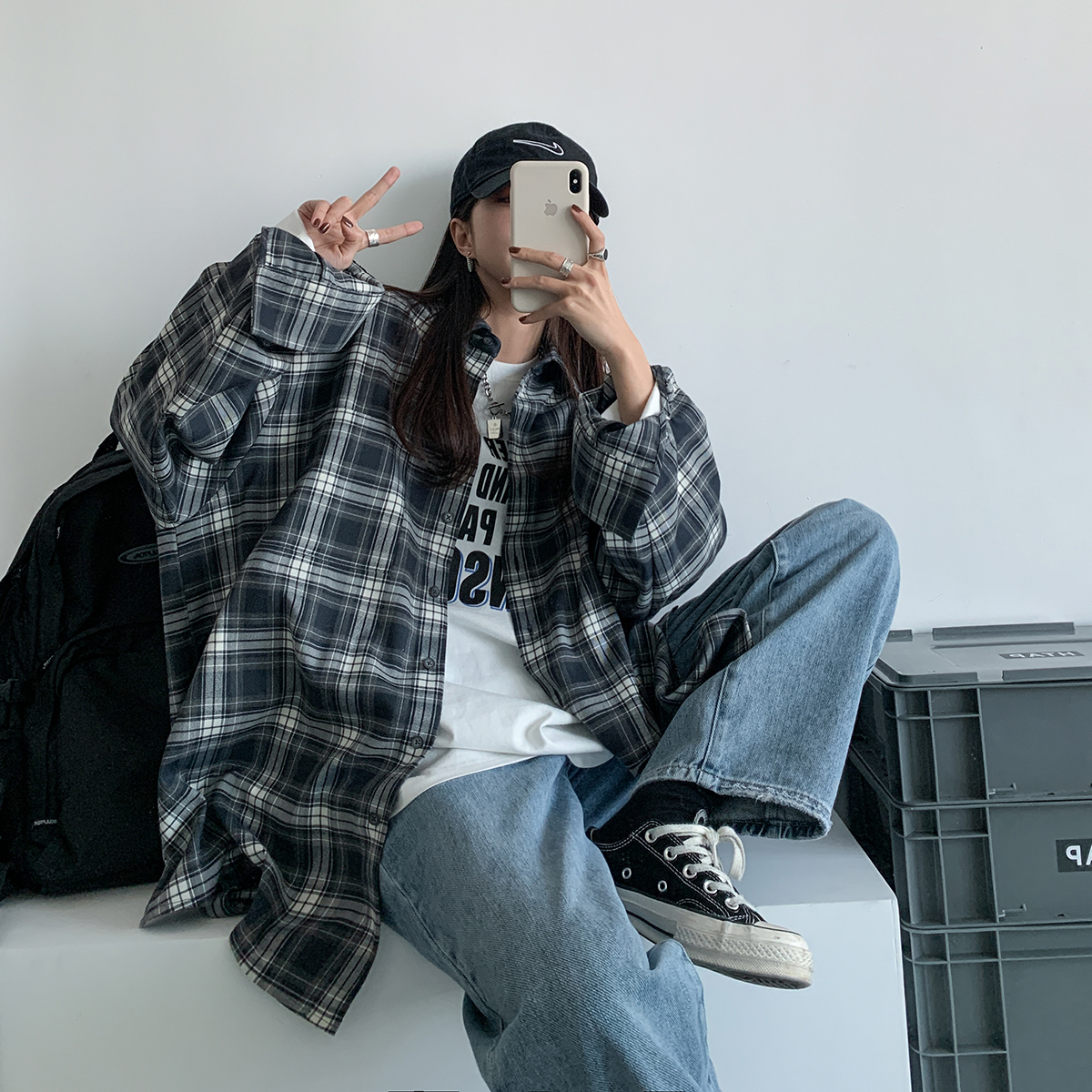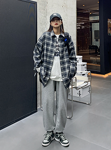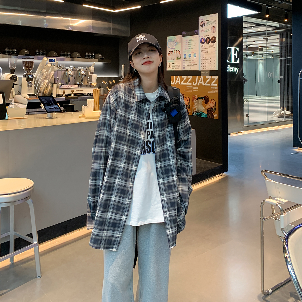 SIXI四喜家春秋 復古疊穿/格子襯衫女寬鬆長袖中長版開衫外套