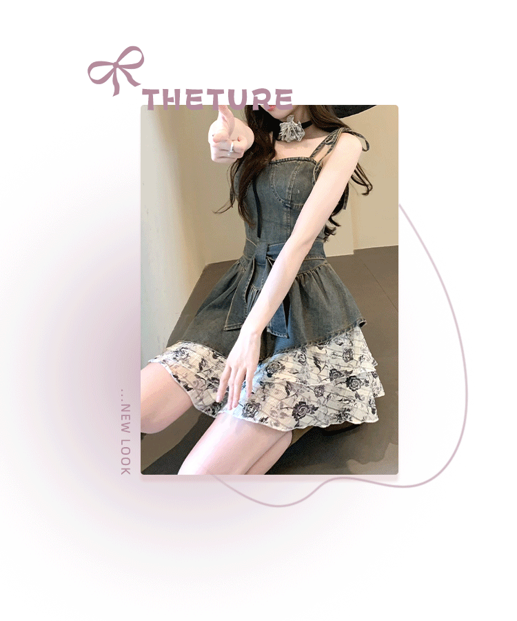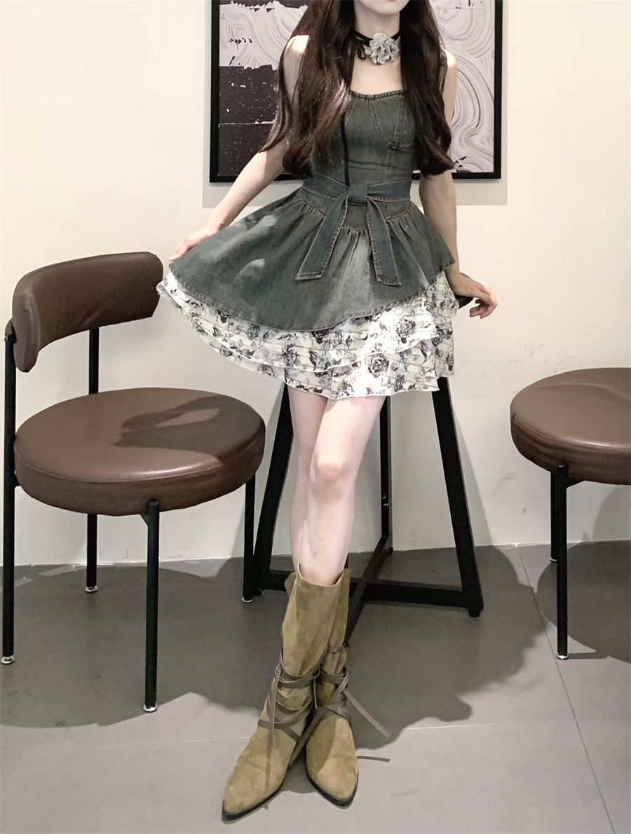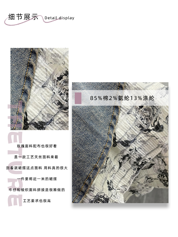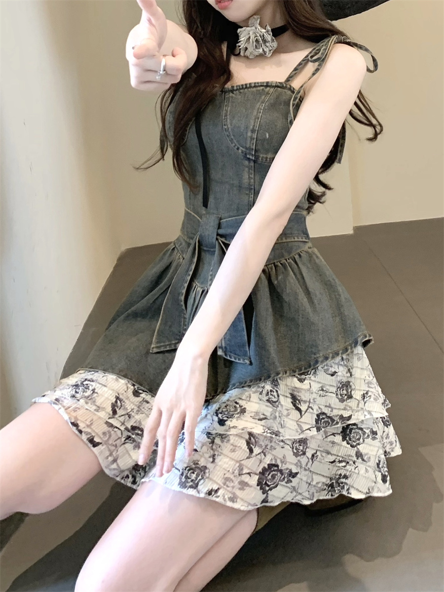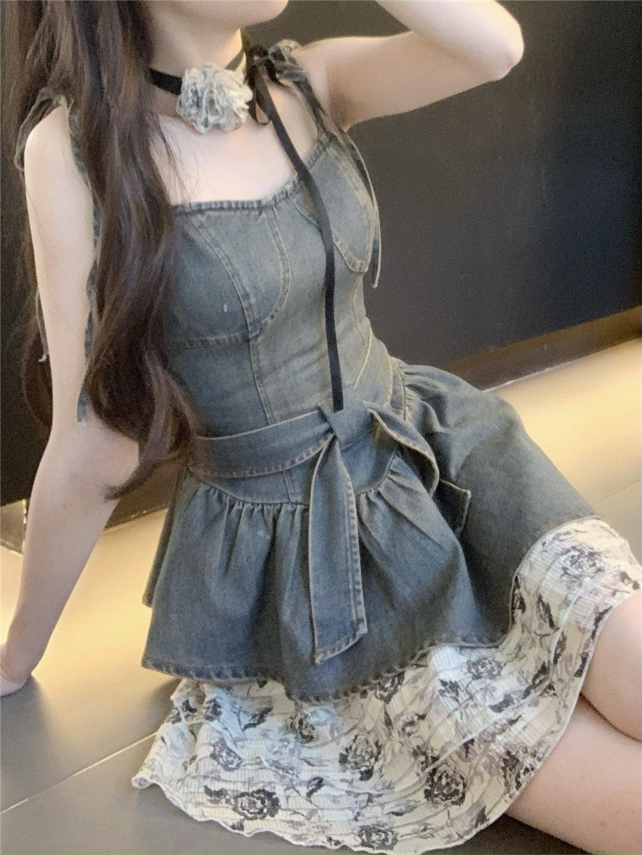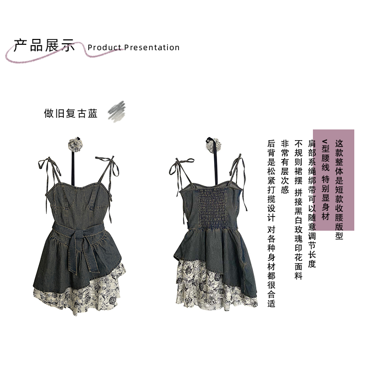THETURE 原創玫瑰牛仔洋裝女夏季2023新款顯瘦辣妹吊帶裙高級感