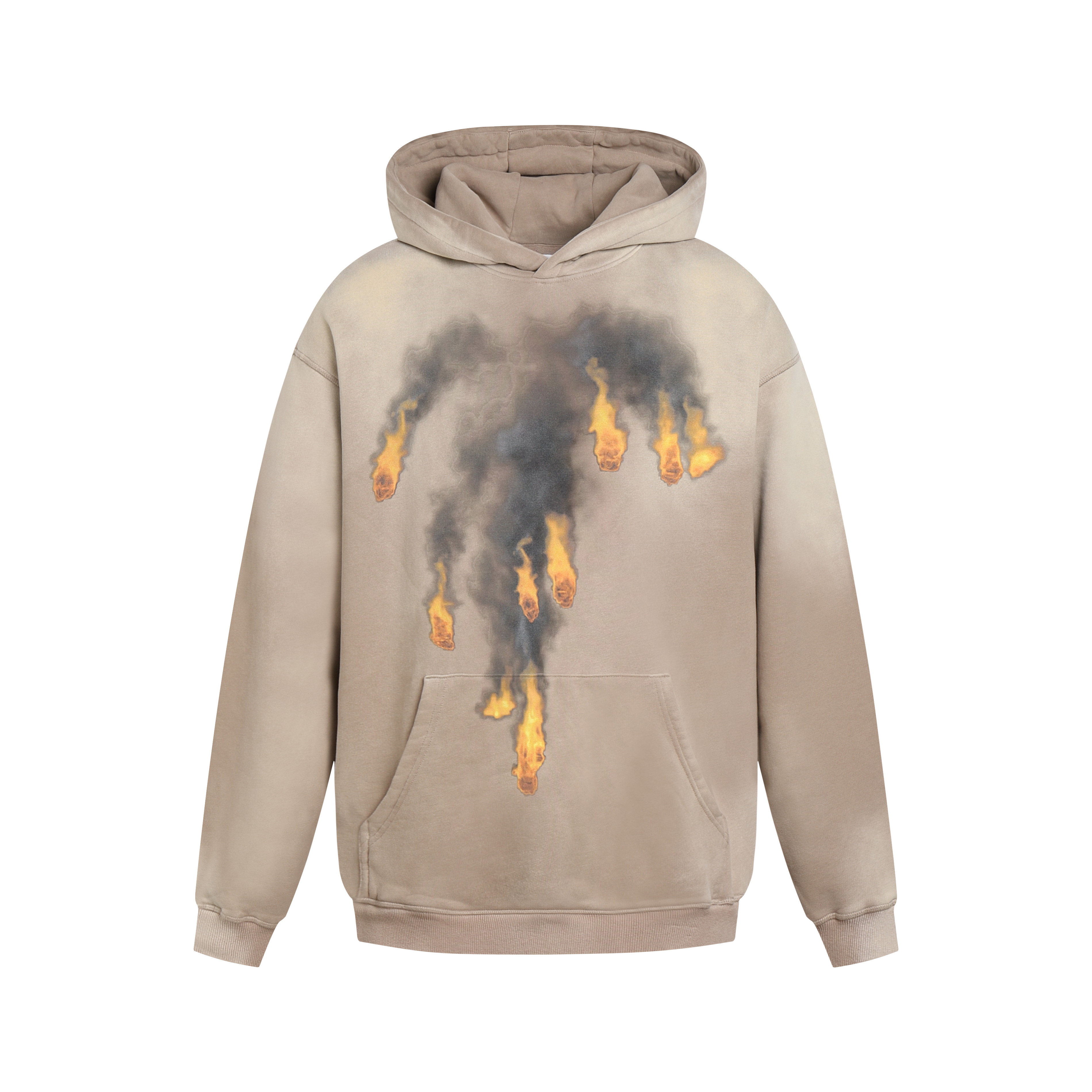 JESUSLAB22AW秋冬原創“熾熱的火”水洗做舊手工噴繪重磅連帽運動衫