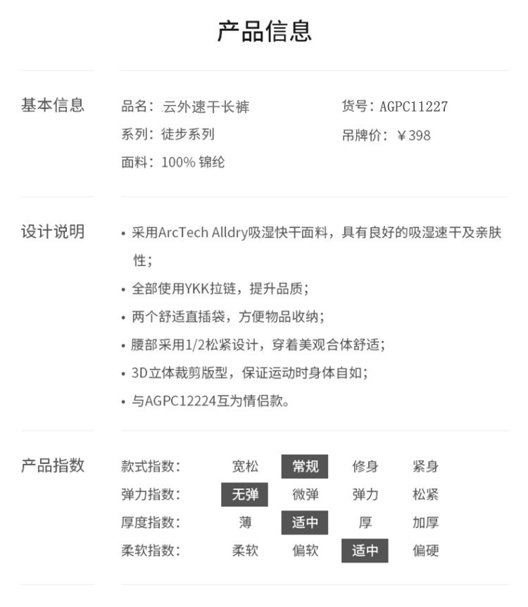 清倉ARCTOS極星戶外 男女快乾速乾長褲透氣薄款休閒正品AGPC11227