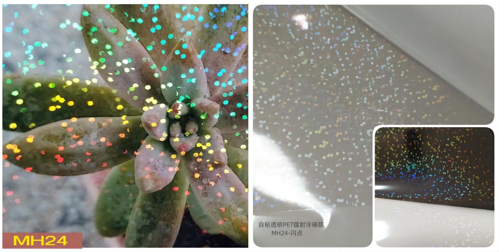PET透明流沙沙点自粘冷裱镭射膜 工厂现货即发 相片 胸章 保护膜