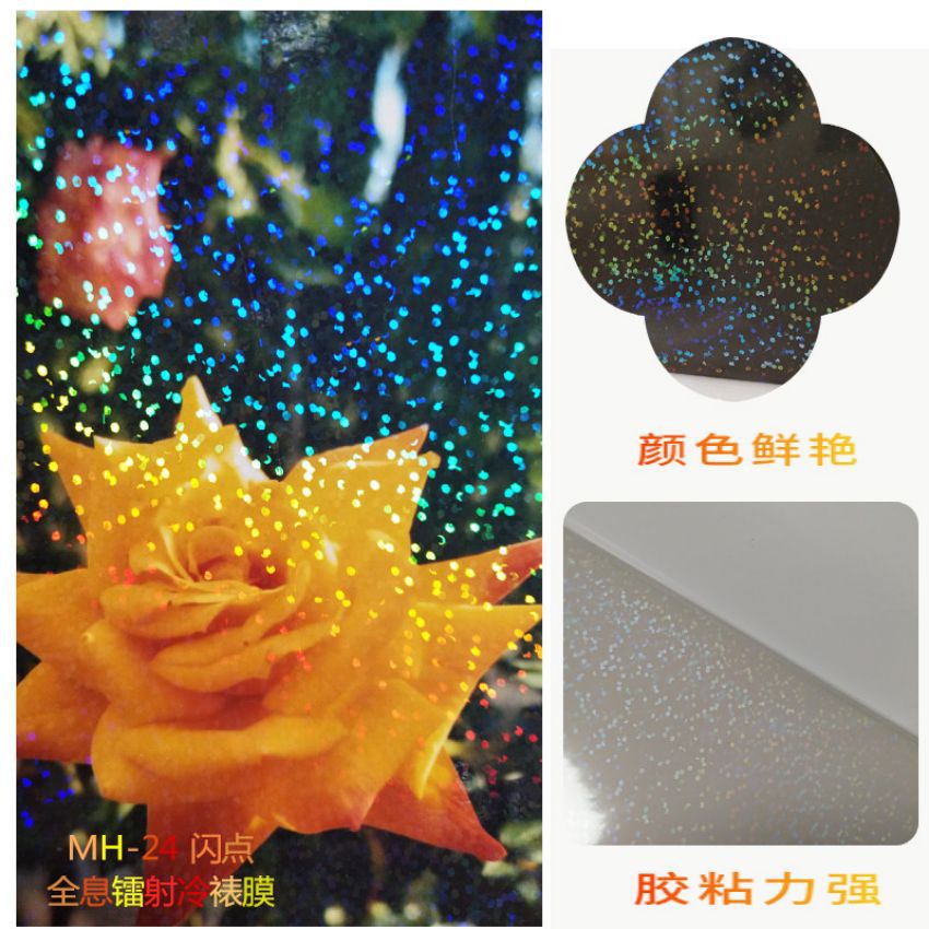 镭射冷裱膜PET闪点彩色圆点膜 现货优惠自粘带背胶写真相片保护膜