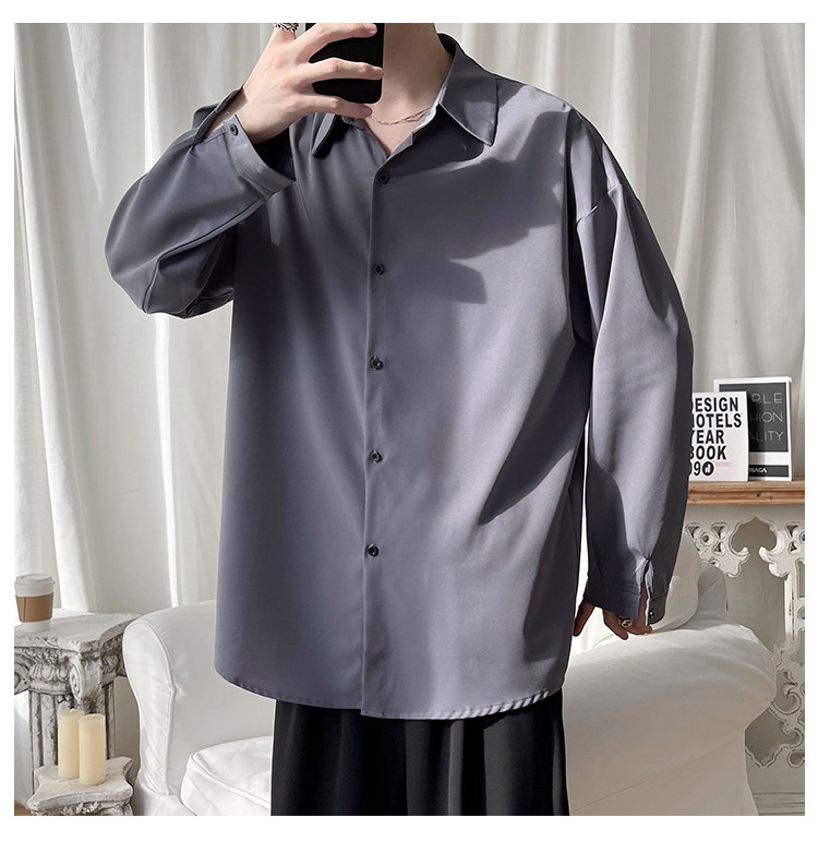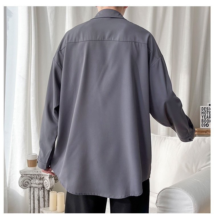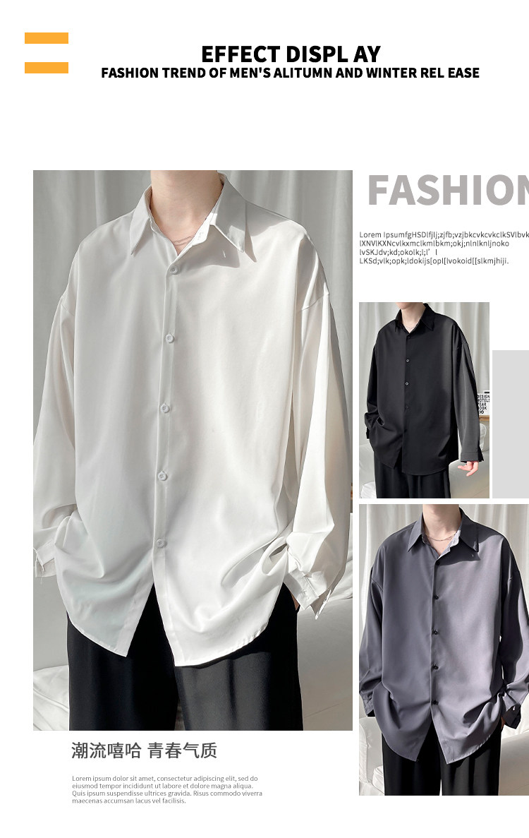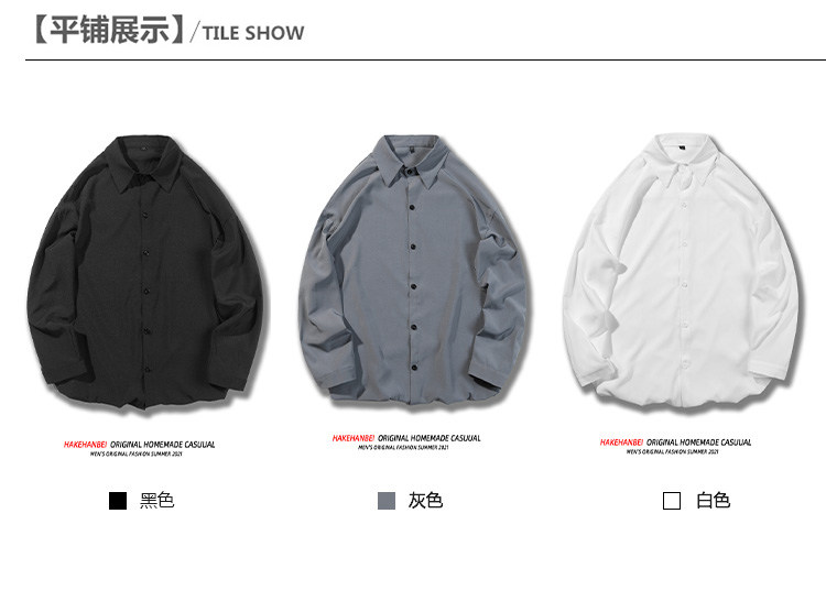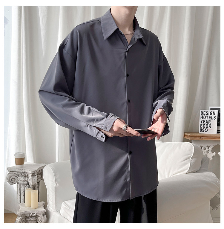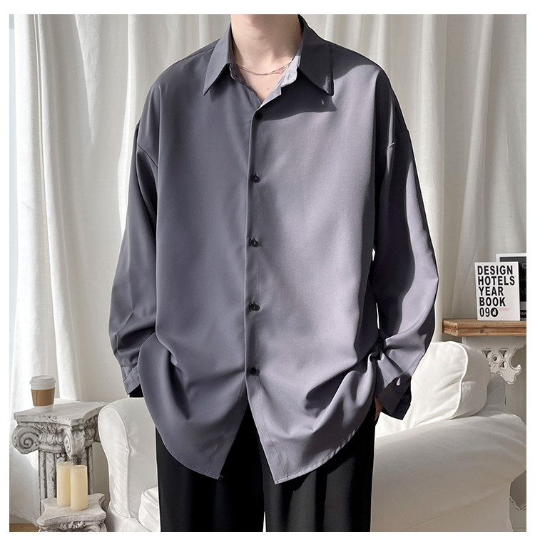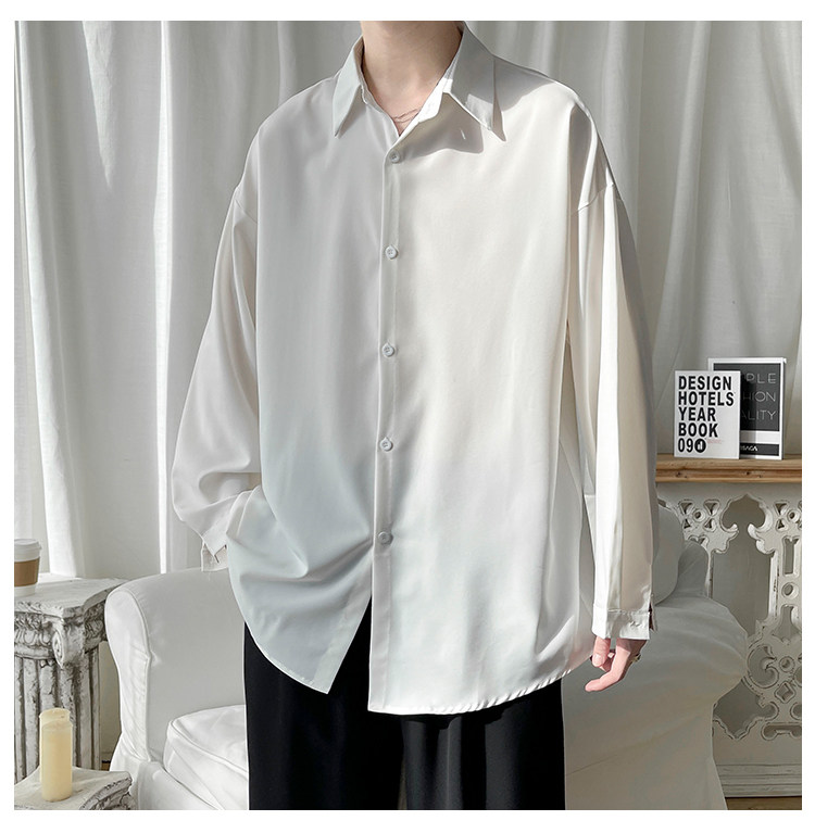 黑色襯衫男長袖高級垂感痞帥潮流休閒寸衫夏季寬鬆大尺碼冰絲白襯衣