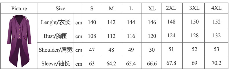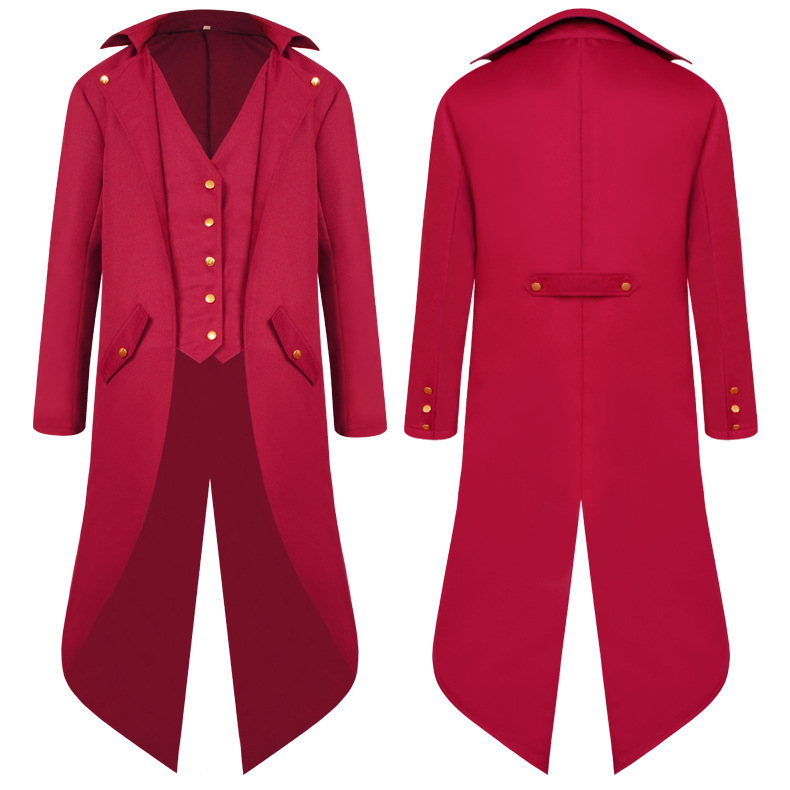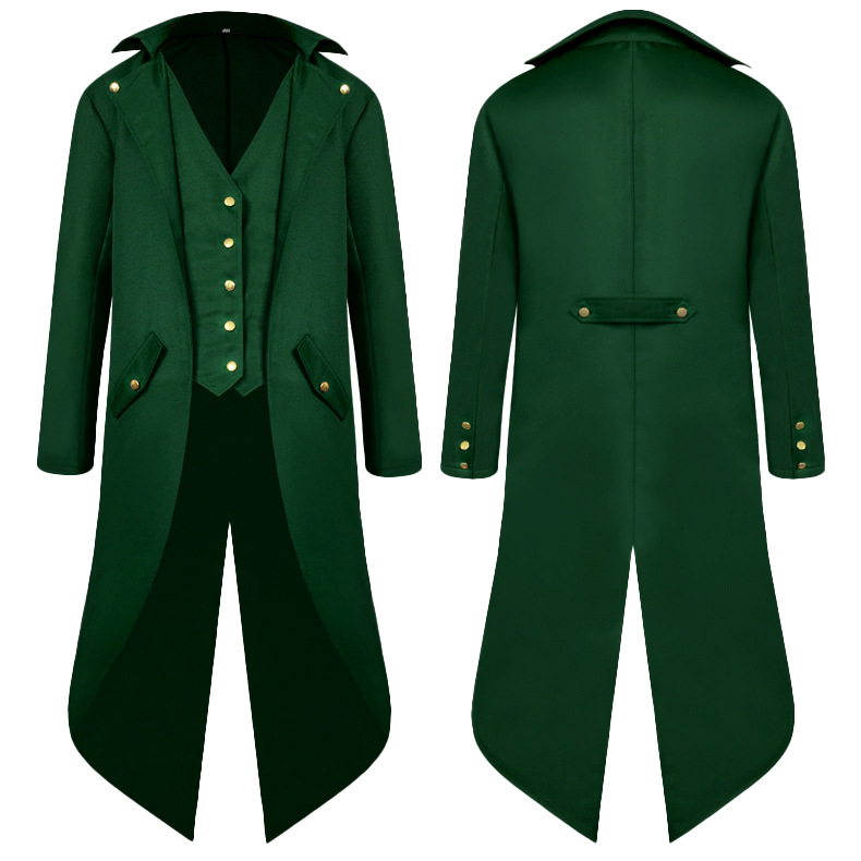 2020wish新款欧美男装 中世纪复古服装男款中长朋克复古燕尾服男
