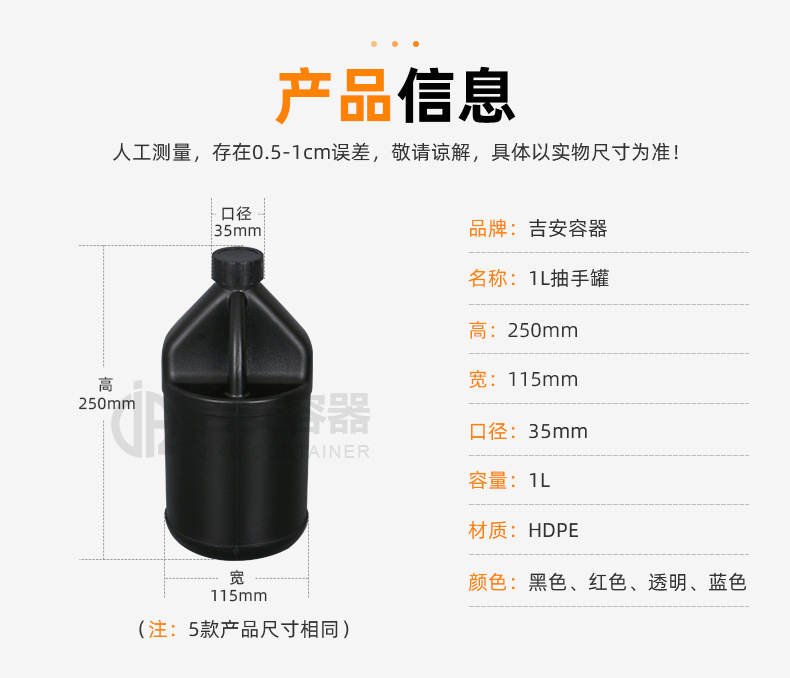 厂家直供小口密封1000ml提手瓶磨砂1KG塑料瓶hdpe瓶日化包装瓶