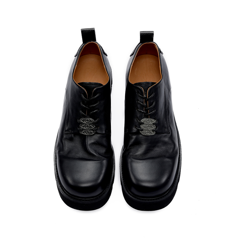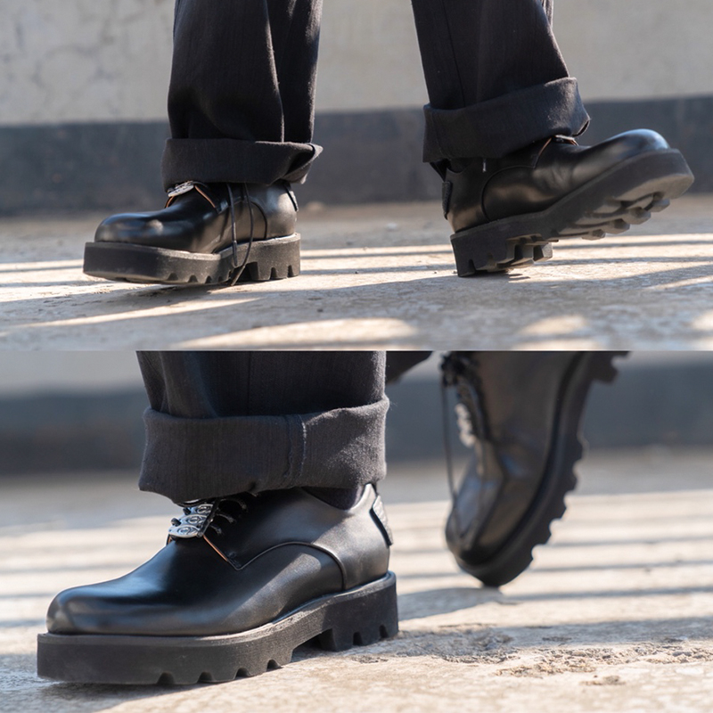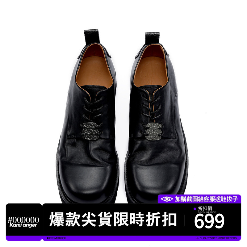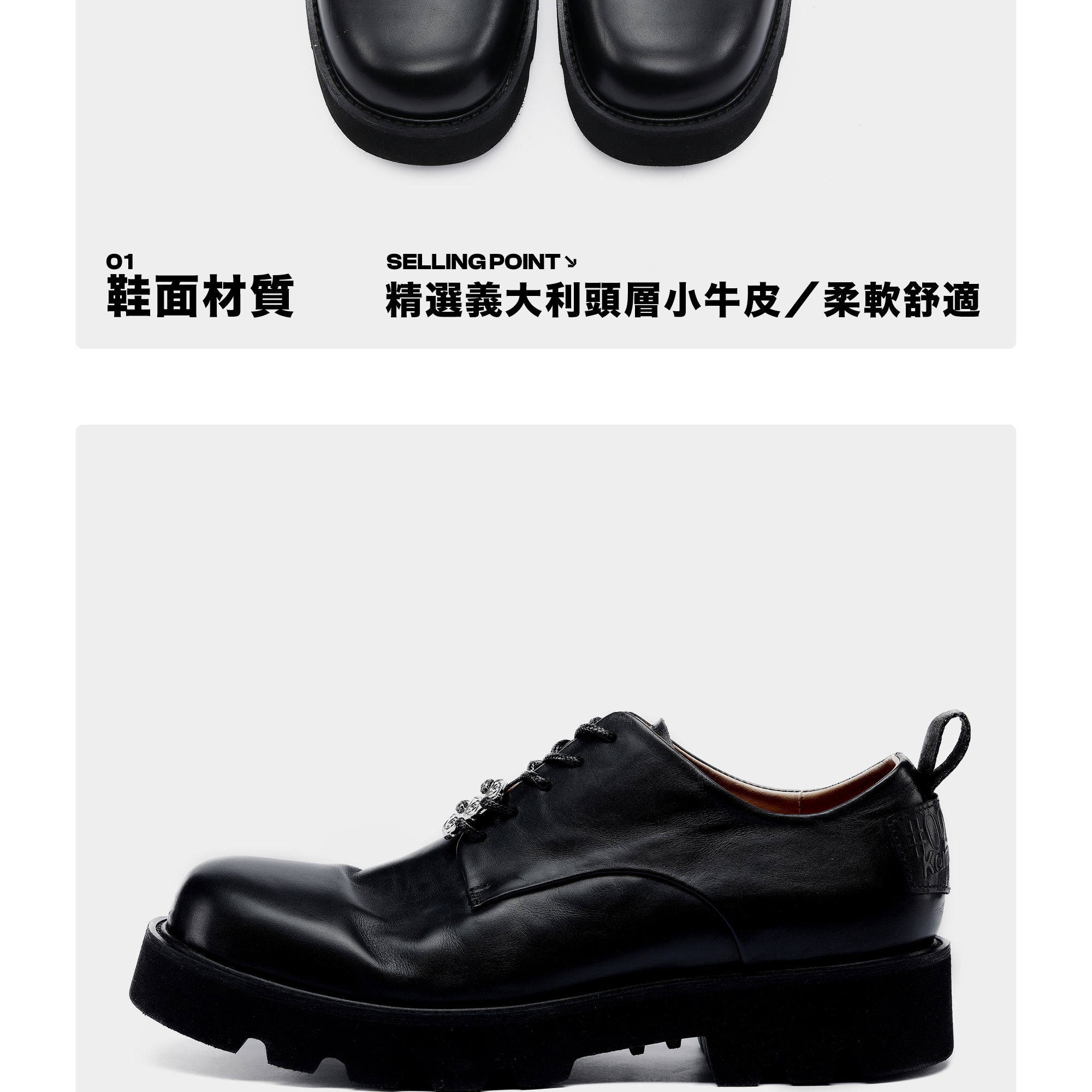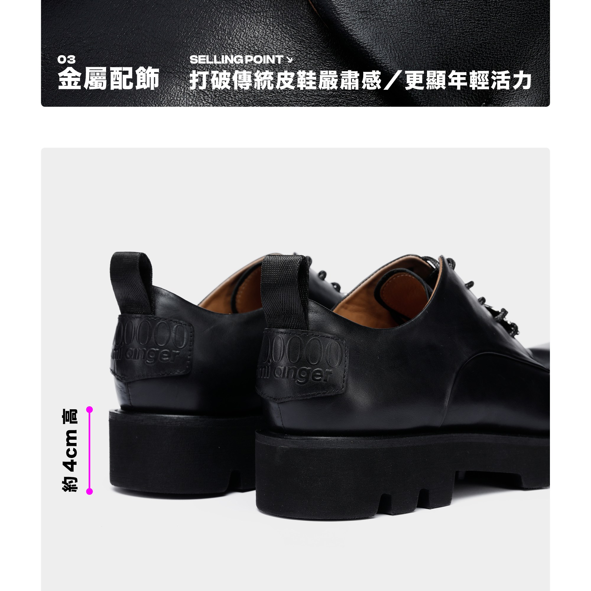 Kami anger原創意大利牛皮圓頭厚底鞋增高德比鞋休閒皮鞋男夏季