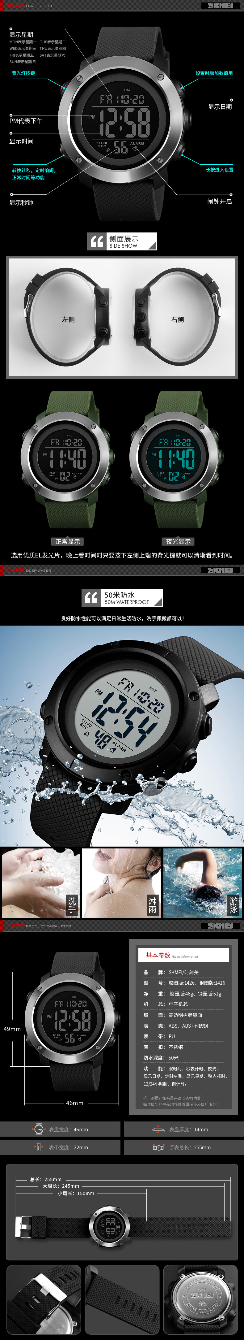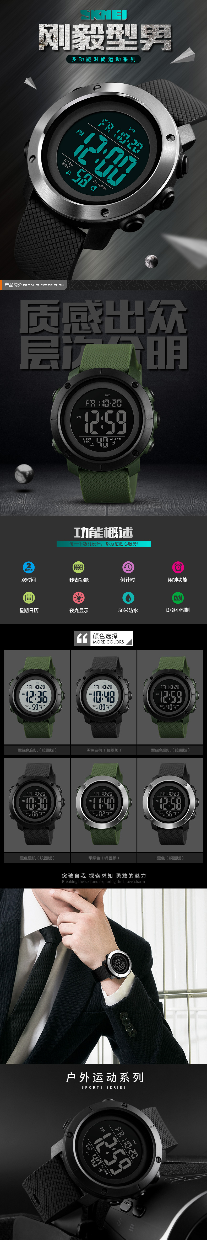 时刻美男学生电子表 厂家男士多功能双显运动手表