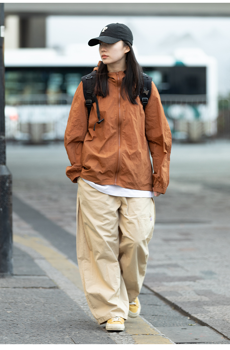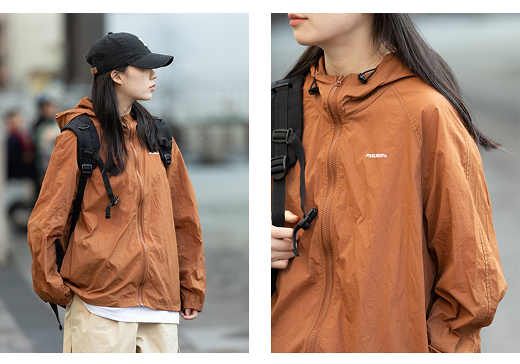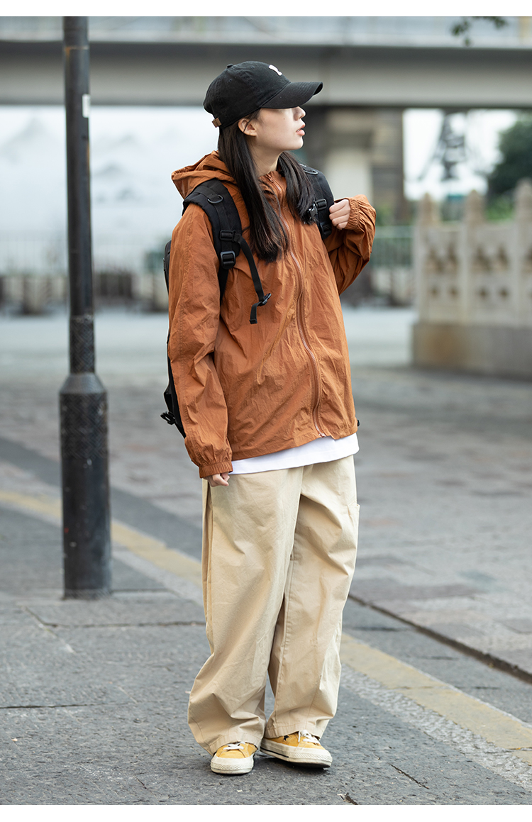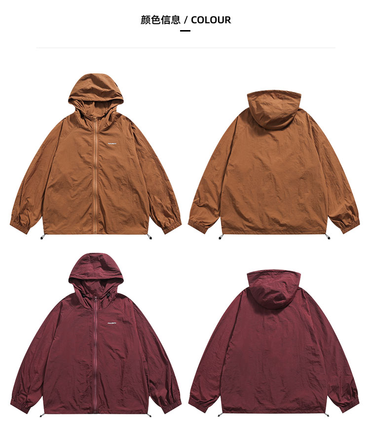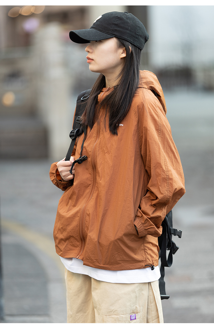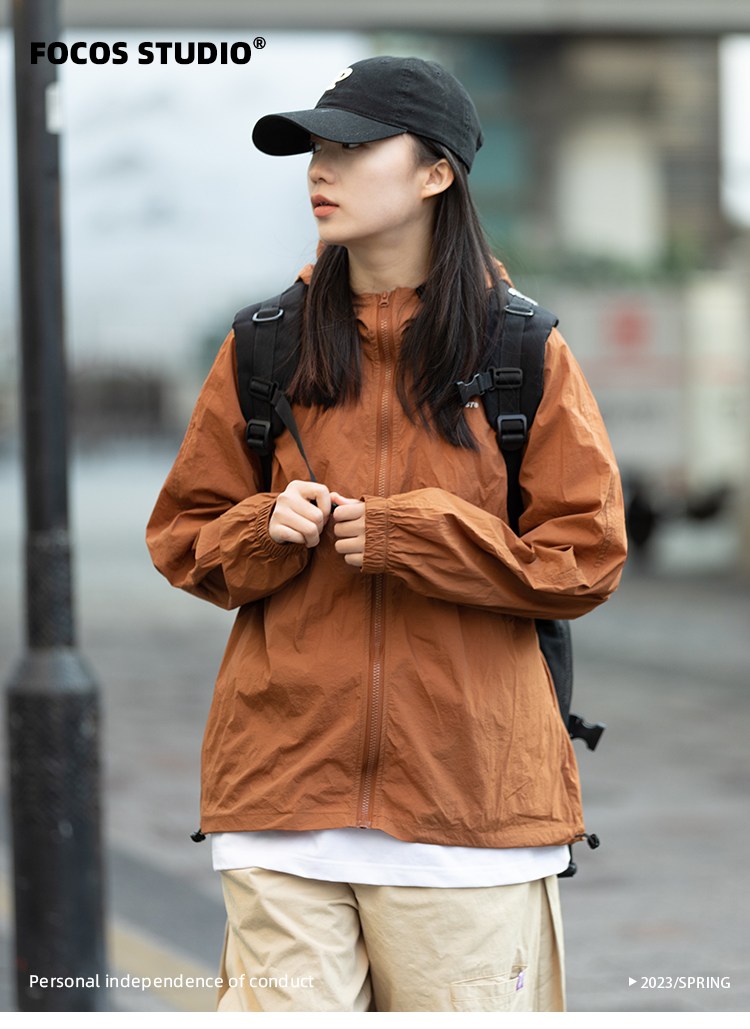 Focos日系復古情侶寬鬆字母UPF50+戶外防曬衣薄外套夏防曬服男女