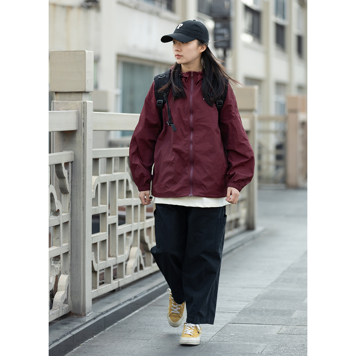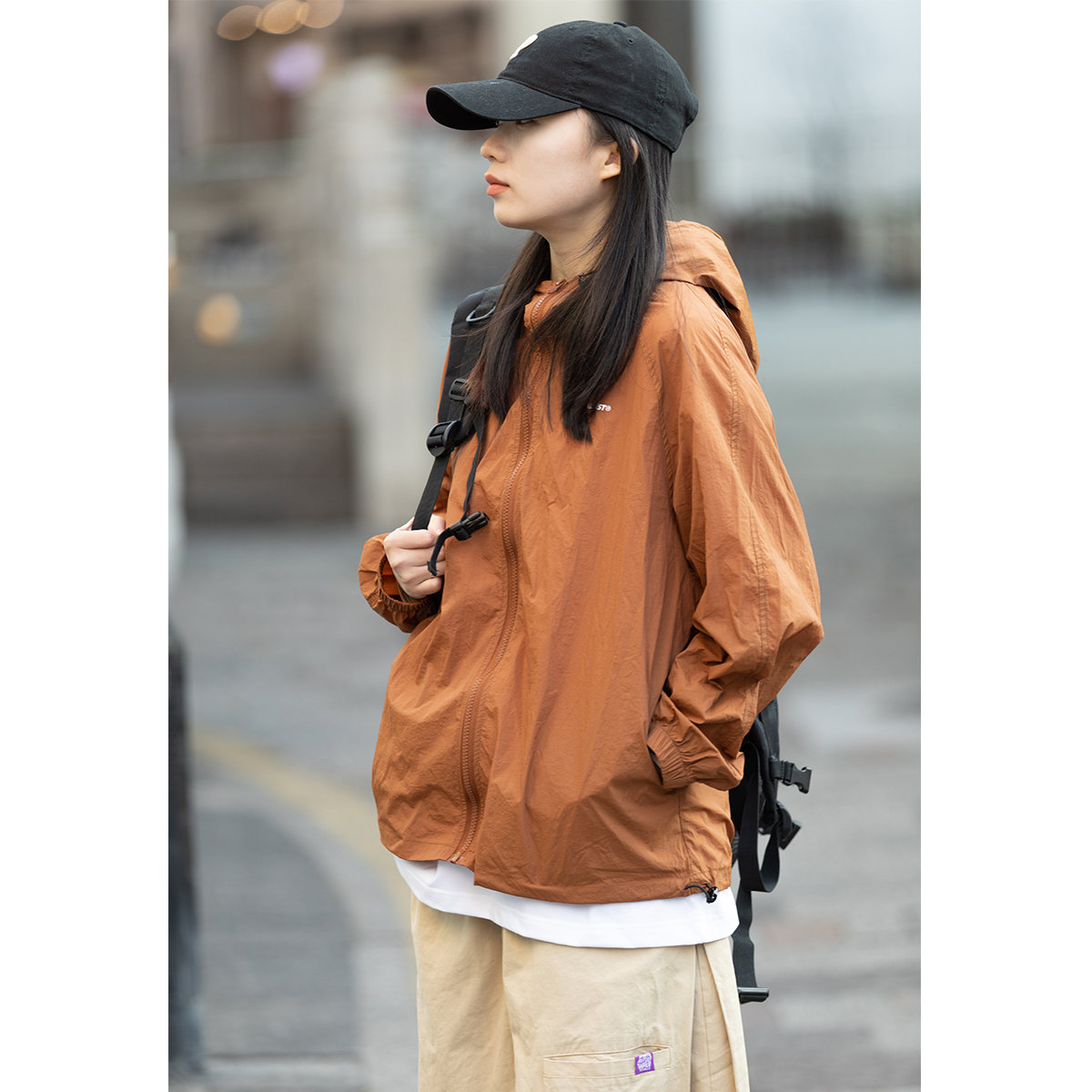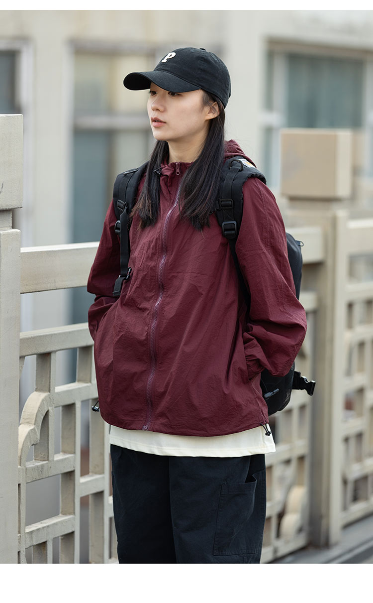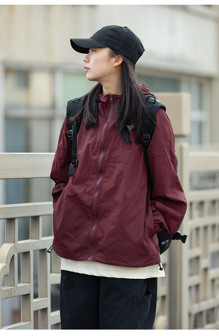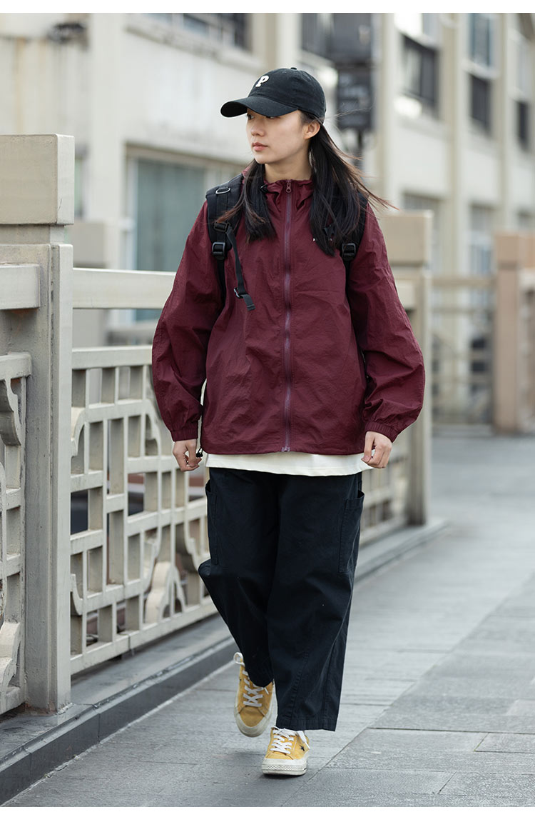 Focos日系復古情侶寬鬆字母UPF50+戶外防曬衣薄外套夏防曬服男女