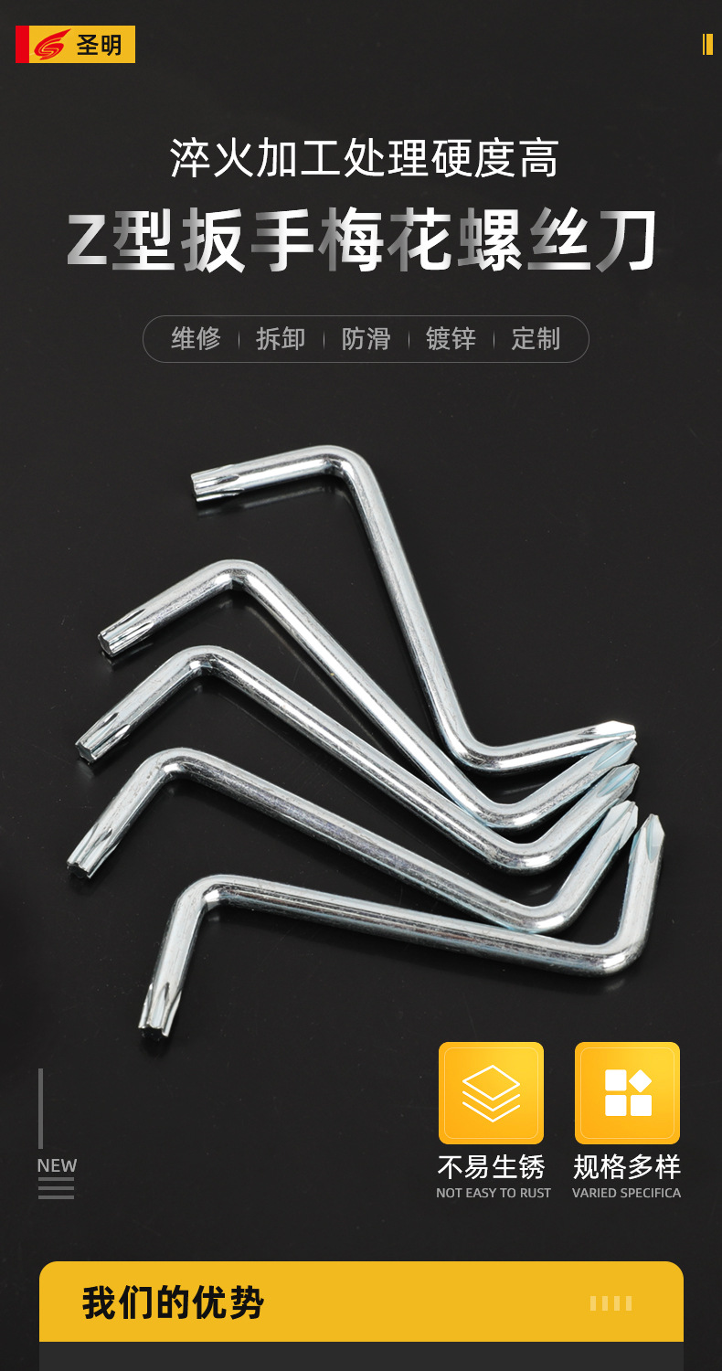 供应Z型梅花螺丝刀 T20六角十字扳手 汽车挡泥板扳手工具专用改锥