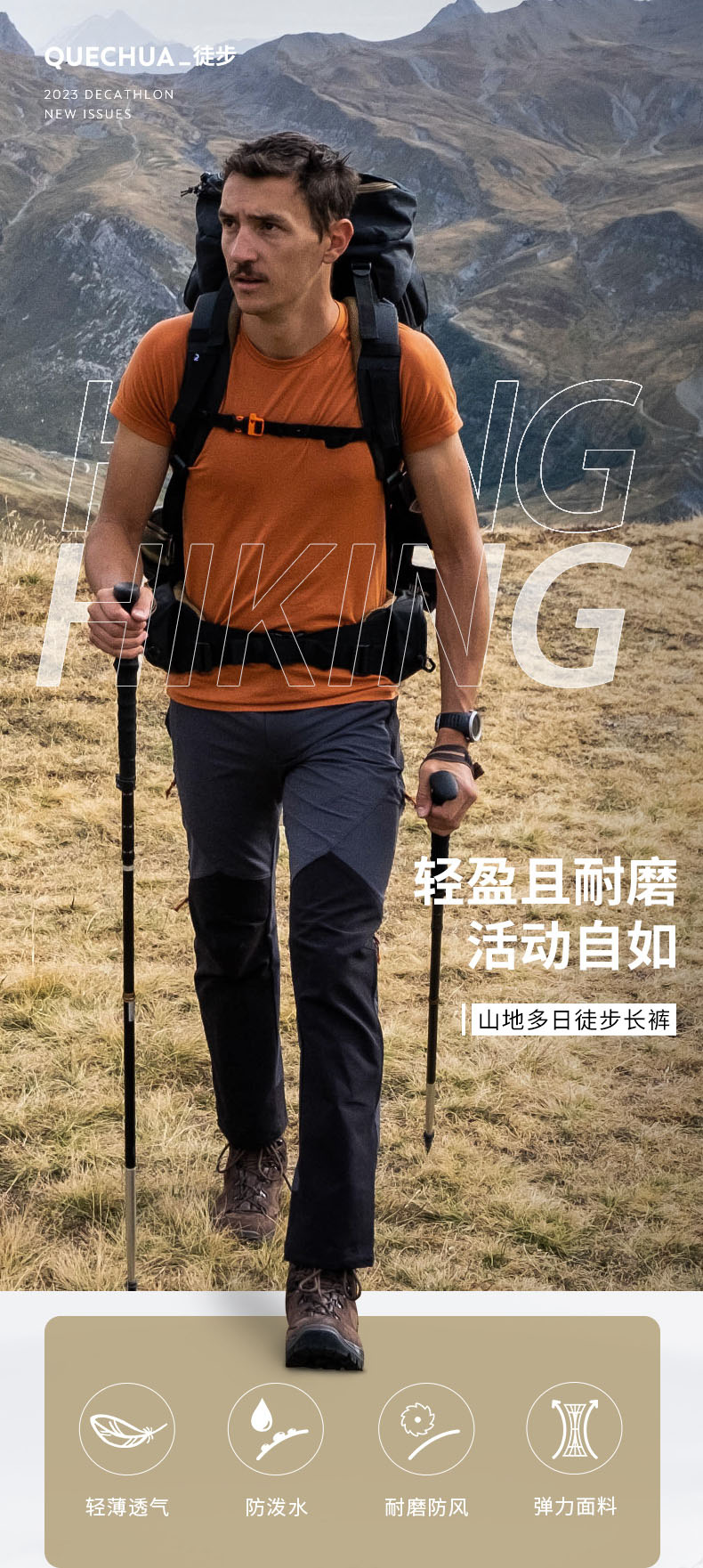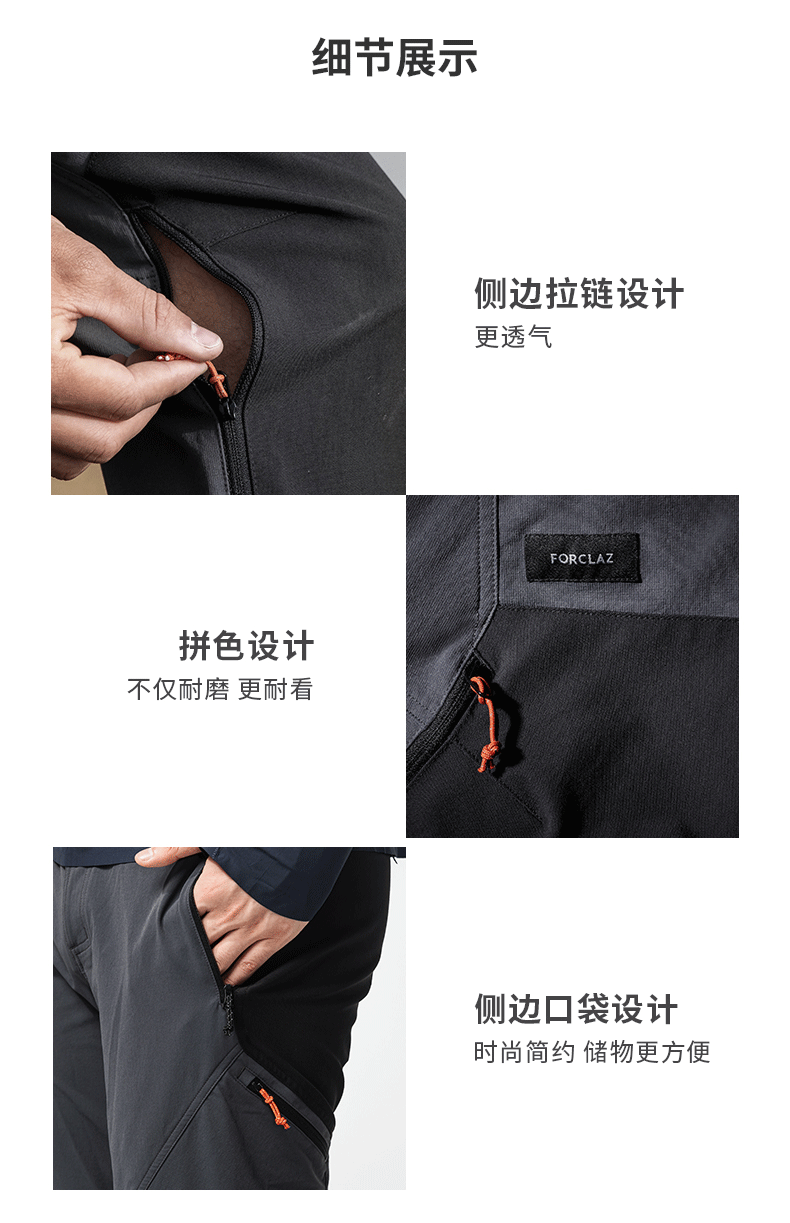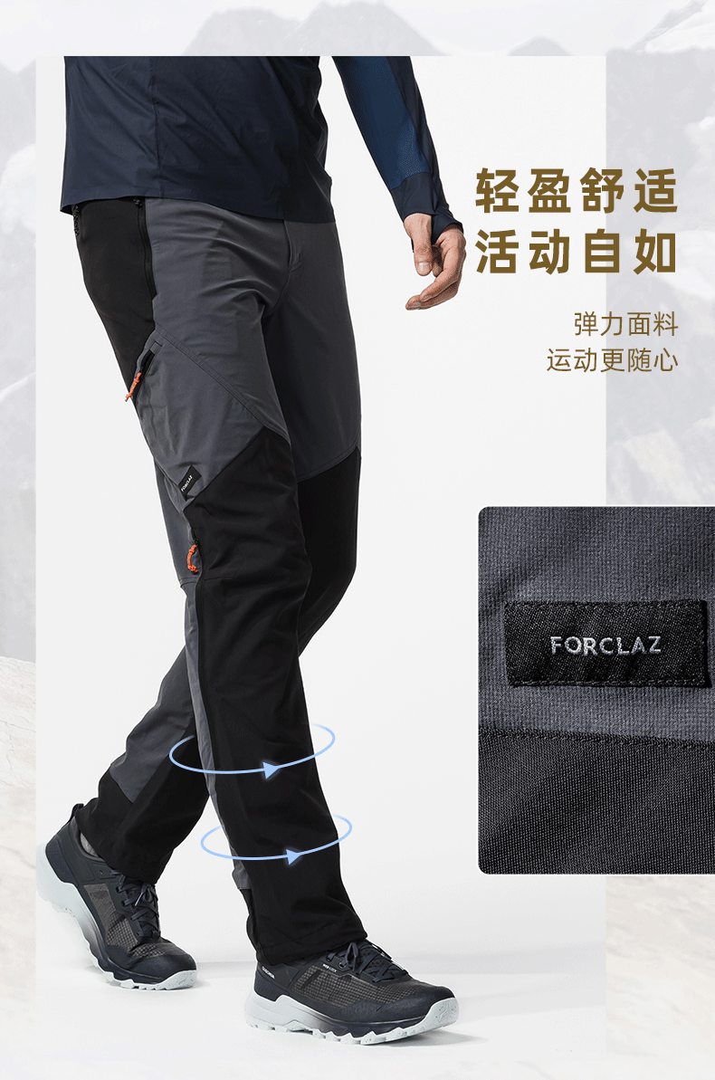 迪卡儂旗艦店山地徒步戶外登山褲男防潑水防風快乾長褲ODT1