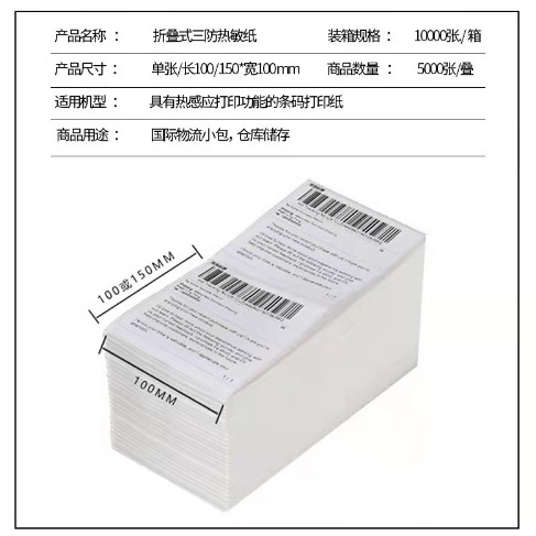 热敏纸三防不干胶100*100 100*150 折叠式e邮宝面单标签 厂家工厂