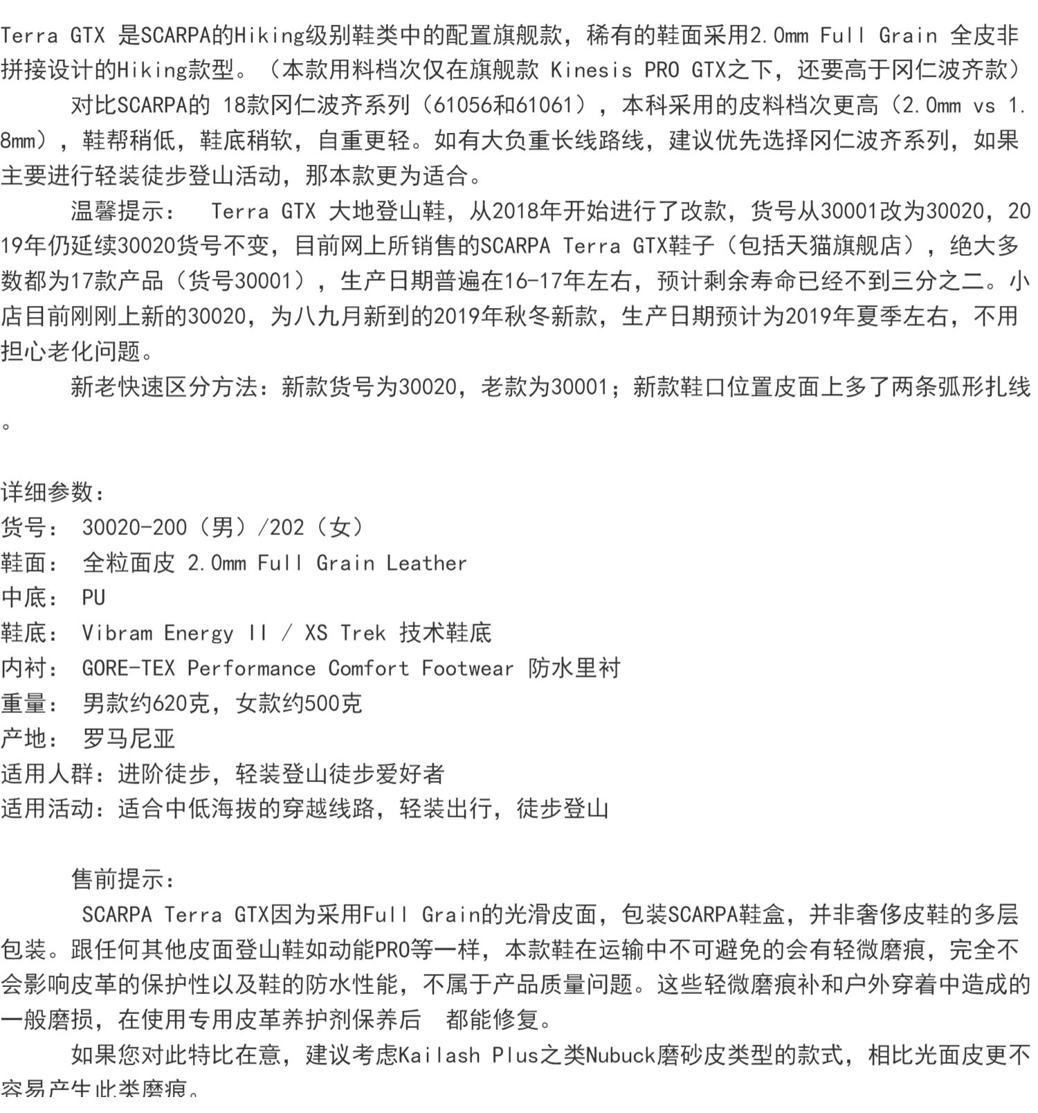 SCARPA斯卡帕 TERRA GTX 大地 男女戶外徒步登山鞋 新款 30020