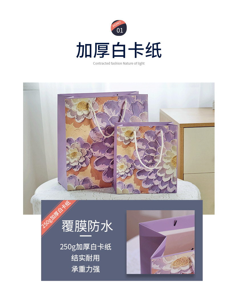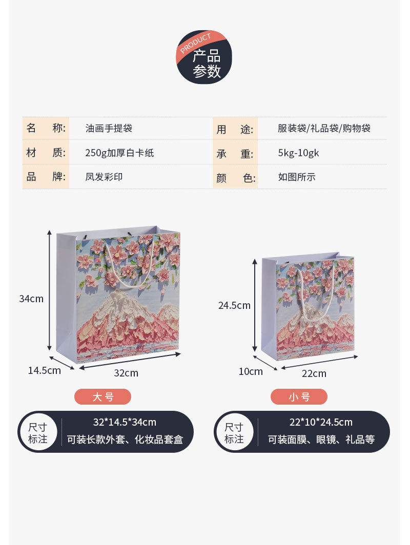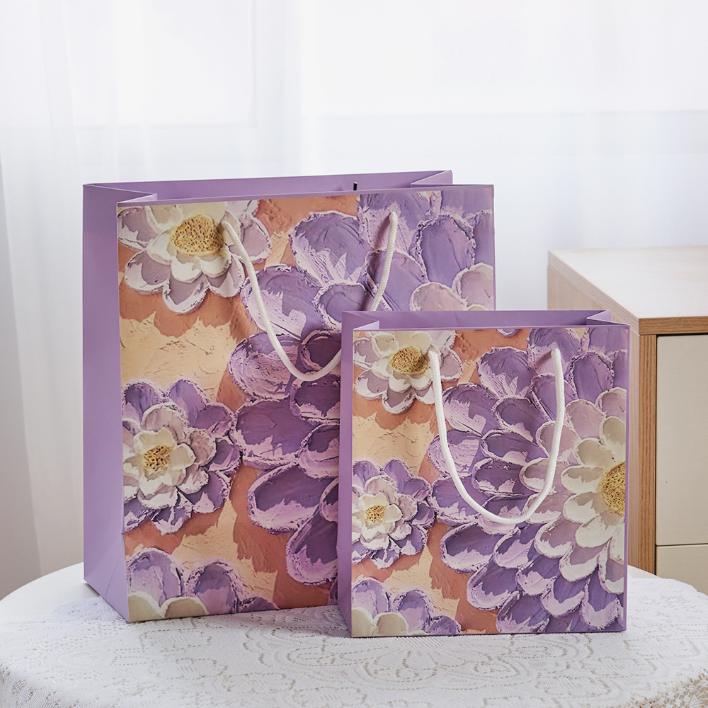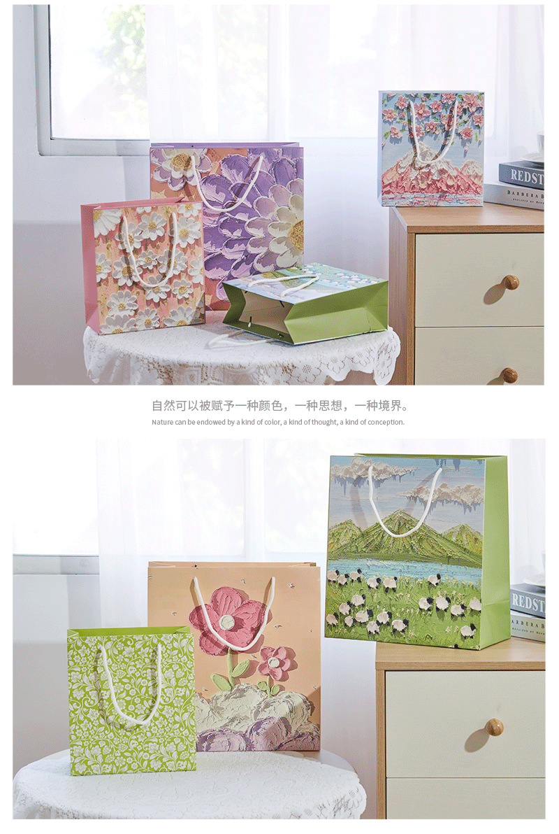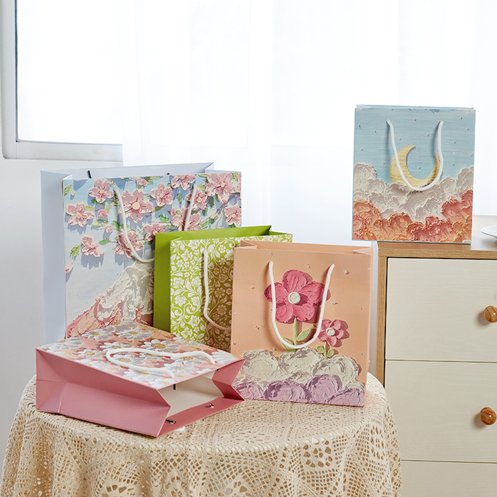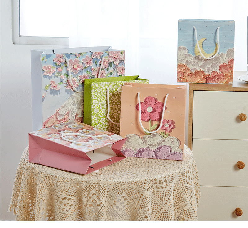 创意油画礼品袋手提袋纸袋子网红礼袋白卡伴手礼ins服装定制纸袋