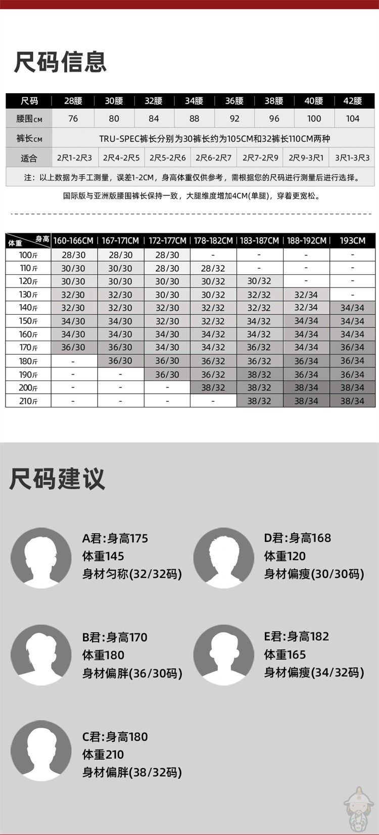 尺碼 28/32,30/30,32/30,34/30,36/30,30/32,32/32,34/32,36/32,38/32,40/32