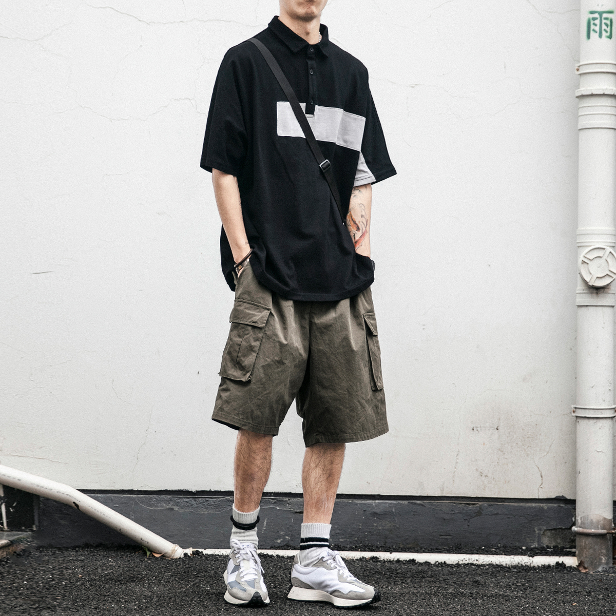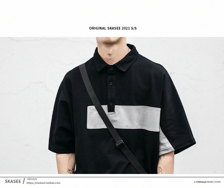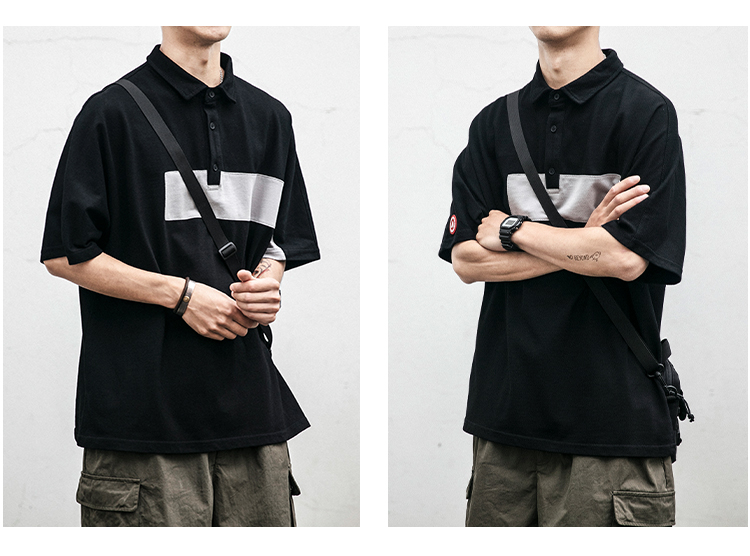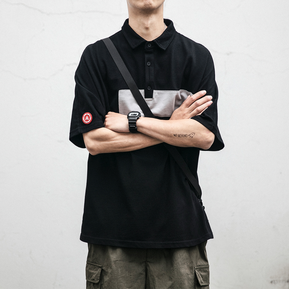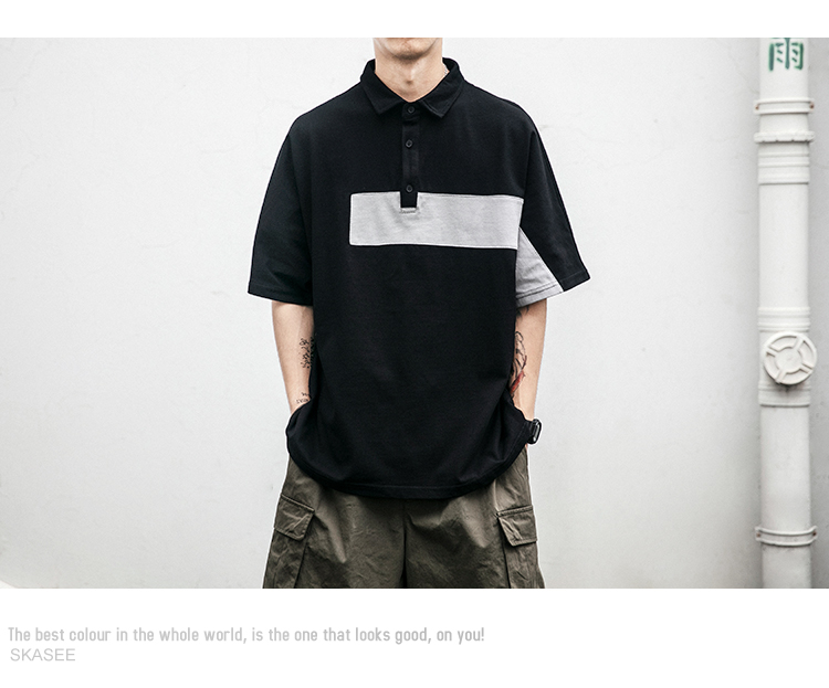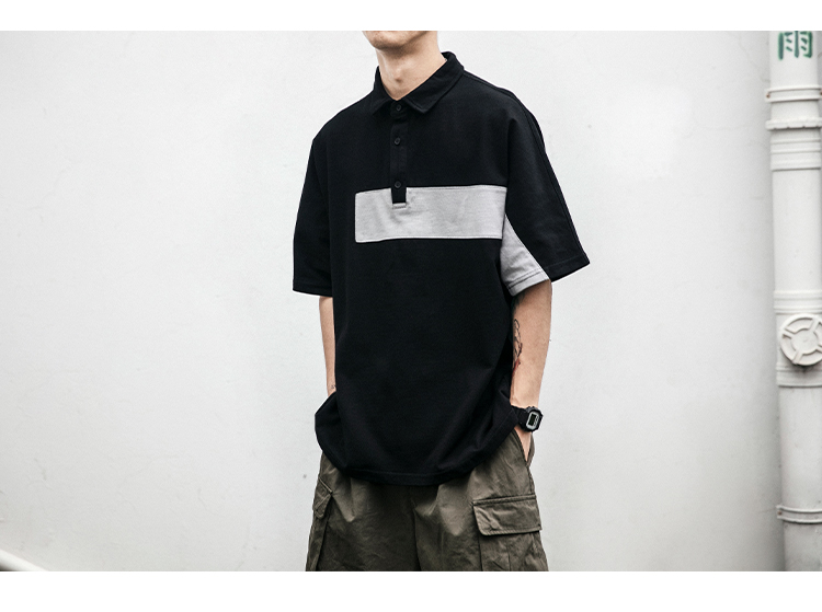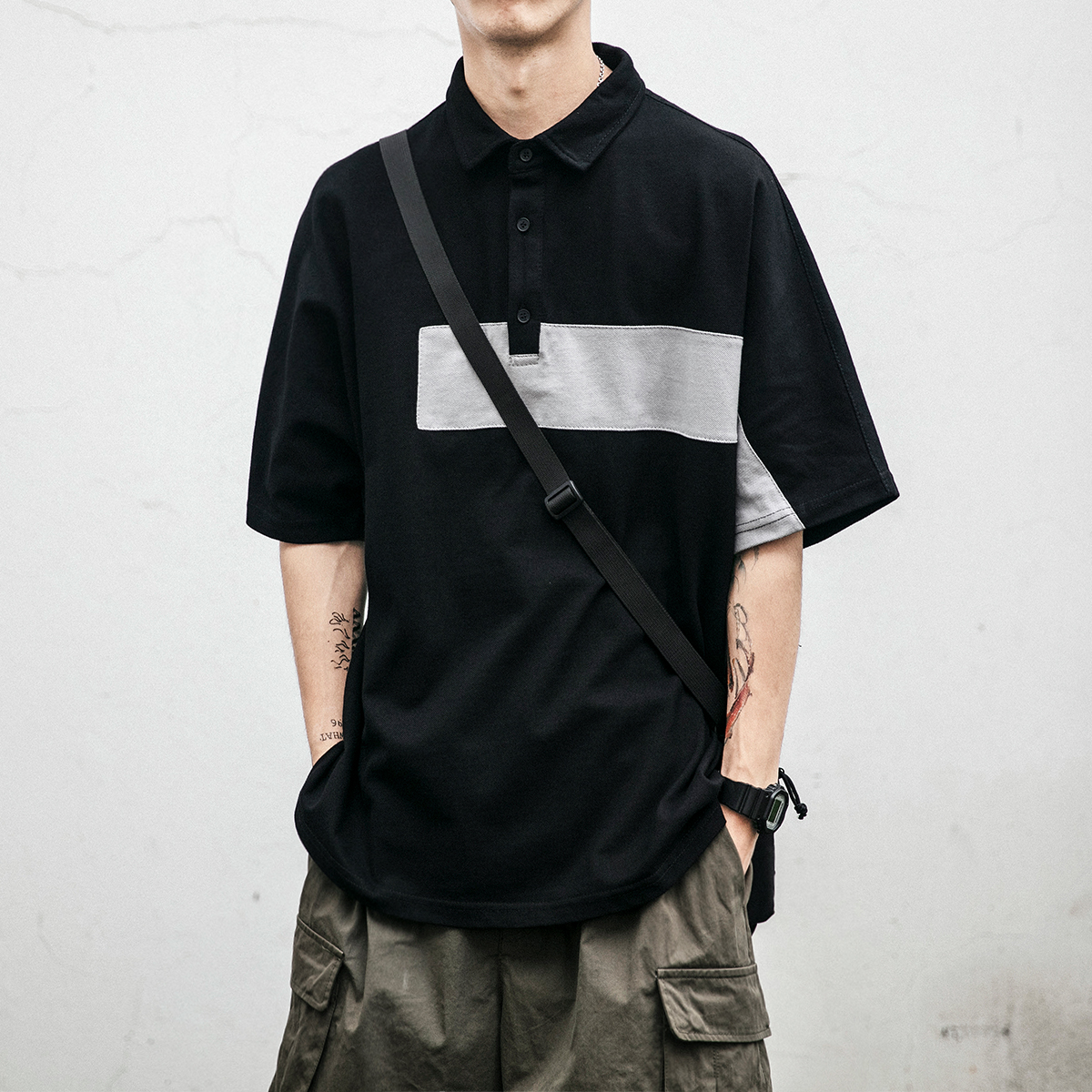夏季日系復古拼色POLO衫男短袖潮牌INS寬鬆翻領T恤潮流百搭拉夫·勞倫馬球衫