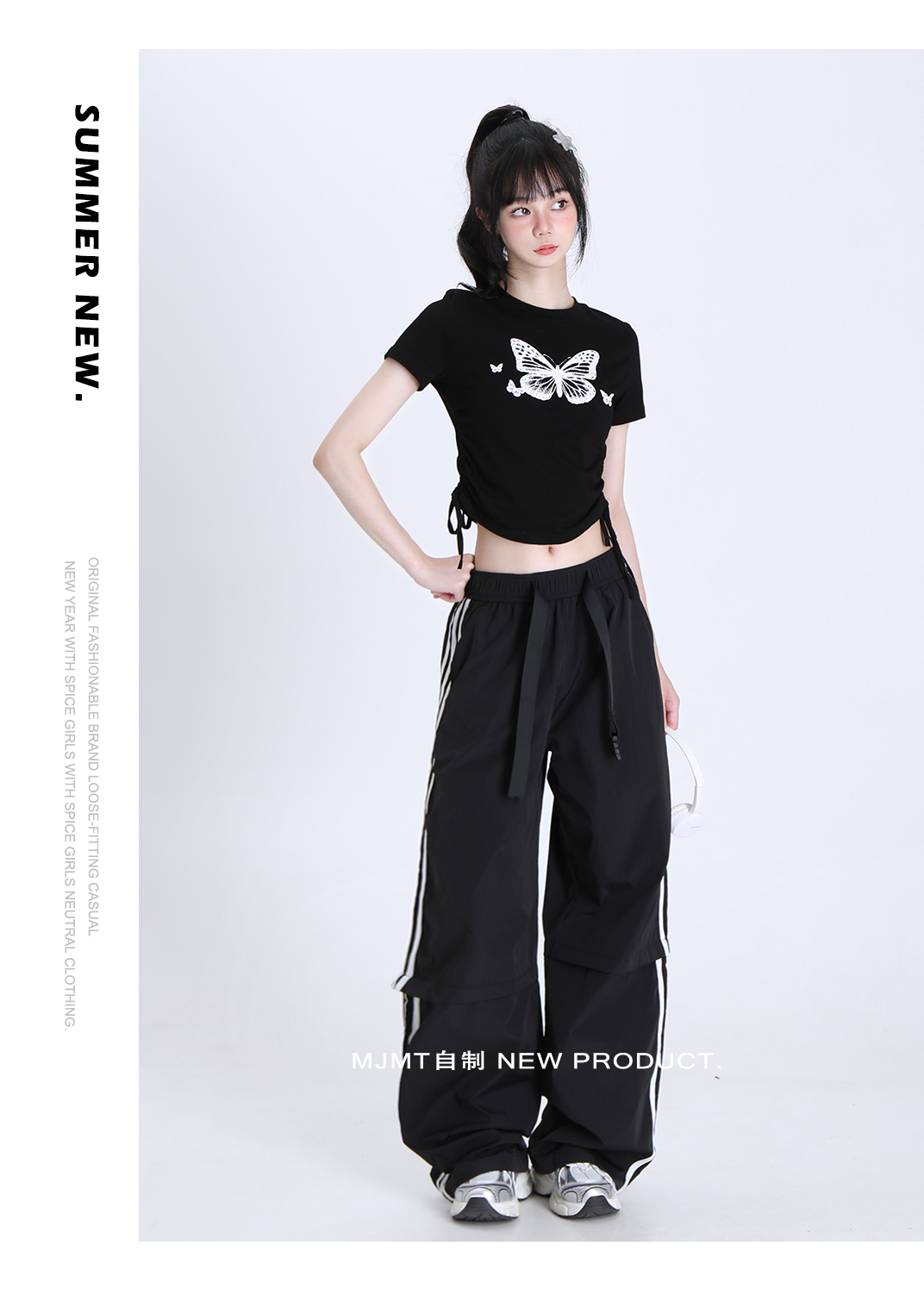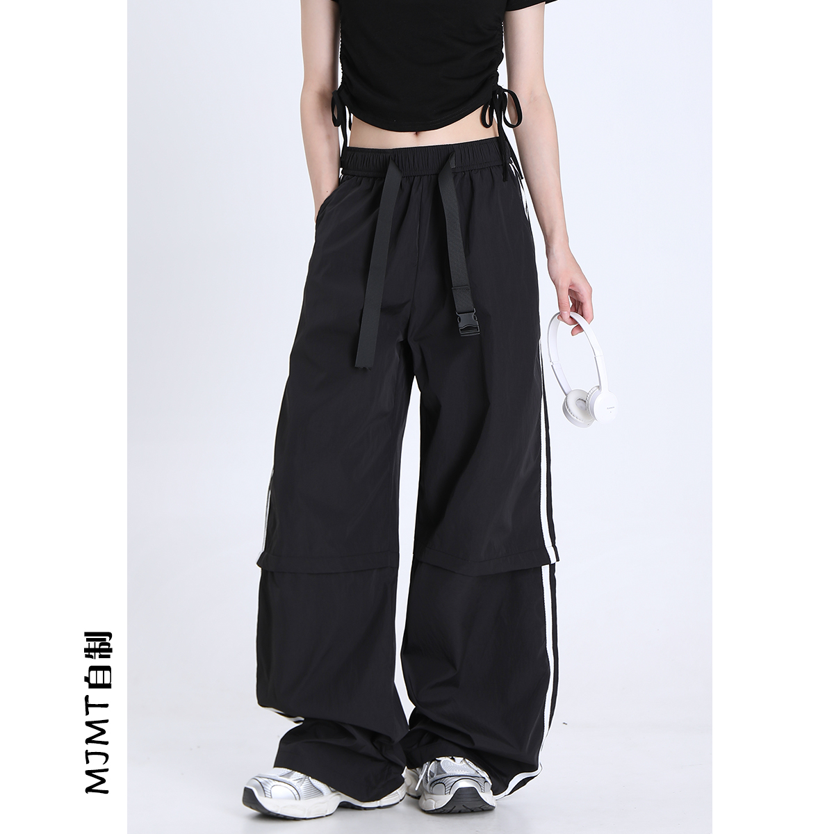 美式復古寬鬆闊腿褲女2023新款夏季直筒拖地垂感運動褲休閒長褲子