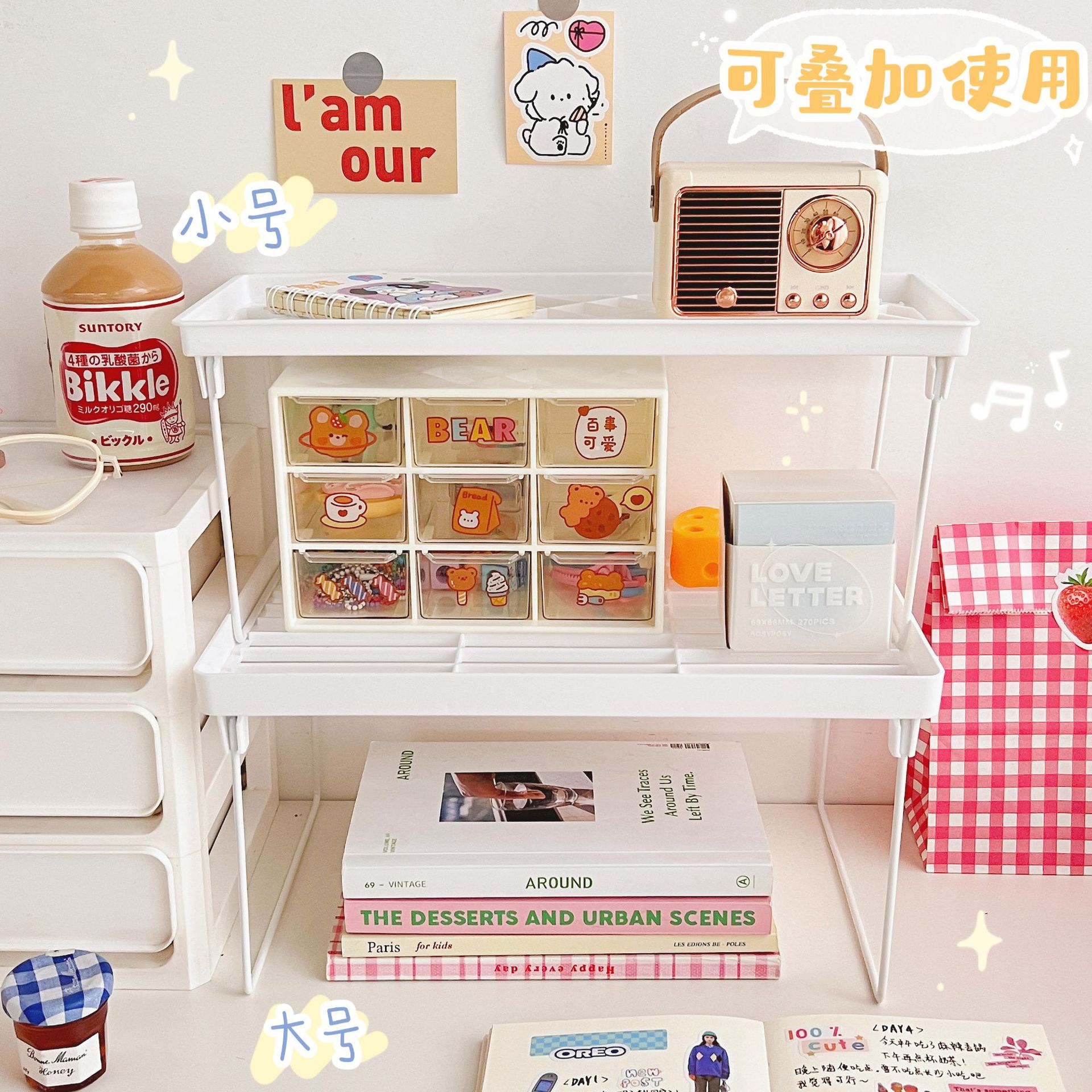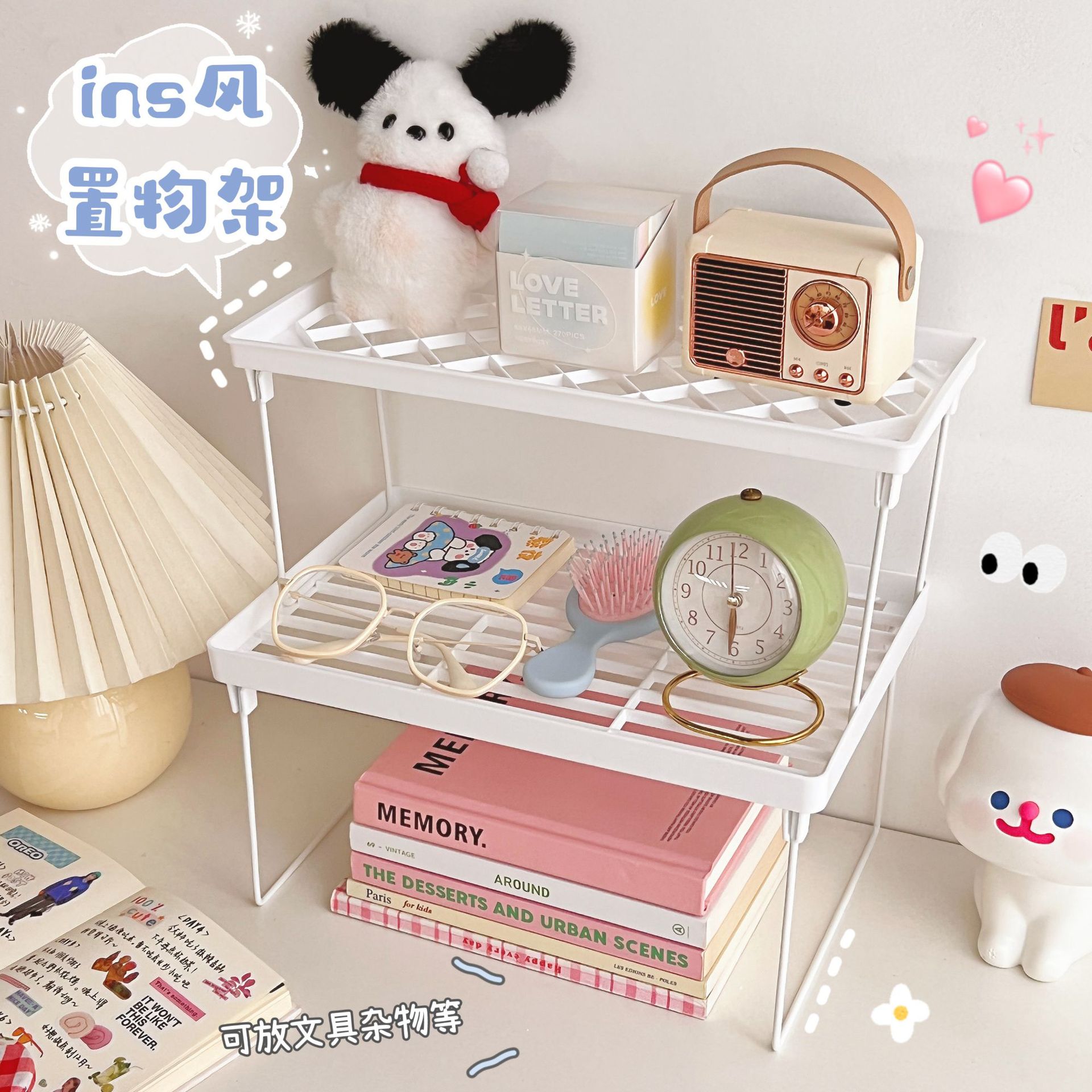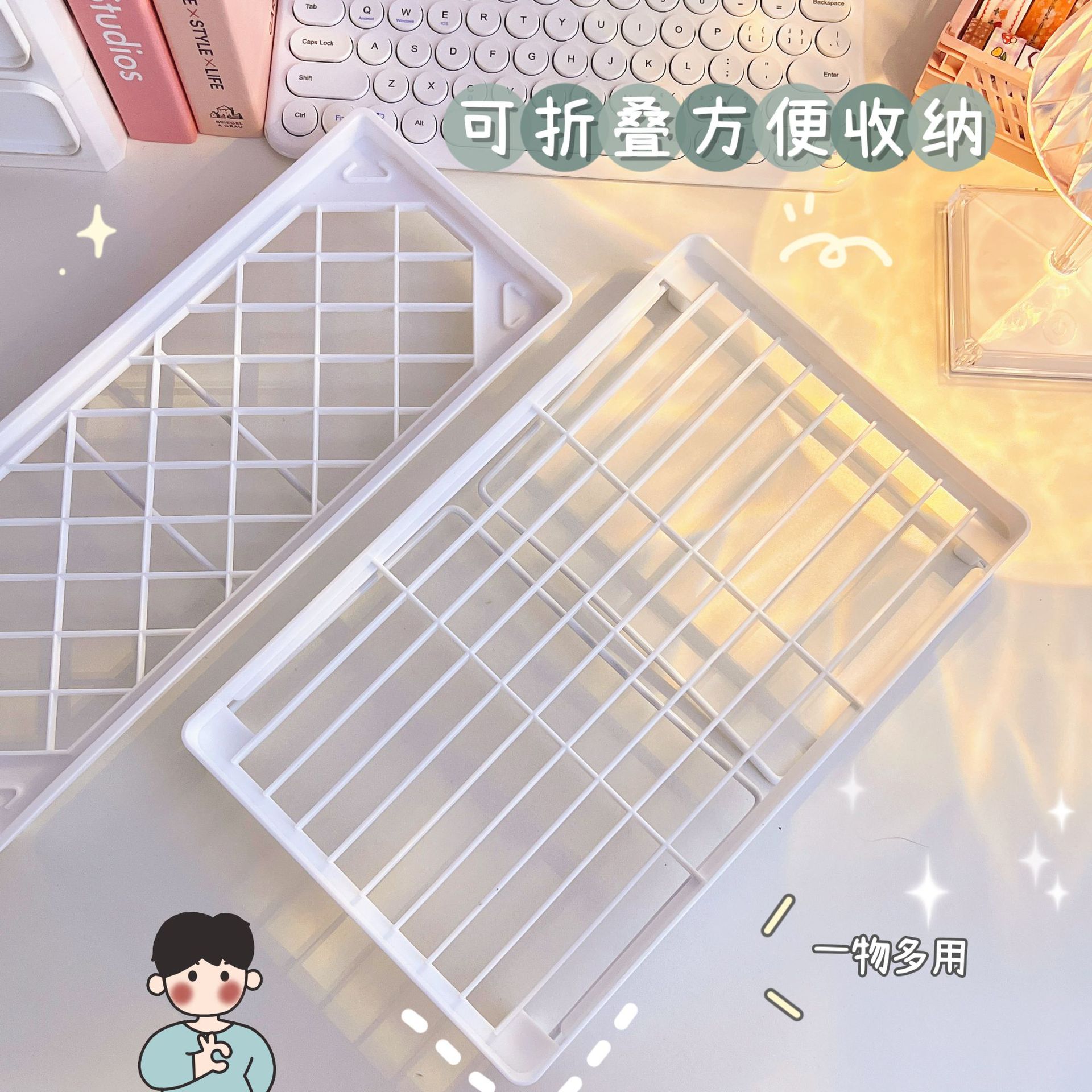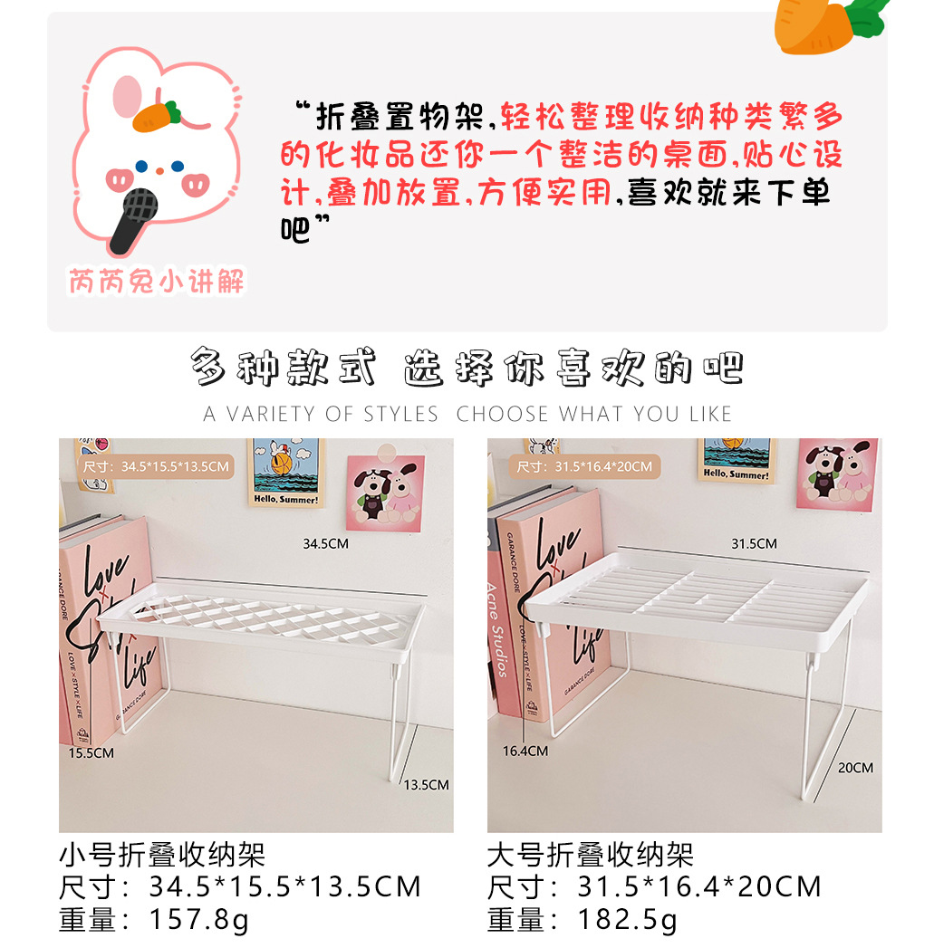 韩国ins无印风简约折叠收纳架学生桌面增高架手帐文具杂物置物架