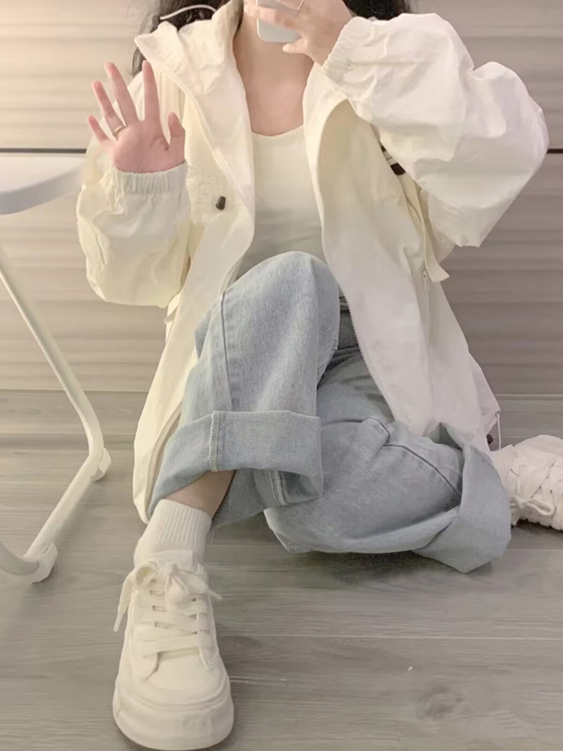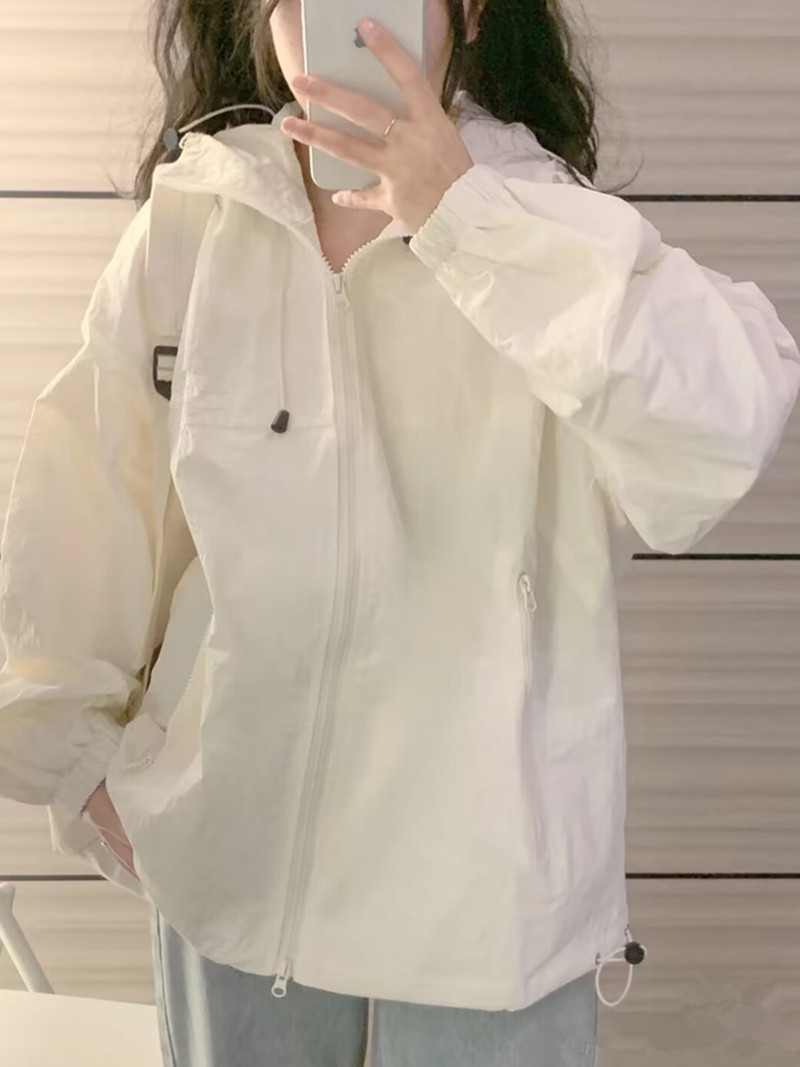 薄款防曬衣女夏季2023新款連帽寬鬆開衫外套運動戶外透氣衝鋒衣潮