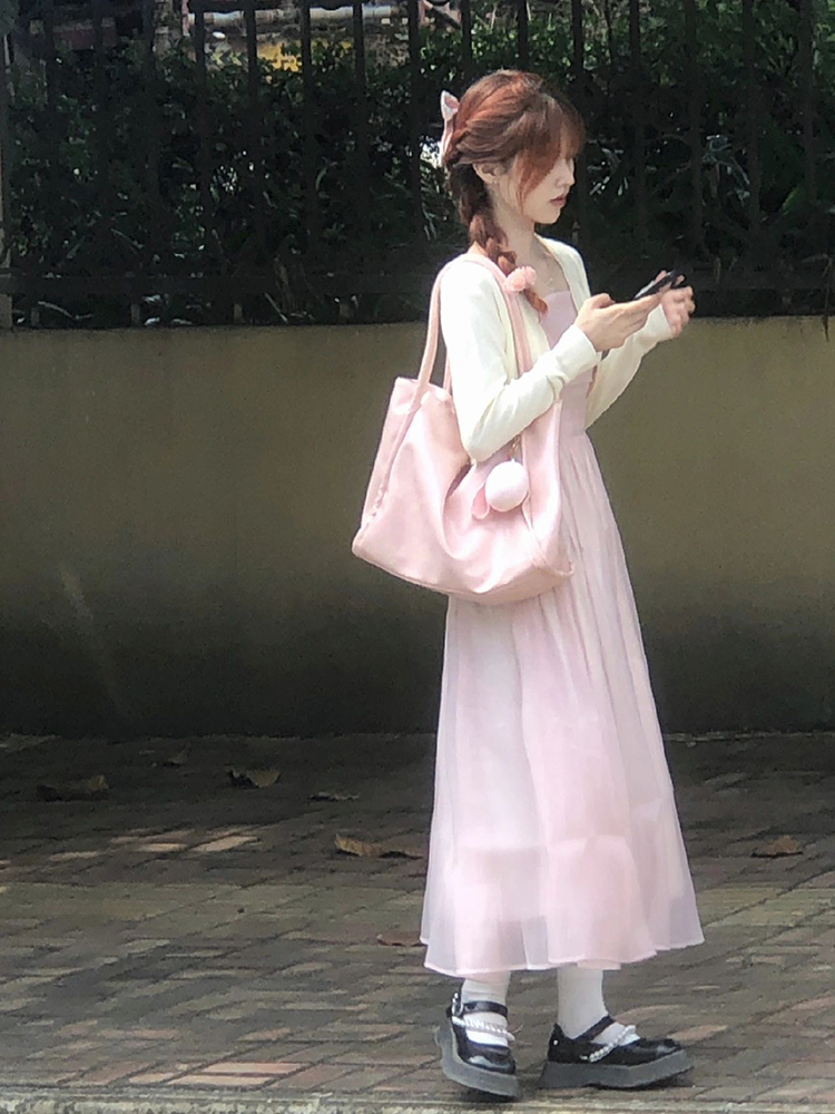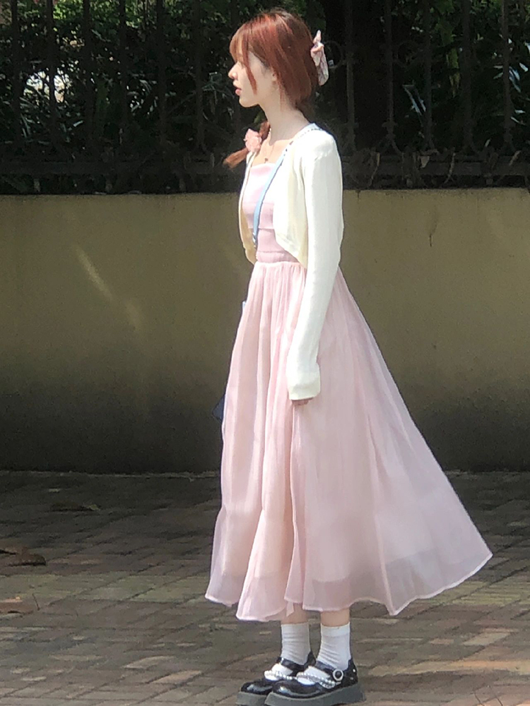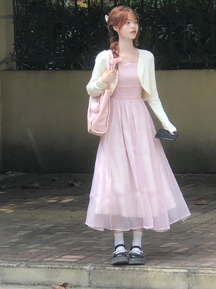 粉色吊帶洋裝2023新款浪漫溫柔風小清新甜美法式長裙氣質仙女裙