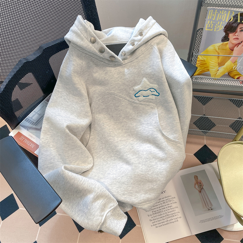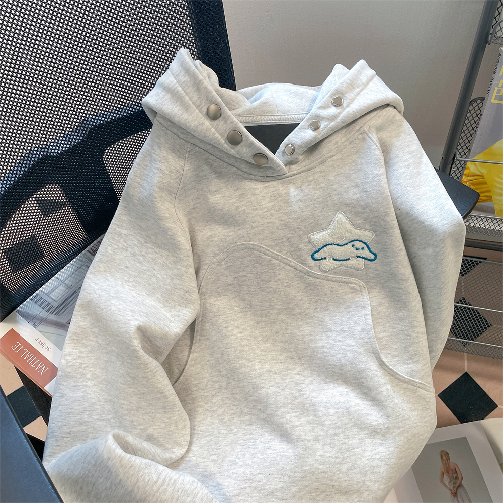 奶甜系藝術生chic港風刺繡星星衛衣女秋冬小眾設計感加絨連帽外套