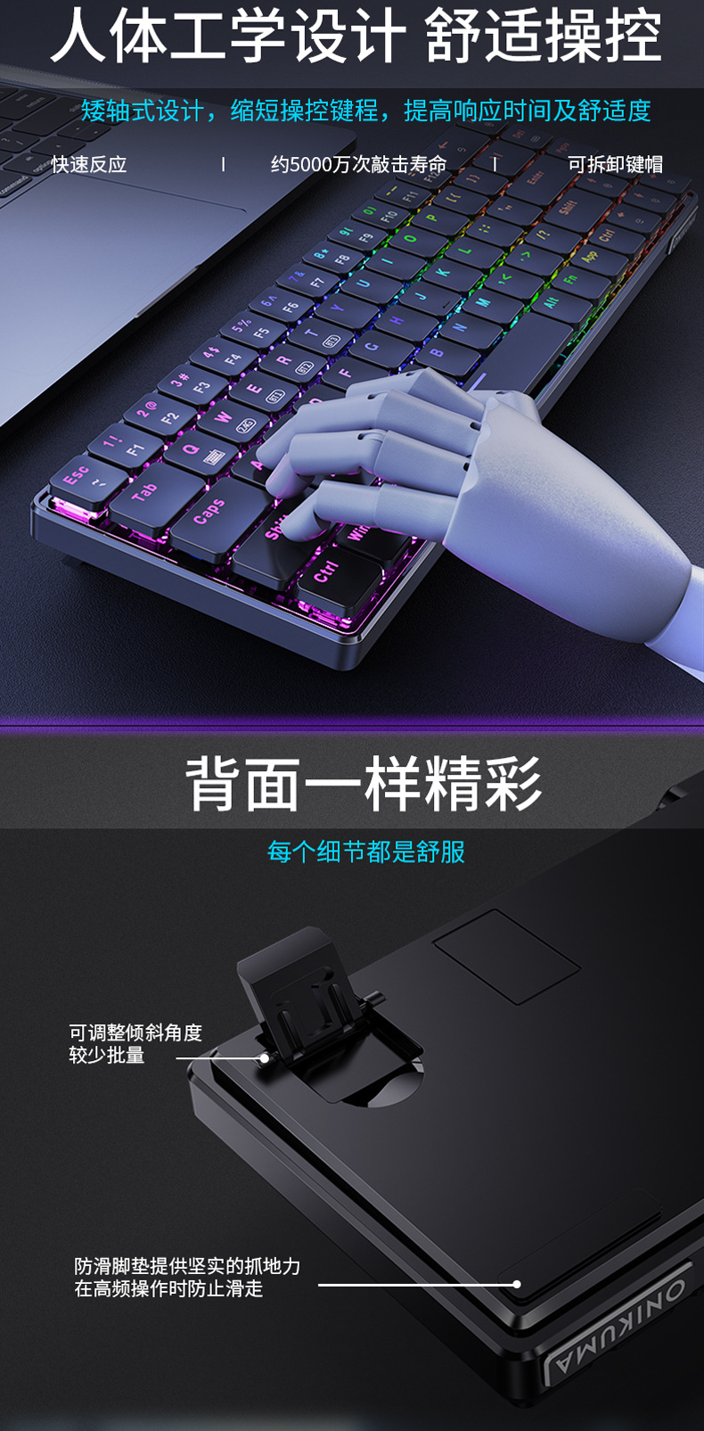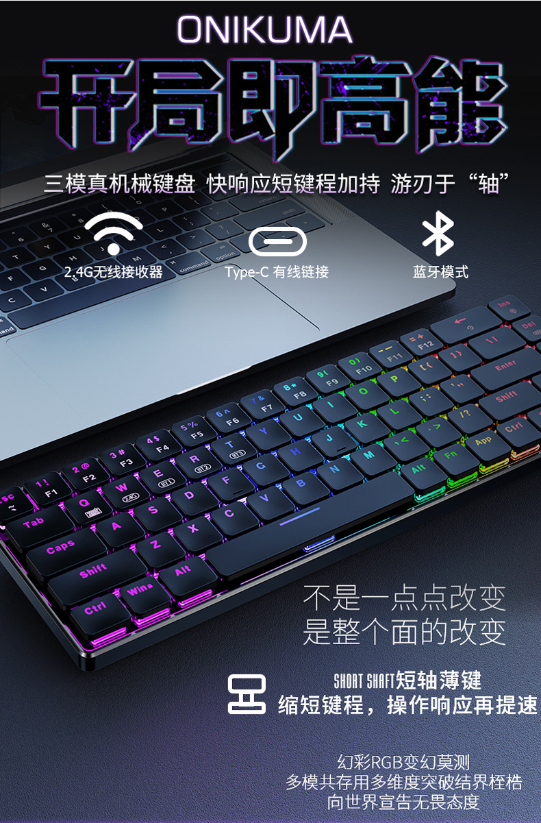 ONIKUMA G29蓝牙三模无线机械键盘矮轴69游戏电竞笔记本电脑外设