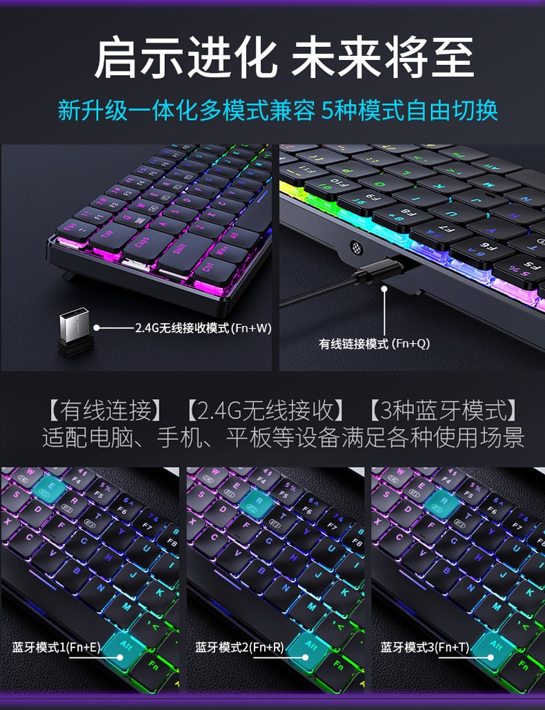 颜色 黑色RGB青轴/无线,黑色RGB红轴/无线,黑色RGB青轴/有线,黑色RGB红轴/有线