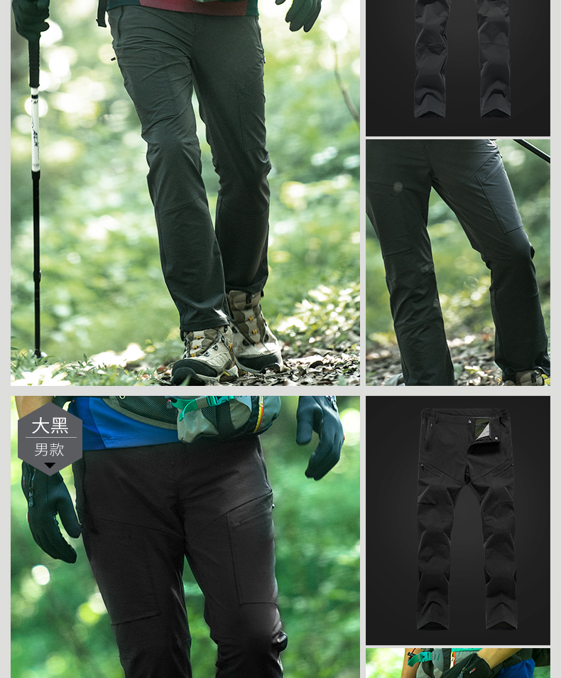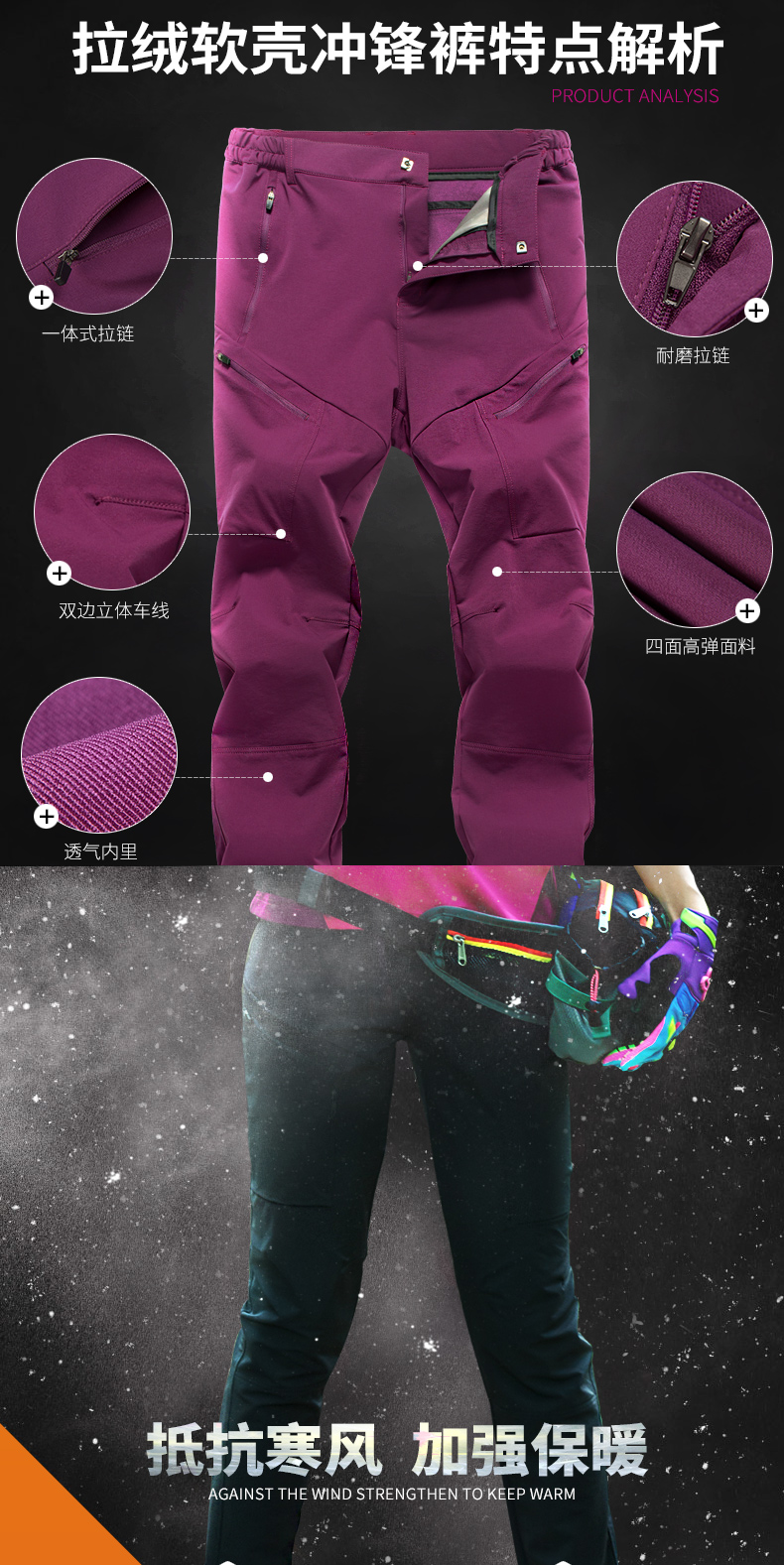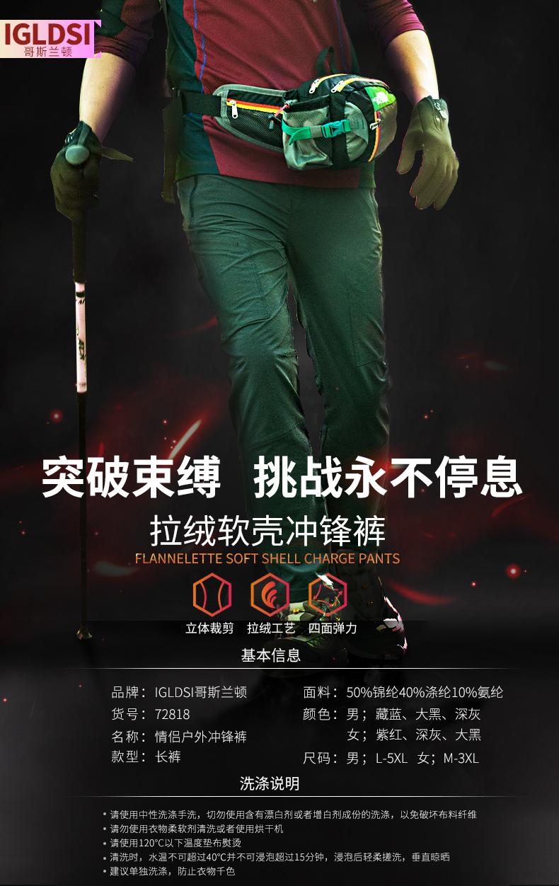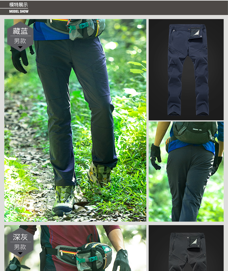 凱樂石春秋戶外衝鋒褲女單層速乾褲男彈力軟殼褲運動登山透氣防水