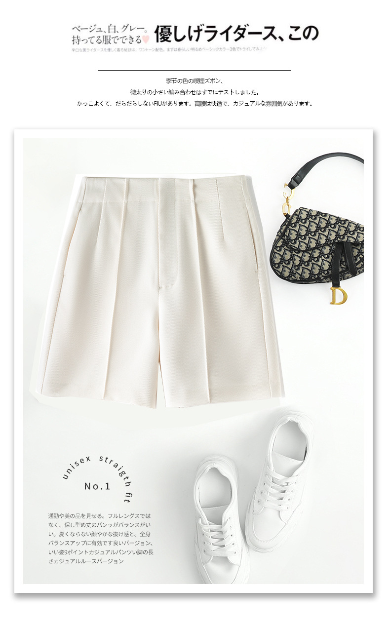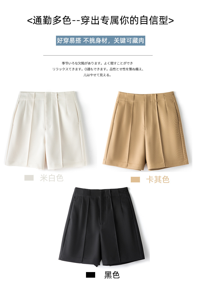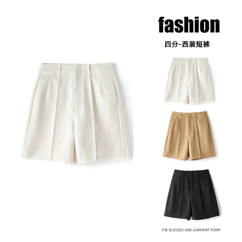 西装短裤女夏季新款高腰宽松显瘦阔腿直筒休闲中裤白色阔腿五分裤